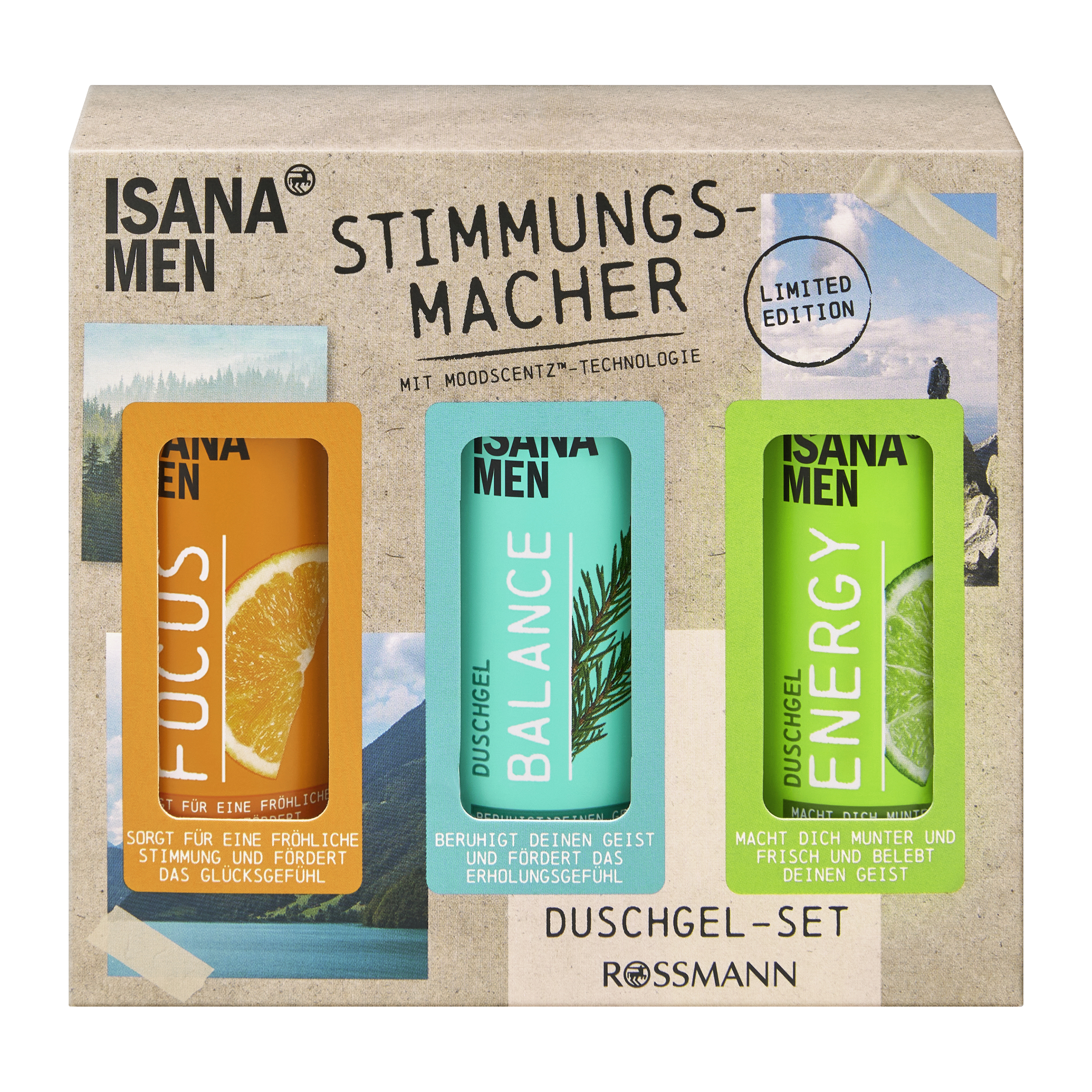 - ISANA MEN SHOWER GEL FOCUS dodává veselou náladu a podporuje pocit štěstí díky technologii MoodScentz™. Sprchový gel čistí mužskou pokožku obzvlášť jemně díky citrusově-trpké vonné kompozici.