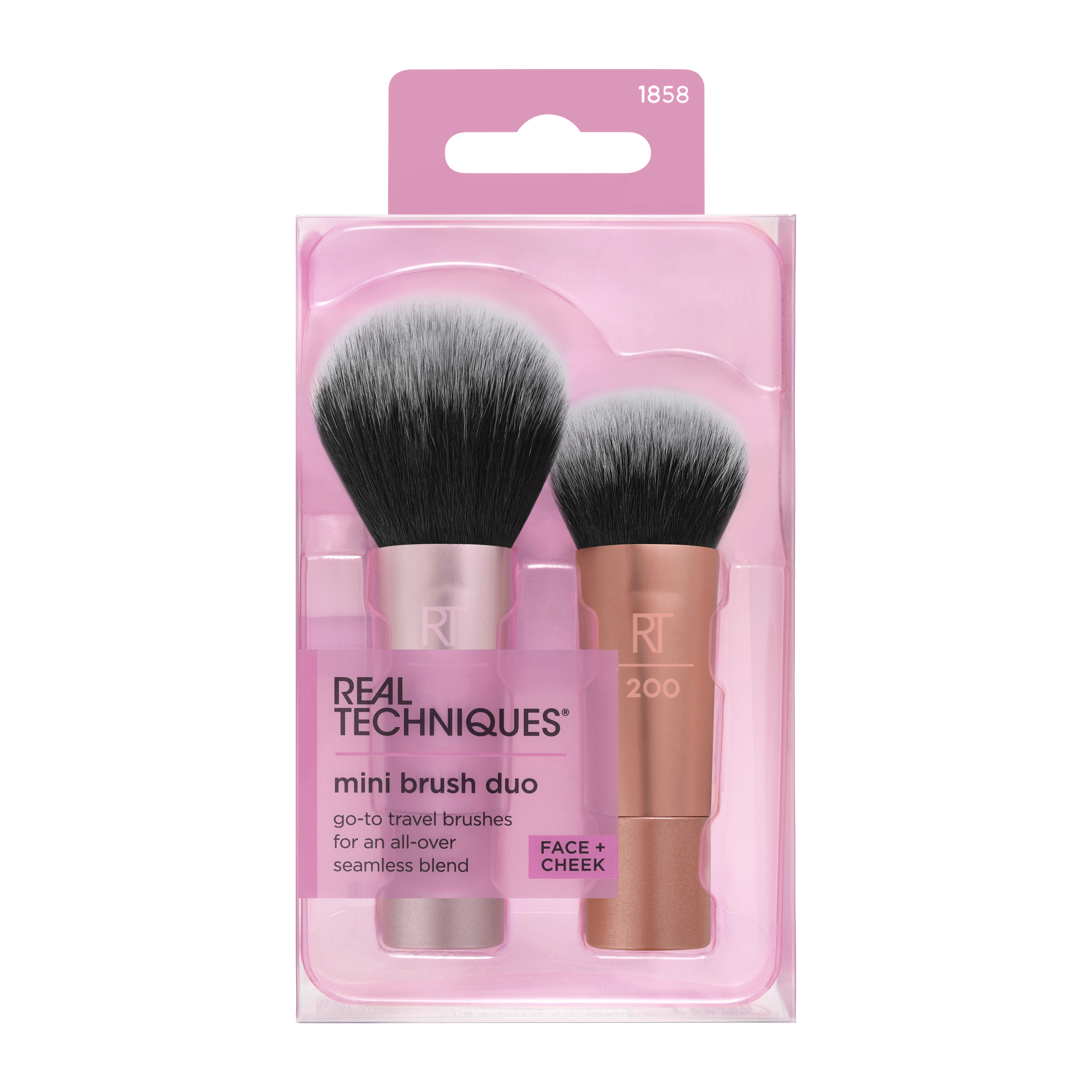 Real Techniques představuje Mini duo štětců na podklad a tvářenku, bronzer nebo pudr s měkkými štětinami. Díky zmenšené variantě je ideální na cestovaní či do kabelky na rychlou úpravu líčení. Sada obsahuje Štětec Multitask mini, který je díky svým jemným štětinám ideální pro aplikaci tvářenky, bronzeru nebo pudru. Štětec Expert mini má husté štětiny pro bezchybnou aplikaci krémového či tekutého make-upu. Snadno dosáhnete středního až úplného krytí.
