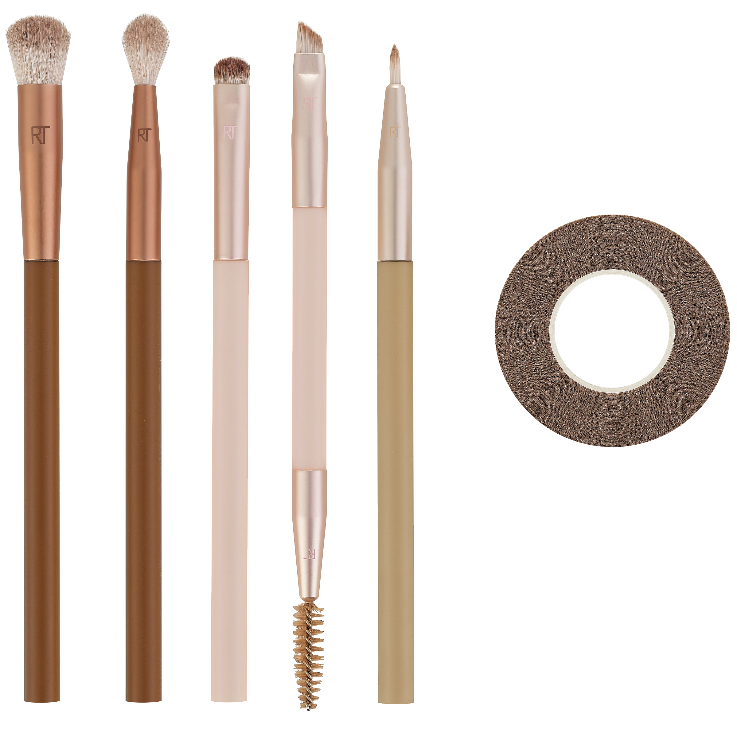 Šest základních nástrojů pro perfektní líčení očí a upravené obočí. Díky kosmetické pásce navíc vytvoříte přesné linky nebo precizní oční looky.