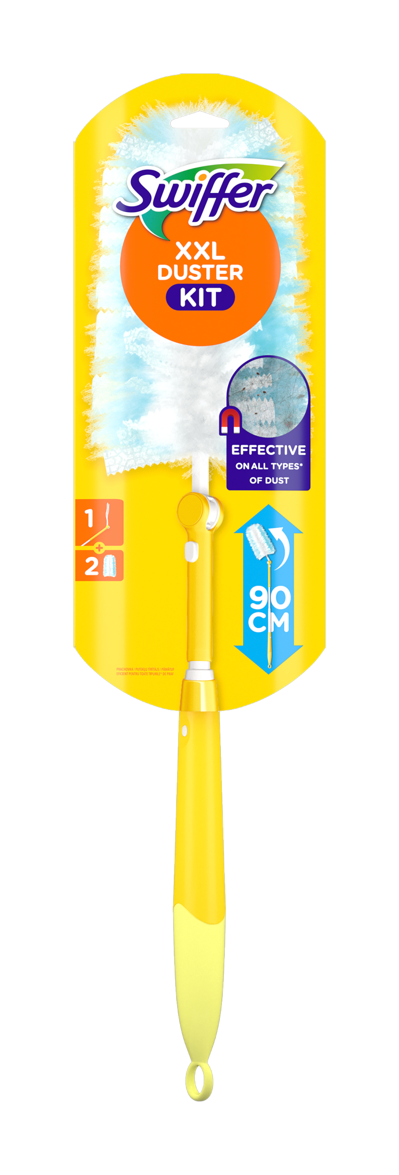 Rozlučte se s prachem, nečistotami, vlasy a chlupy na podlaze. Prachovky Swiffer XXL slouží k zachycení prachu, vlasů a alergenů z roztočů, ale také kočičích a psích chlupů z povrchů, a to pomocí tisíců jemných povrchově upravených vláken. Prachovku Swiffer XXL lze prodloužit až na 90 cm, aby dosáhla i na vysoká místa a do úzkých prostor. Poskytuje mnohem důkladnější úklid než jiné prachovky. Teleskopická prachovka má otočnou hlavici, která nabízí čtyři různé uzamykatelné polohy pro čištění koutů dřevěných podlah, nábytku, rohů skříní, podlahových lišt atd. Dosáhne i do těch nejobtížněji dostupných míst, jako jsou radiátory, rolety, přístrojové desky aut nebo elektronika… Prachovky Swiffer jsou vyrobené z jedinečných vláken, která se tvarově adaptují zákoutím a trhlinám, kam pronikají a všechny povrchy tak zbavují prachu, vlasů a chlupů bez víření prachu a nečistot. Tipy pro vás: jsou obzvláště vhodné na odstraňování chlupů z neustále línajících domácích mazlíčků a pro osoby trpící alergií na prach. Fungují tak dobře, že vás možná začne bavit utírat prach. Prachovky Swiffer používejte spolu s násadou Swiffer®.