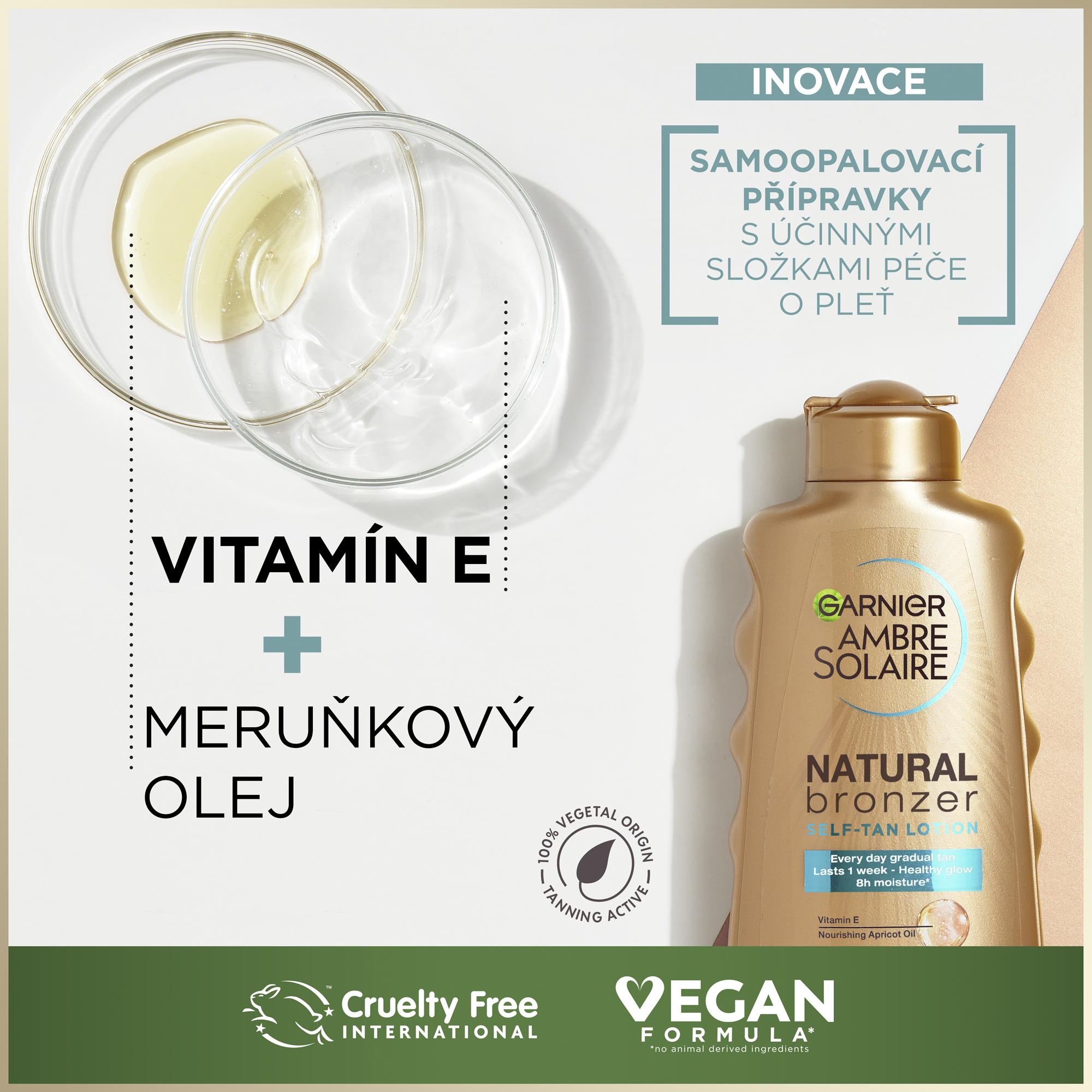 Samoopalovací mléko dodává pokožce krásné opálení a zároveň ji hydratuje. Mléko obohacené o vitamin E a vyživující meruňkový olej poskytuje přirozené opálení beze šmouh, které vydrží až 1 týden. 8 hodinová hydratace. Rychlé schnutí. Příjemná svěží vůně.
