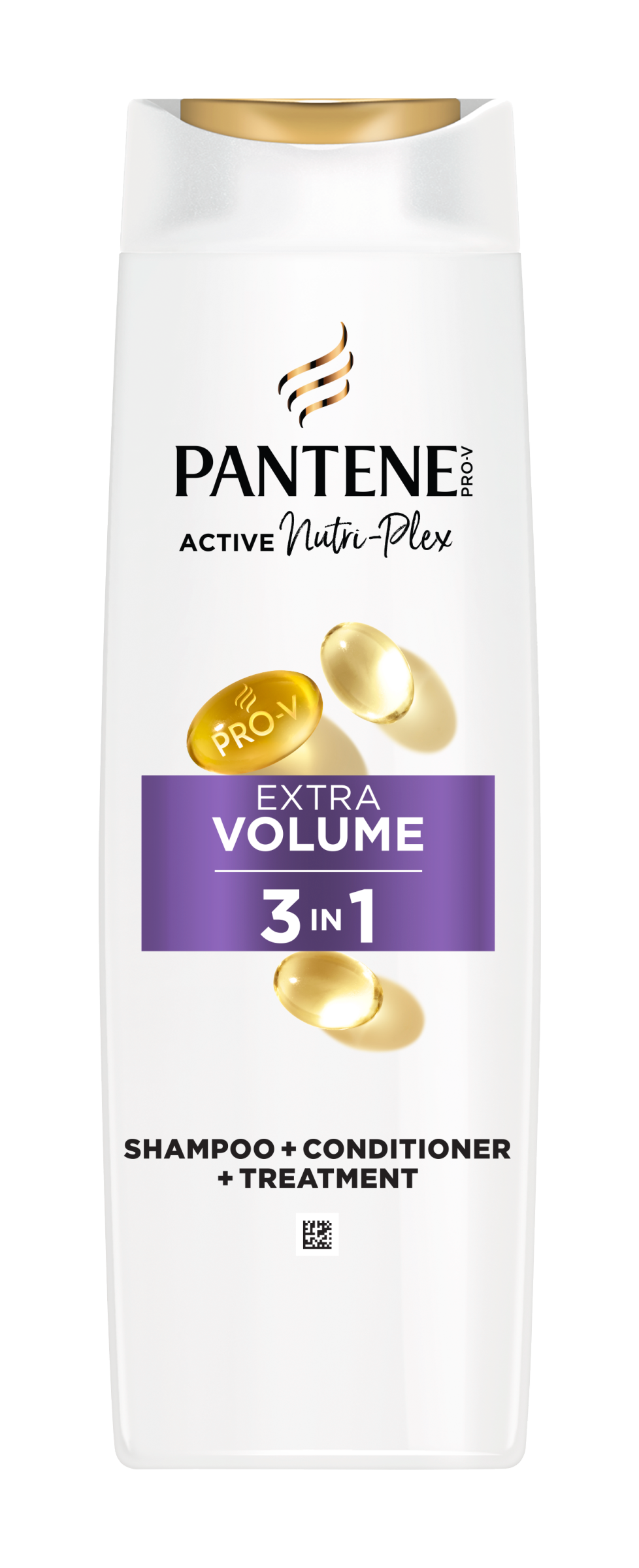 Objevte šampon Pantene Volume & Body 3 in 1, dokonalé řešení péče o vlasy, které zvládne vše v jediném kroku. Tento inovativní produkt s recepturou PRO-V a technologií ACTIVE NUTRI-PLEX je pečlivě navržen tak, aby vaše vlasy současně čistil, umožňoval jejich snadné rozčesávání a ošetřoval je. Je to víc než jen šampon. Je to komplexní péče, která chrání vlasové vazby a posiluje vaše kadeře zevnitř. Již po prvním použití tento šampon posílí potenciál vašich jemných vlasů a dodá jim plný vzhled s lehkostí a leskem. Složení bez barviv a minerálních olejů působí na posílení* vašich vlasů pro okamžitý objem, a to prakticky bez zatížení. Testováno institutem Swiss Vitamin Institute. *odolnost proti poškození způsobenému úpravou účesu ve srovnání se šamponem bez kondicionéru při použití se šamponem a krémovými produkty.