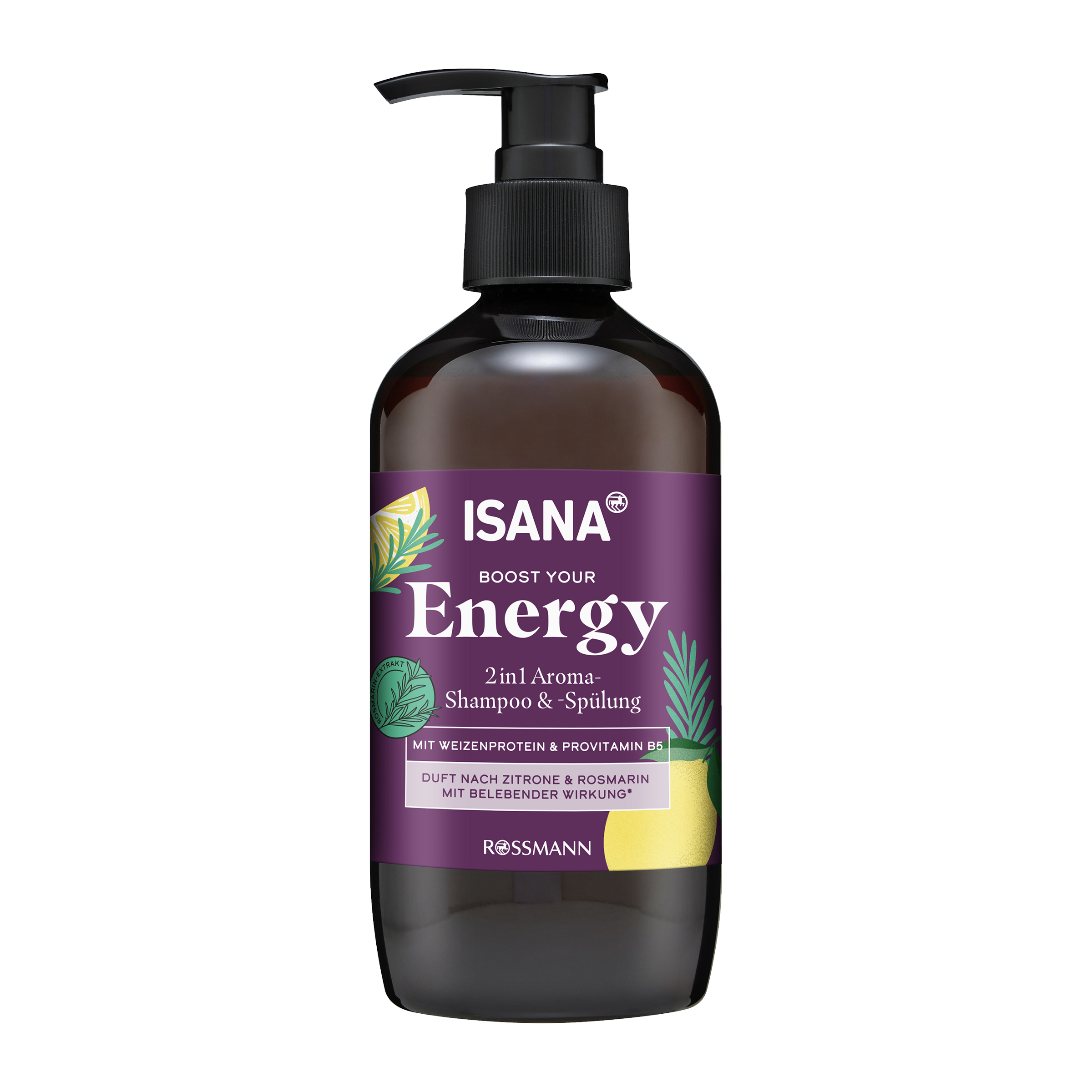 Isana 2v1 Šampon a balzám Aroma Energy vám dodá každodenní energii díky revitalizující vůni citronu a růže, speciálně vyvinuté odborníky s použitím Giv. MoodScentz. Silné složení s pšeničným proteinem, provitamínem B5 a rozmarýnovým extraktem zajišťuje intenzivní péči. S pšeničným proteinem, citronem a rozmarýnem; rozmarýnová vůně s revitalizačním účinkem.