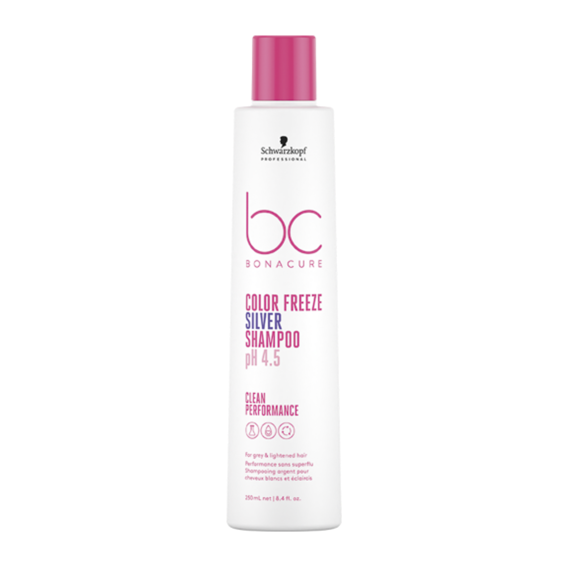 Schwarzkopf BC Bonacure Color Freeze Silver Shampoo je pigmentovaný šampon speciálně vyvinutý pro vlasy s chladným tónem. Neutralizuje nežádoucí teplé podtóny a oživuje studené tóny. Šampon také obnovuje optimální hodnotu pH vlasů, aby zůstaly barevné pigmenty uzamčeny hluboko ve struktuře vlasu, čímž účinně zabraňuje vyblednutí barvy. Šampon jemně čistí a navrací barvené vlasy zpět na jejich optimální hodnotu pH 4,5, čímž dosahuje až 90% zachování barvy až po 30 umytí. Bílým a velmi světlým vlasům dodává jemný cendré shimmer. Žluté podtóny a mosaz jsou účinně odstraněny šamponem BC Color Freeze Silver Shampoo. Vlasy jsou šetrně vyčištěny, zatímco přímé pigmenty odstraňují teplé podtóny. Šampon lze použít na zesvětlené i barvené vlasy. Neobsahuje SLS/SLES sulfáty, silikony a umělá barviva. Veganský produkt pro péči o vlasy.
