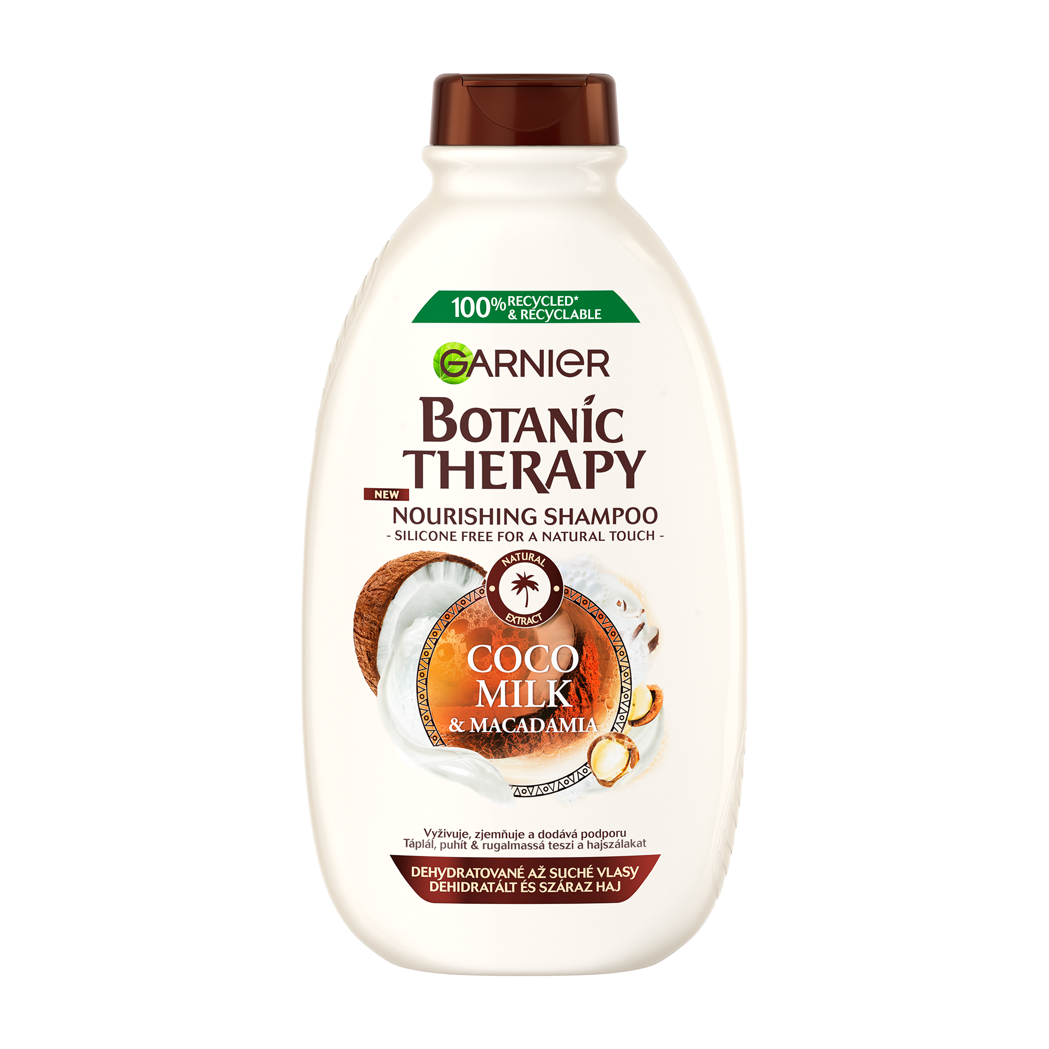 Spojení kokosu BIO a makadamiového oleje pro intenzivně vyživené, jemné a hebké vlasy.