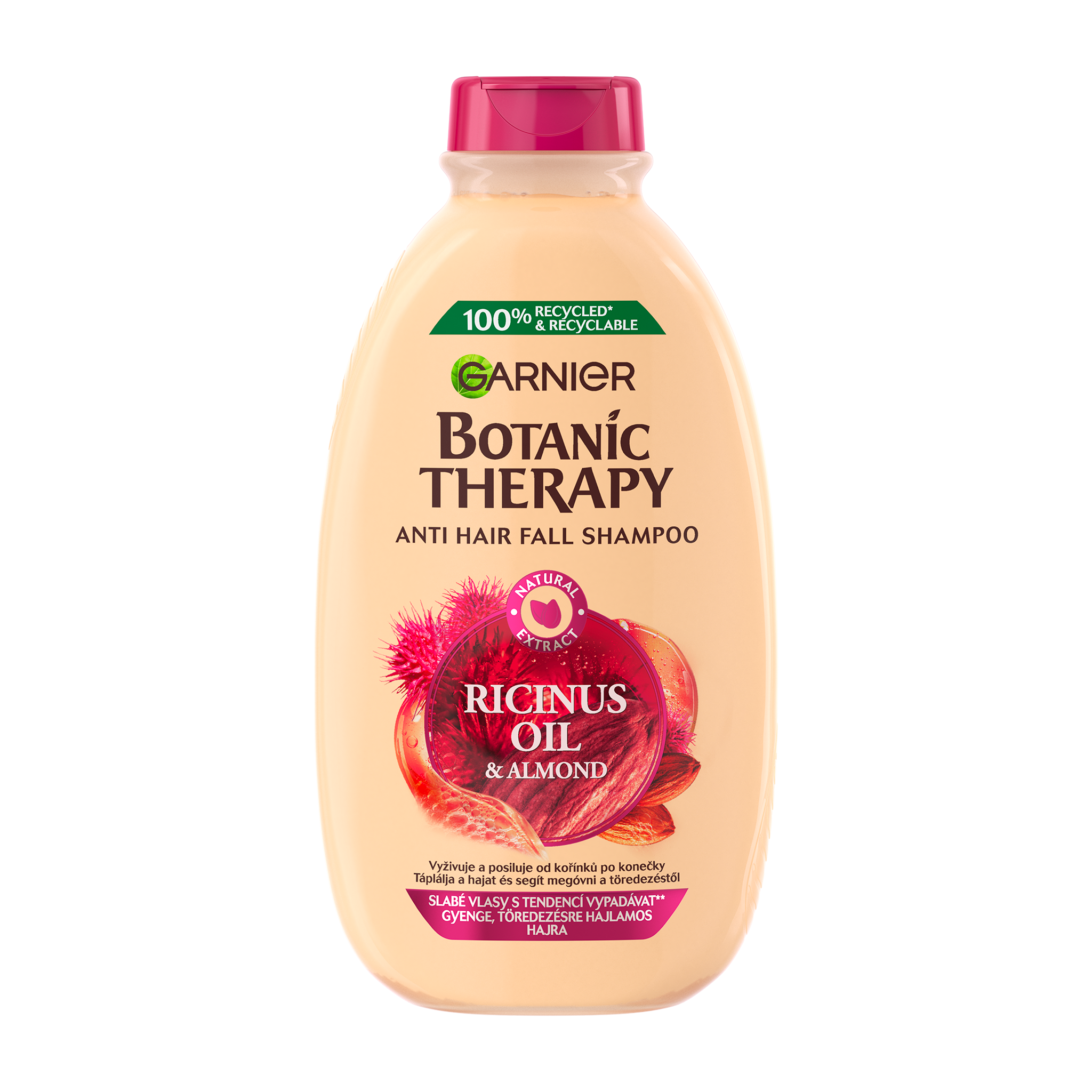 Spojení ricinového a mandlového oleje v revitalizující posilující receptuře pro intenzivní výživu a posílení vlasů od kořínků po konečky.