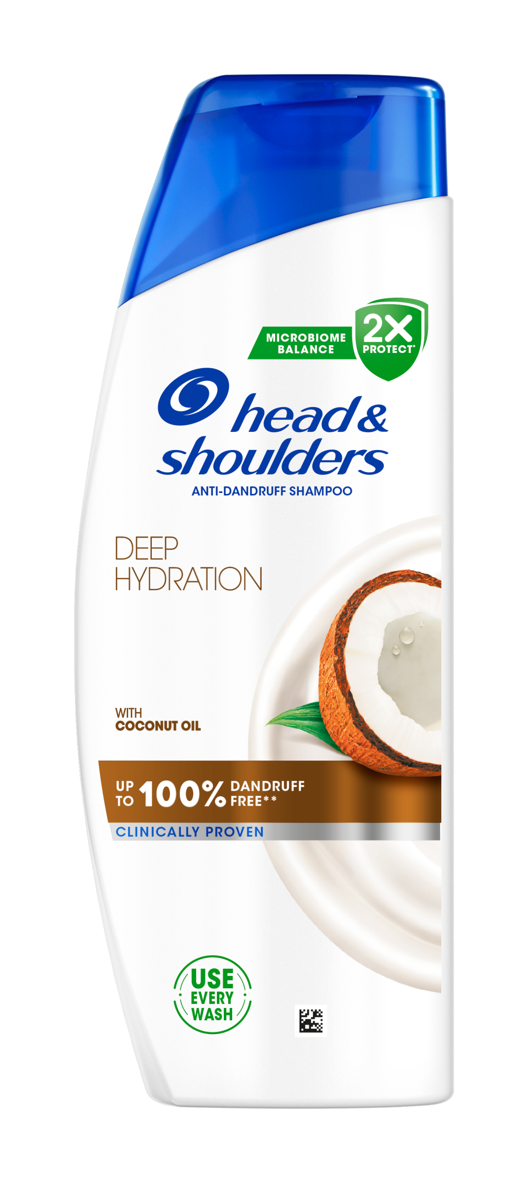 Head & Shoulders Deep Hydration šampon proti lupům pro všechny typy vlasů a všechny typy pokožky hlavy. Působí i proti odolným lupům. Šampon pro každodenní použití pro muže i ženy, s kokosovým olejem a se složením Microbiome Balance, které se zaměřuje na hlavní příčinu lupů a udržuje vyvážený mikrobiom pokožky hlavy. Působí proti viditelným i neviditelným lupům tím, že uvolňuje 2x více ochranných složek, které se dostávají do pórů a brání návratu odolných lupů. Má klinicky ověřené, dermatologicky testované složení s vyváženým pH, které zanechává pokožku hlavy a vlasy čisté a svěží.
