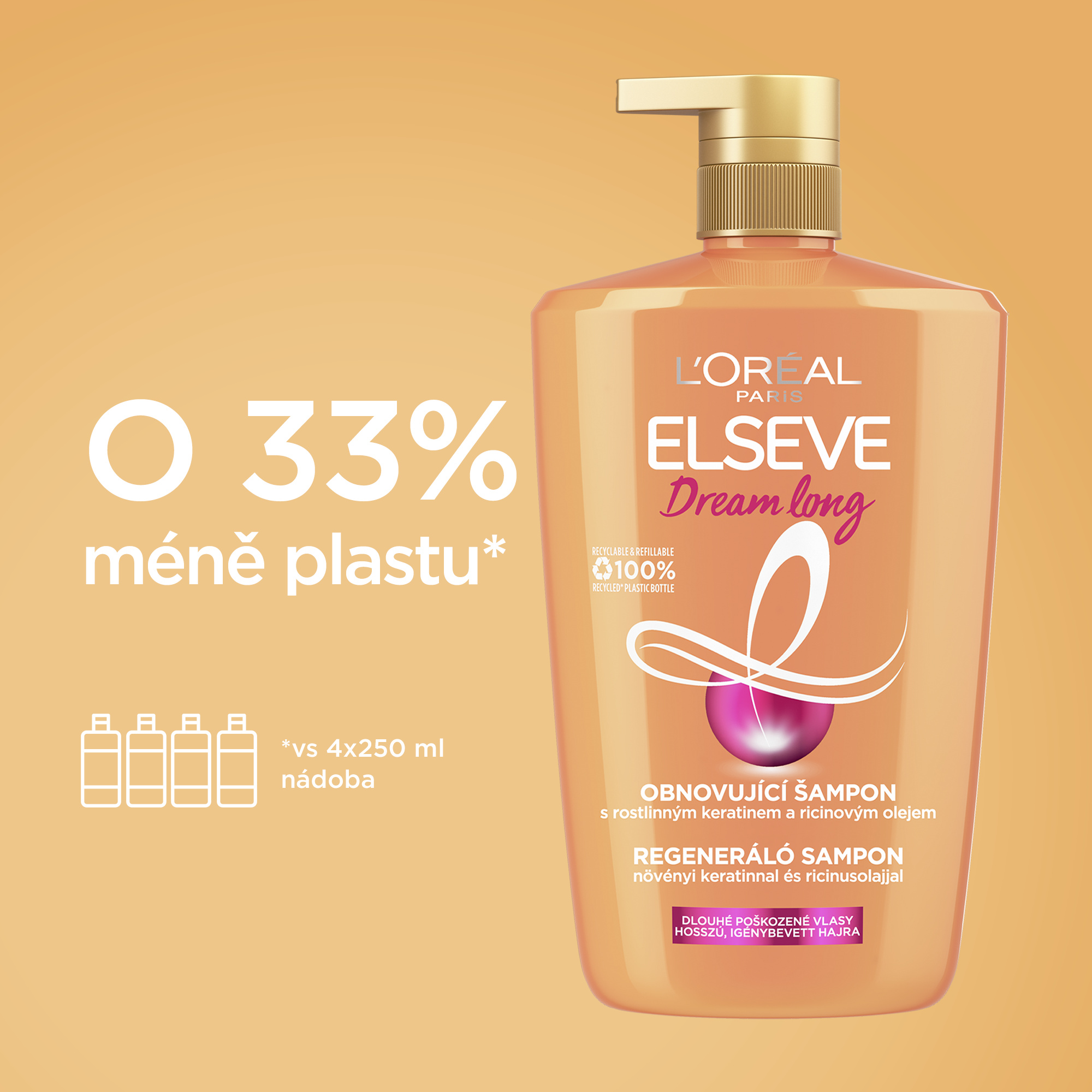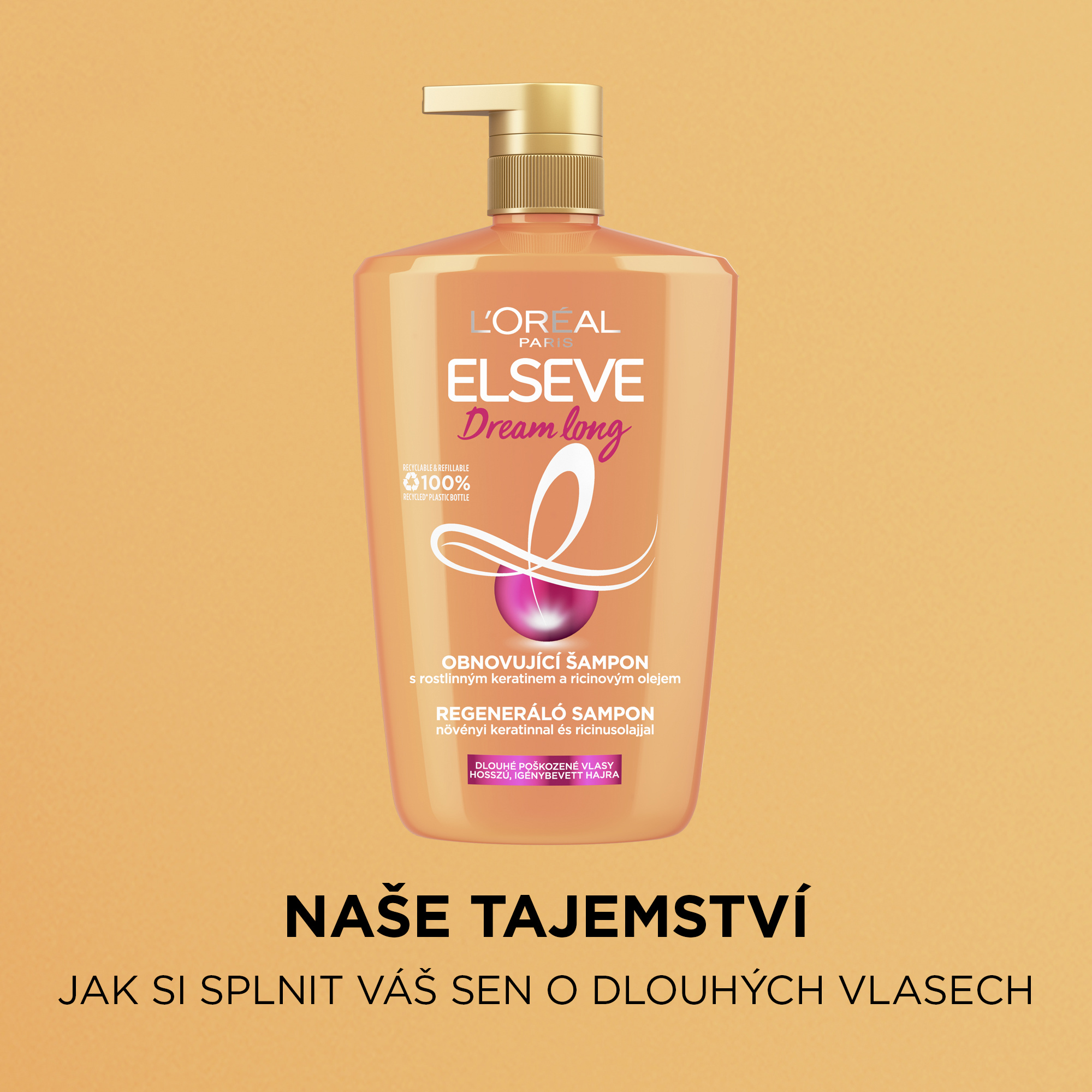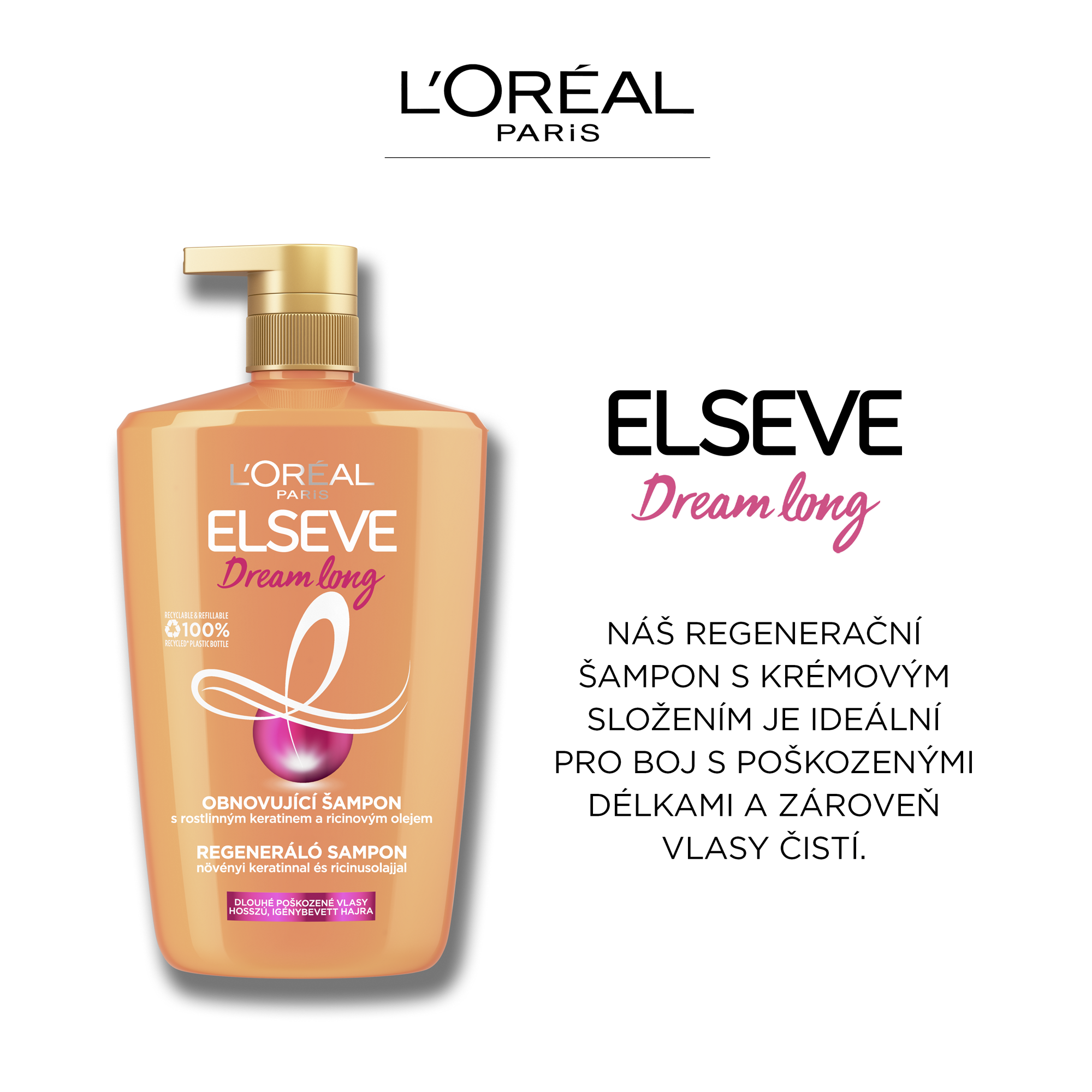 Tajemství jak si splnit váš sen dlouhých vlasů? Náš regenerační šampon Dream Long, s krémovým složením, je ideální pro boj s poškozenými délkami a zároveň vlasy čistí. Rozlučte se s poškozenými délkami a roztřepenými konečky díky jedinečnému složení s ricinovým olejem, rostlinným keratinem a vitamíny. Šampon Dream long regeneruje a vyživuje vlasy, posiluje vlasová vlákna a stimuluje růst vlasů.