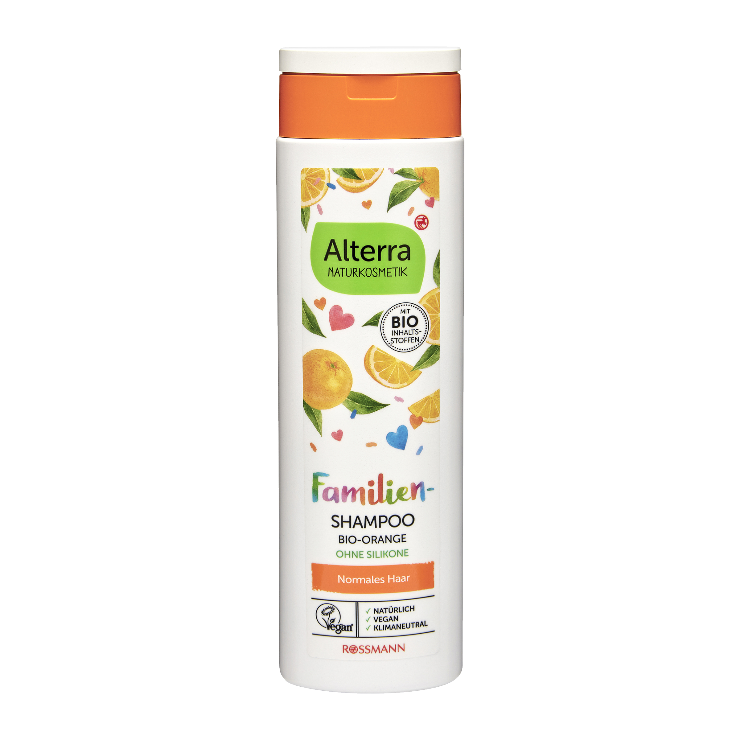 Jeden pro všechny - a o všechny je dobře postaráno: šampon Alterra Family s výtažky z organického pomeranče a organického kiwi myje vlasy všech věkových kategorií pomocí jemného složení s provitamínem B5 a povrchově aktivních látek rostlinného původu.