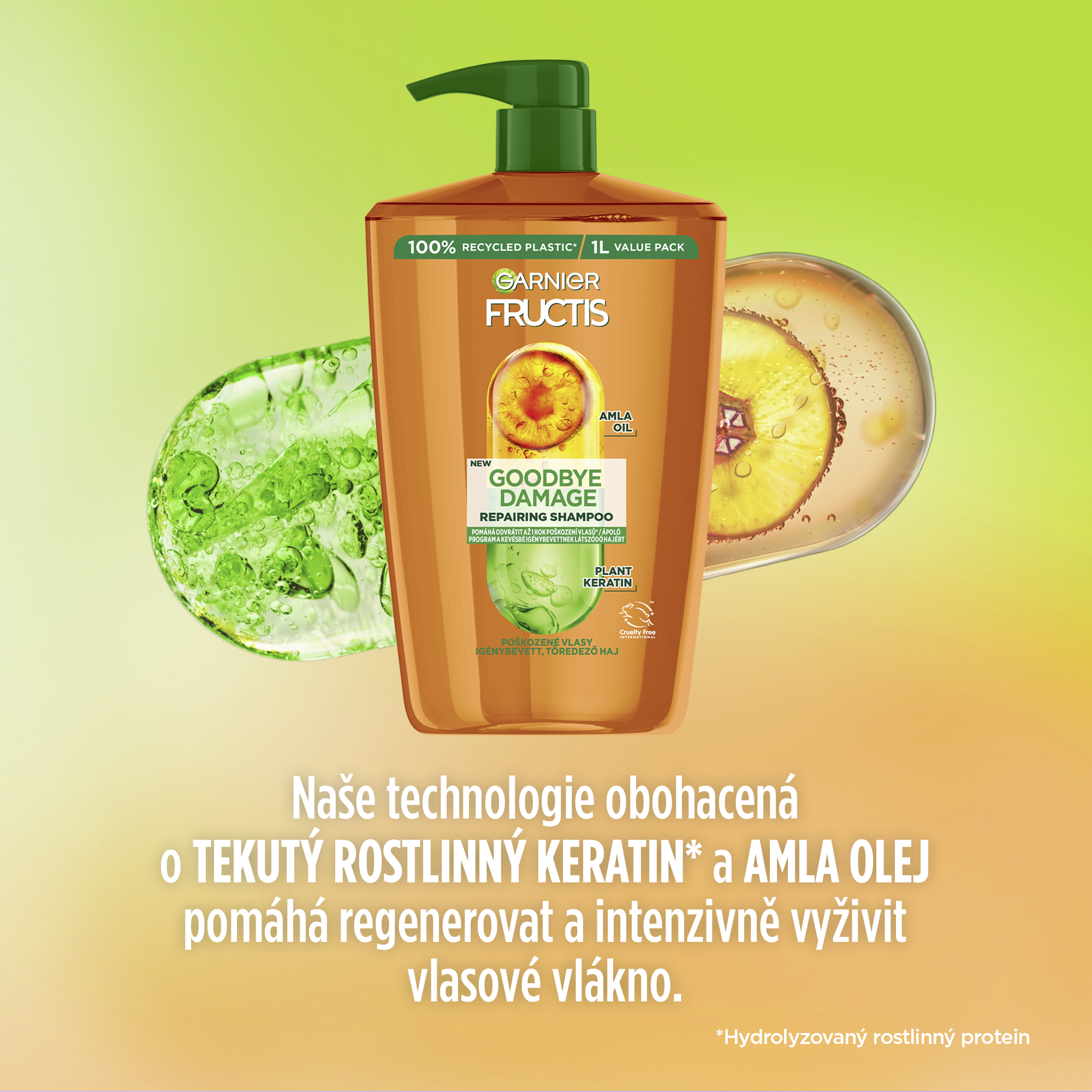Intenzivní výživa a posilnění vlasového vlákna. Posilující šampon pro poškozené vlasy (1) s technologií keratinového komplexu. Technologie s 3 % keratinového komplexu a s marulovým olejem. Aktivně proniká až do hloubky 10 vrstev. Intenzivně vyživuje a posiluje vlasové vlákno. Doplňuje keratin pro až 10x méně poškozené vlasy (2) a zanechává je až 10x odolnější (3) a až 7x jemnější na dotek (4). Mimo jiné přináší až 2x více zacelené kutikuly (3).