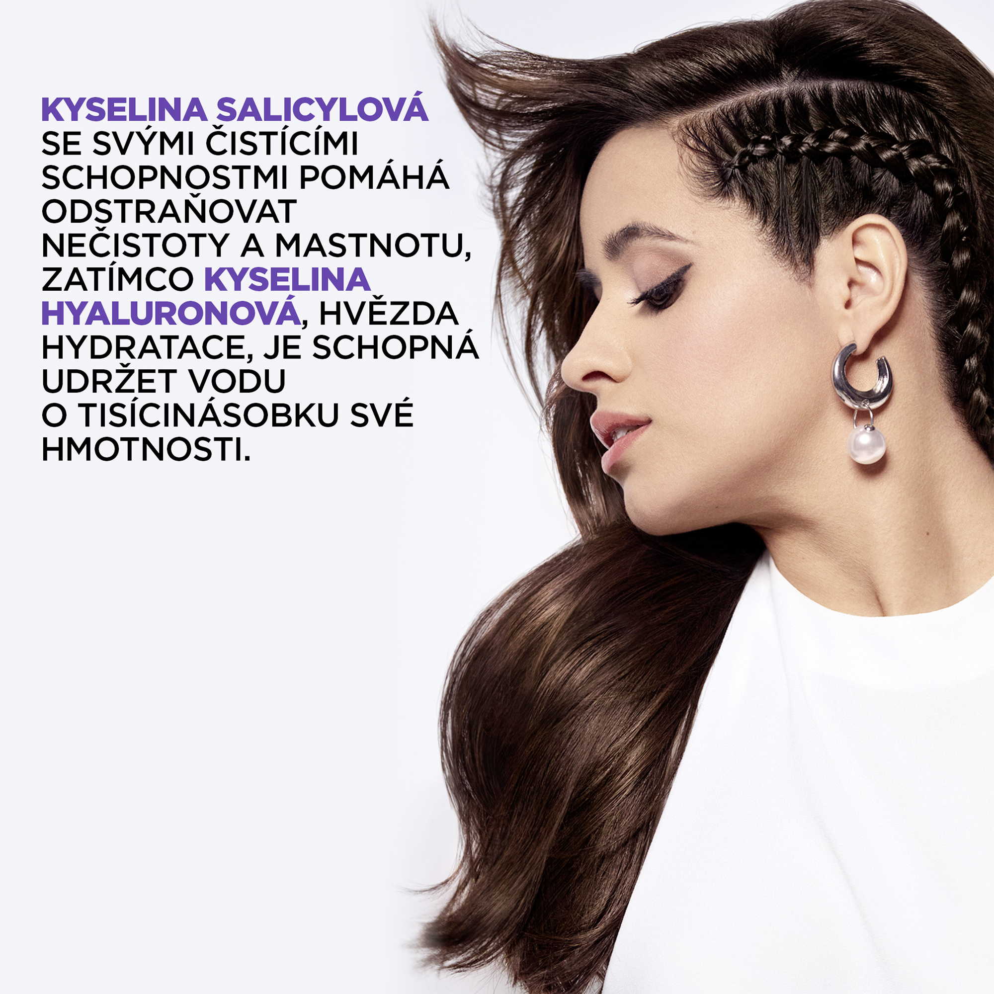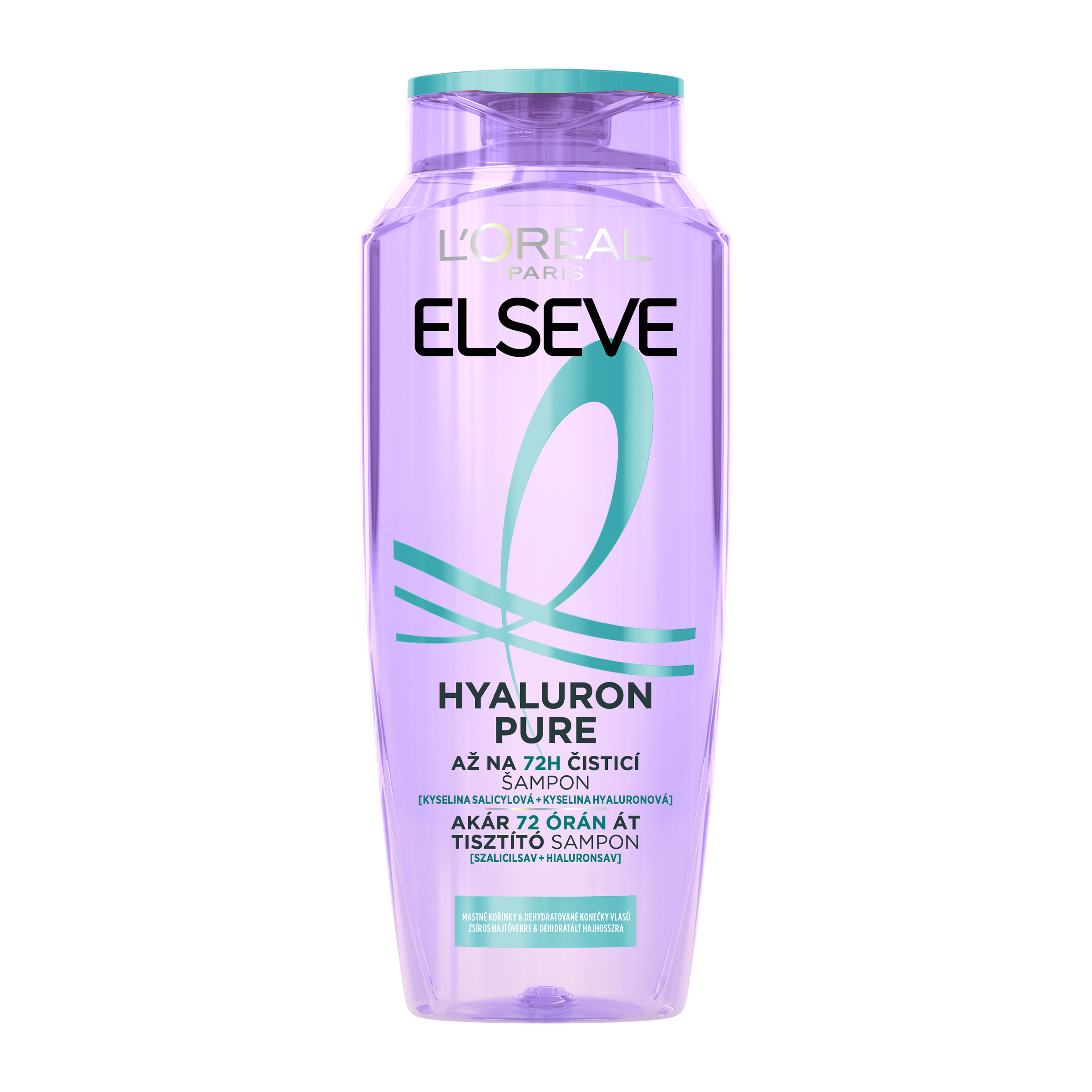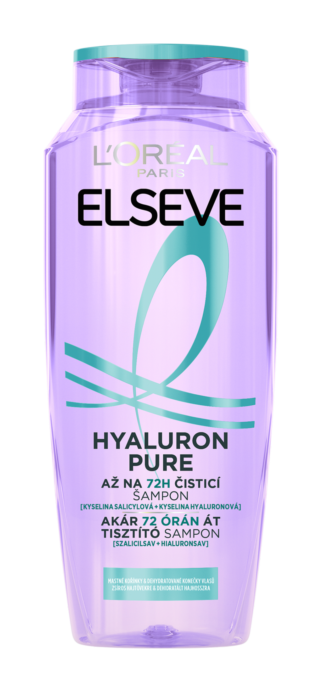 Mastné kořínky a suché délky? Náš čistící šampon na vlasy s kyselinou salicylovou a hyaluronovou odstraňuje mastnotu a nečistoty z pokožky hlavy a poskytuje rehydrataci po dobu až 72 hodin, pro čisté kořínky a hydratované délky, bez zatížení. (1)