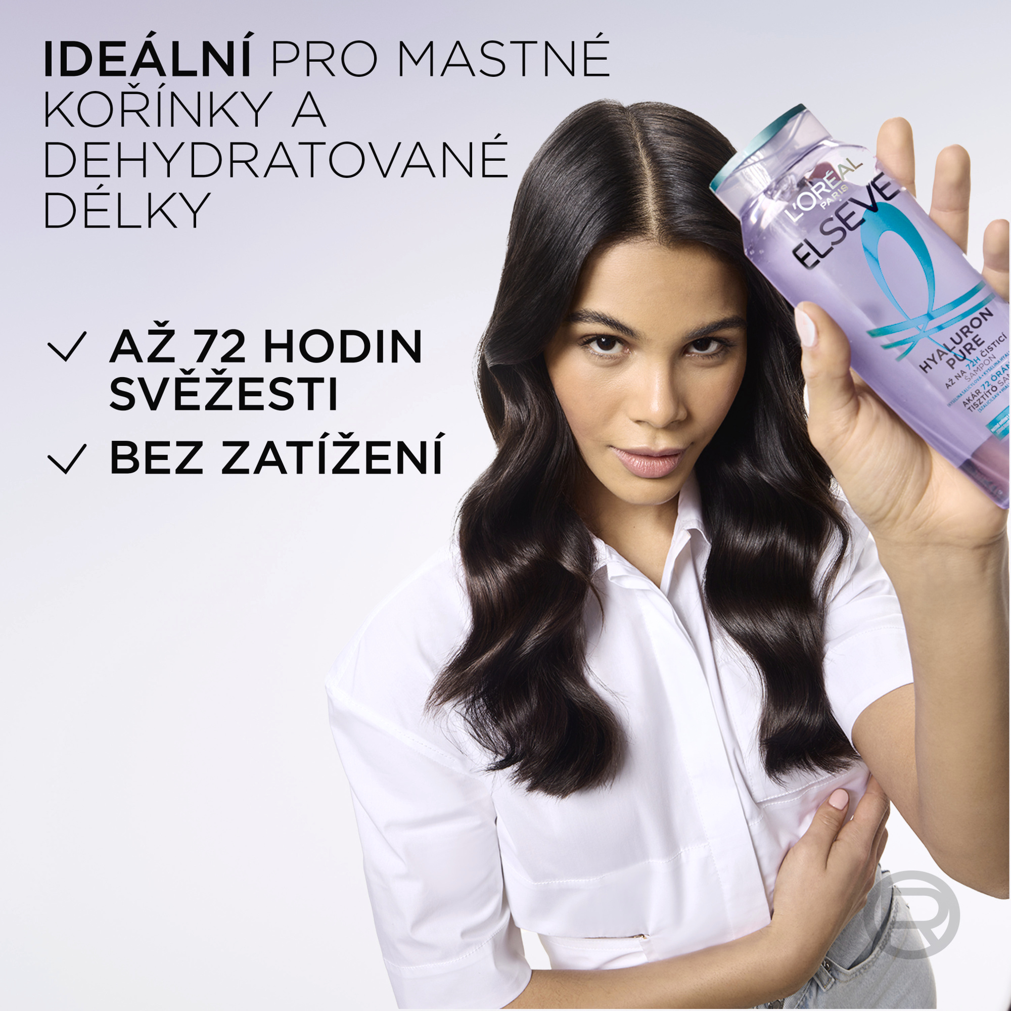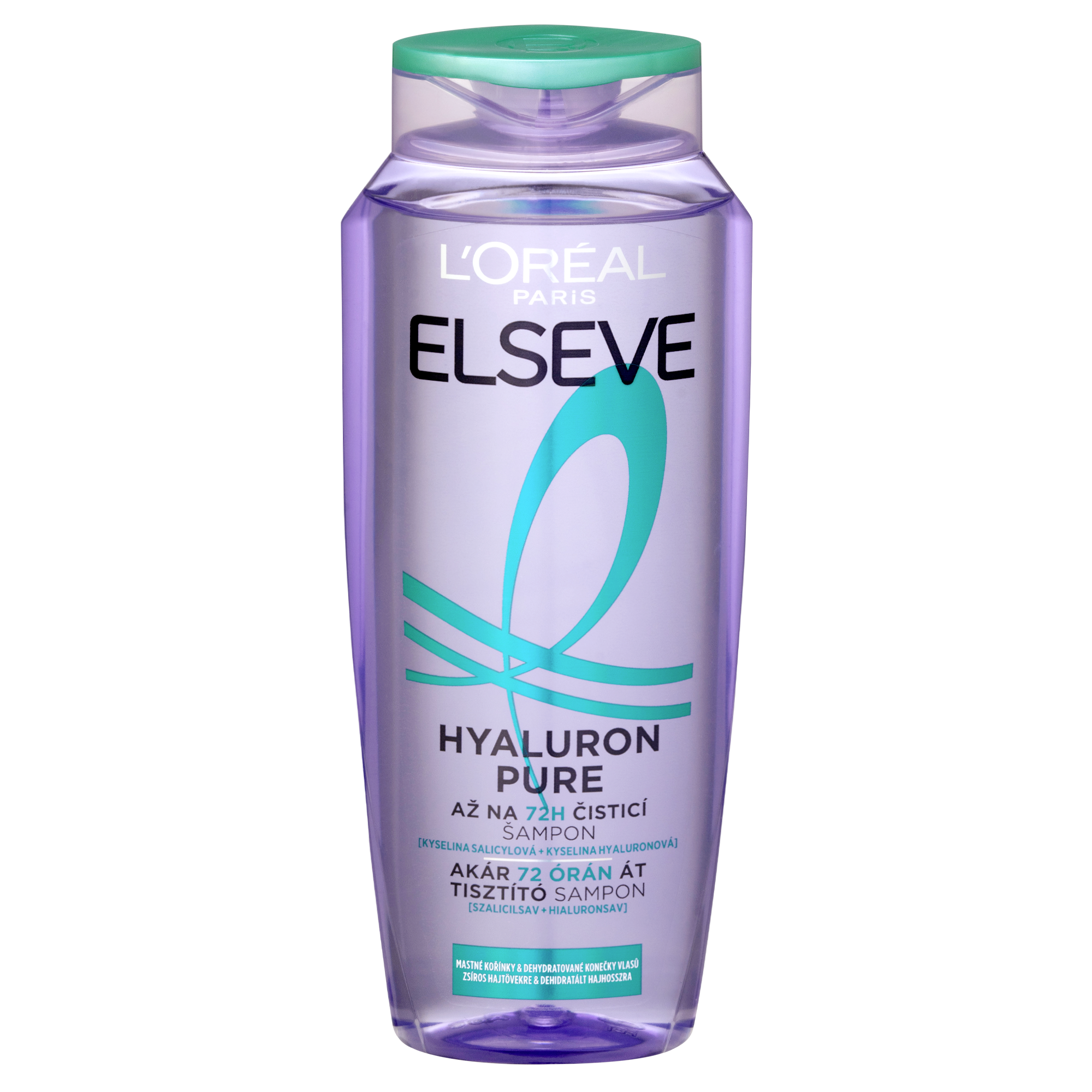 Mastné kořínky a suché délky? Náš rehydratační šampon na vlasy s kyselinou salicylovou a hyaluronovou odstraňuje mastnotu a nečistoty z pokožky hlavy a poskytuje rehydrataci po dobu až 72 hodin, pro čisté kořínky a hydratované délky, bez zatížení. (1) (1) Spotřebitelský test na 59 spotřebitelkách, 72 hodin po použití séra + šamponu + balzámu z řady Hyaluron Pure.