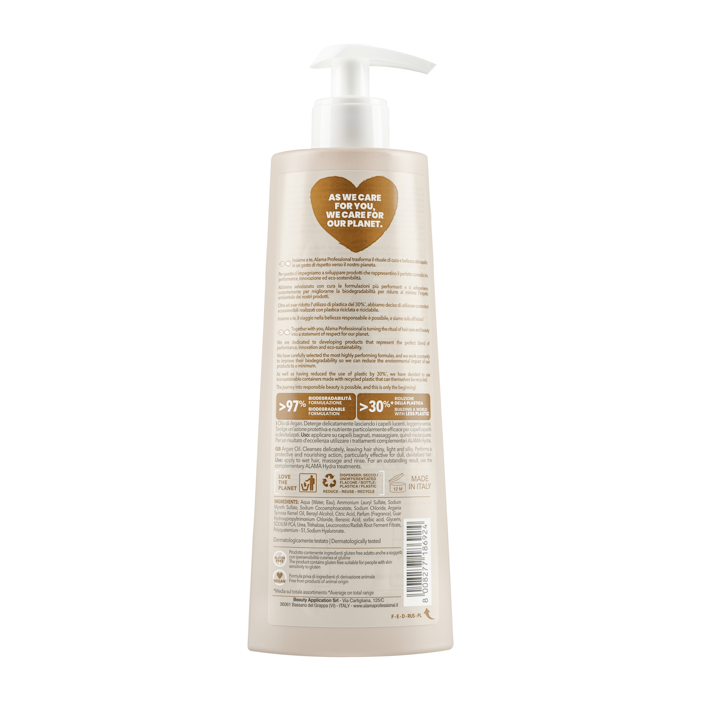 Hydratační šampon pro suché vlasy Arganový olej. Jemně čistí a zanechává vlasy lesklé, světlé a hedvábné. Má ochranný a výživný účinek, který je zvláště účinný pro matné a devitalizované vlasy.