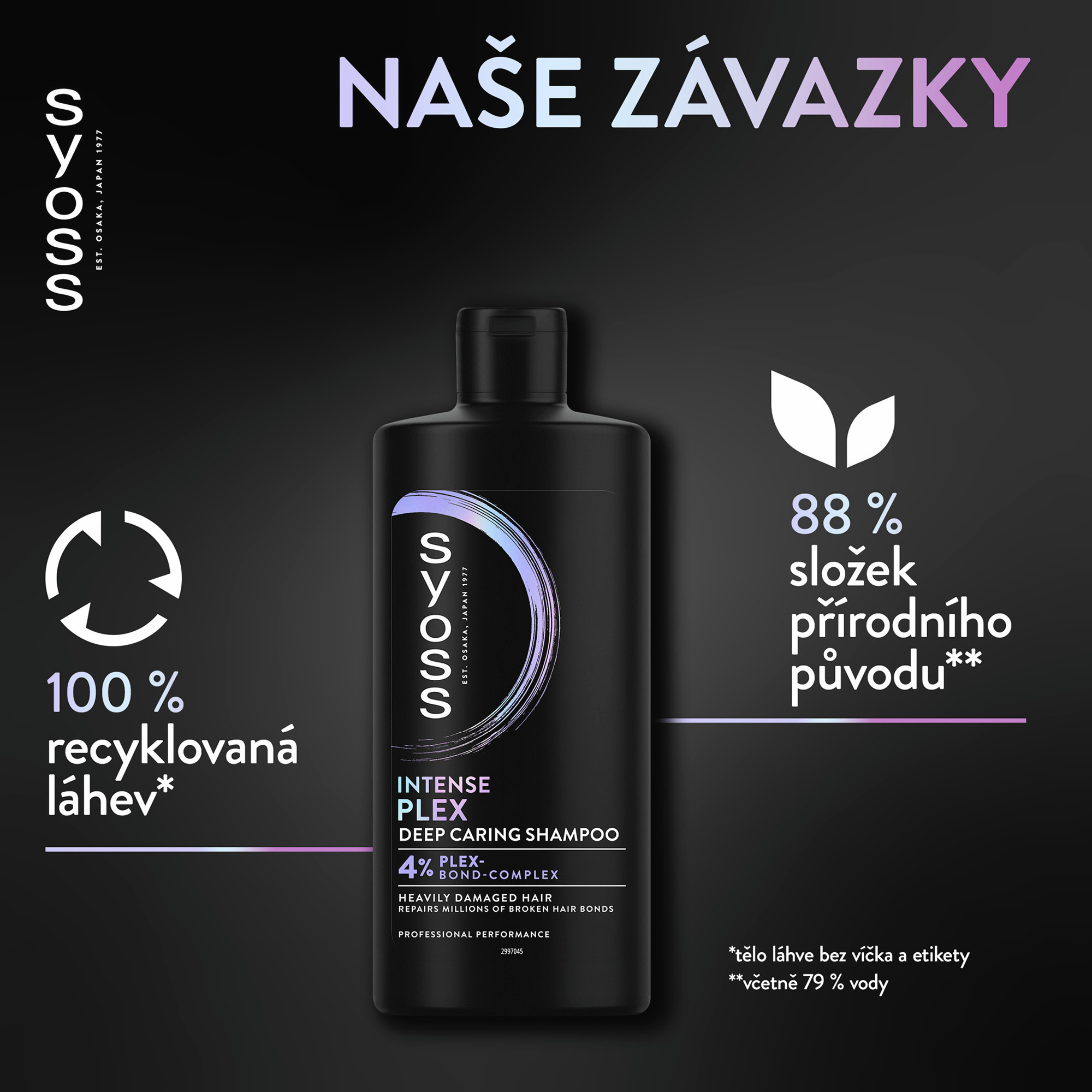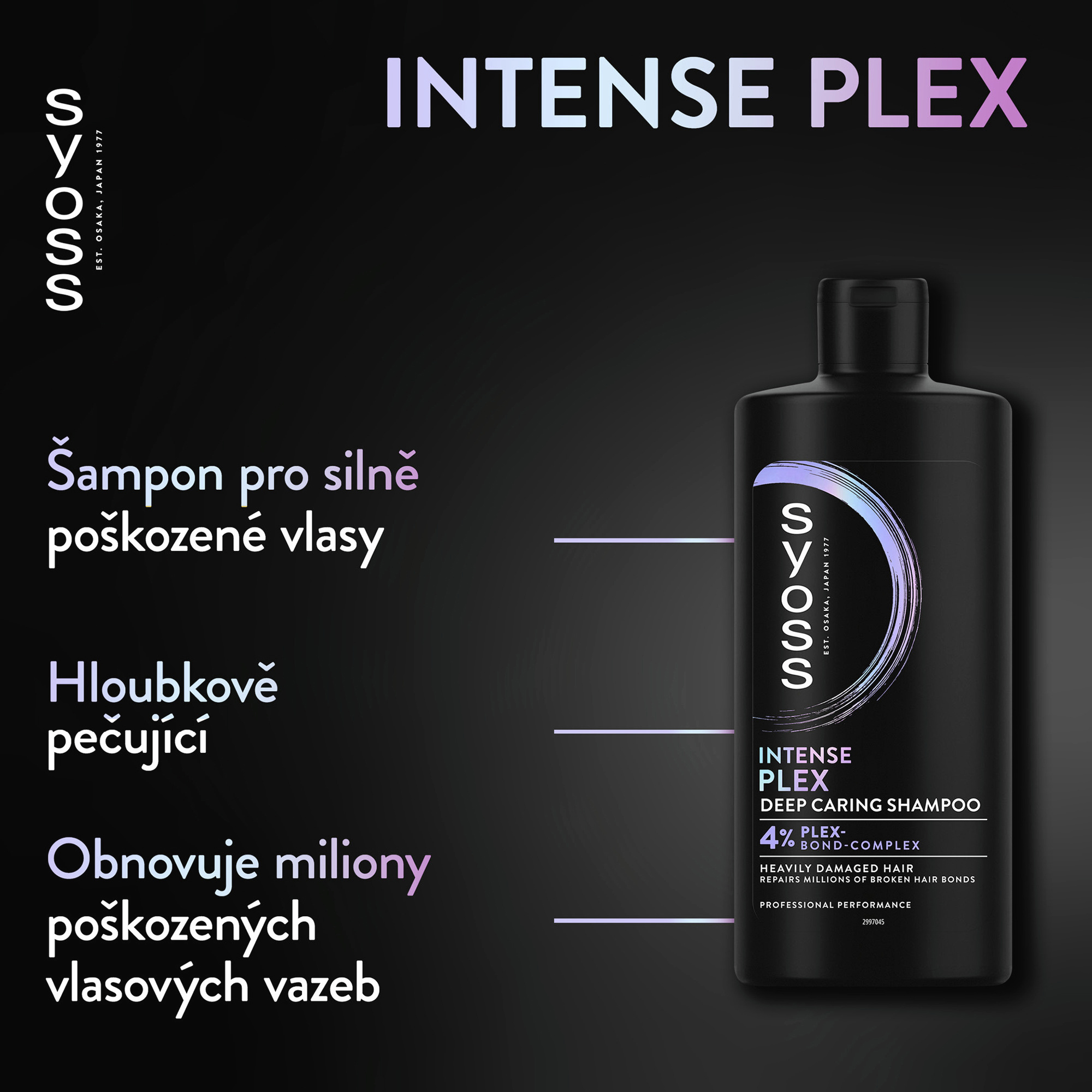 - Hloubkově pečující šampon: Šampon Syoss se 4% Plex bond-komplexem posiluje vlasy zevnitř, pro krásné a zdravě vypadající vlasy.