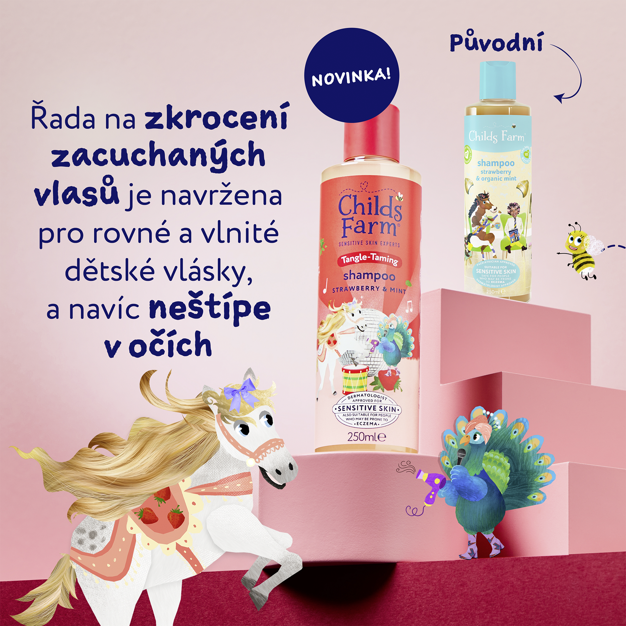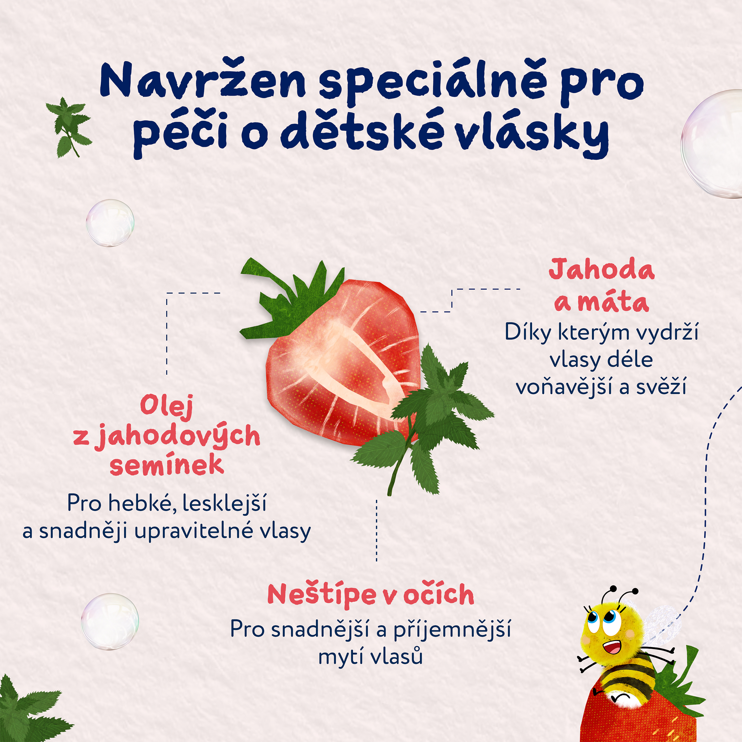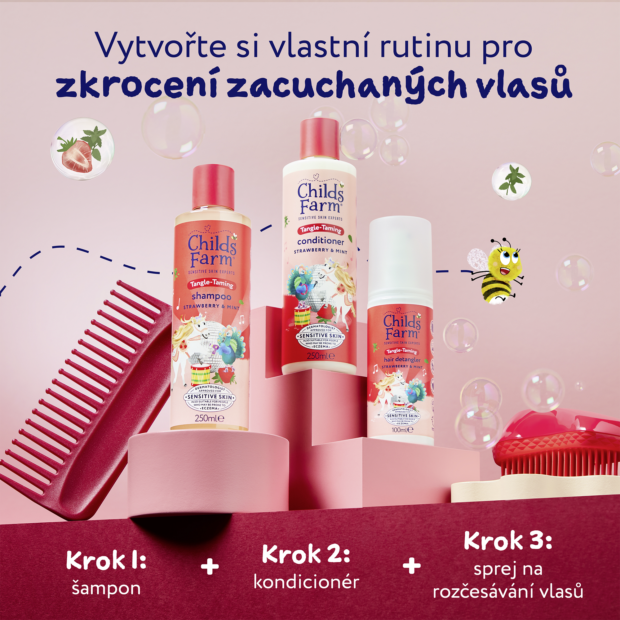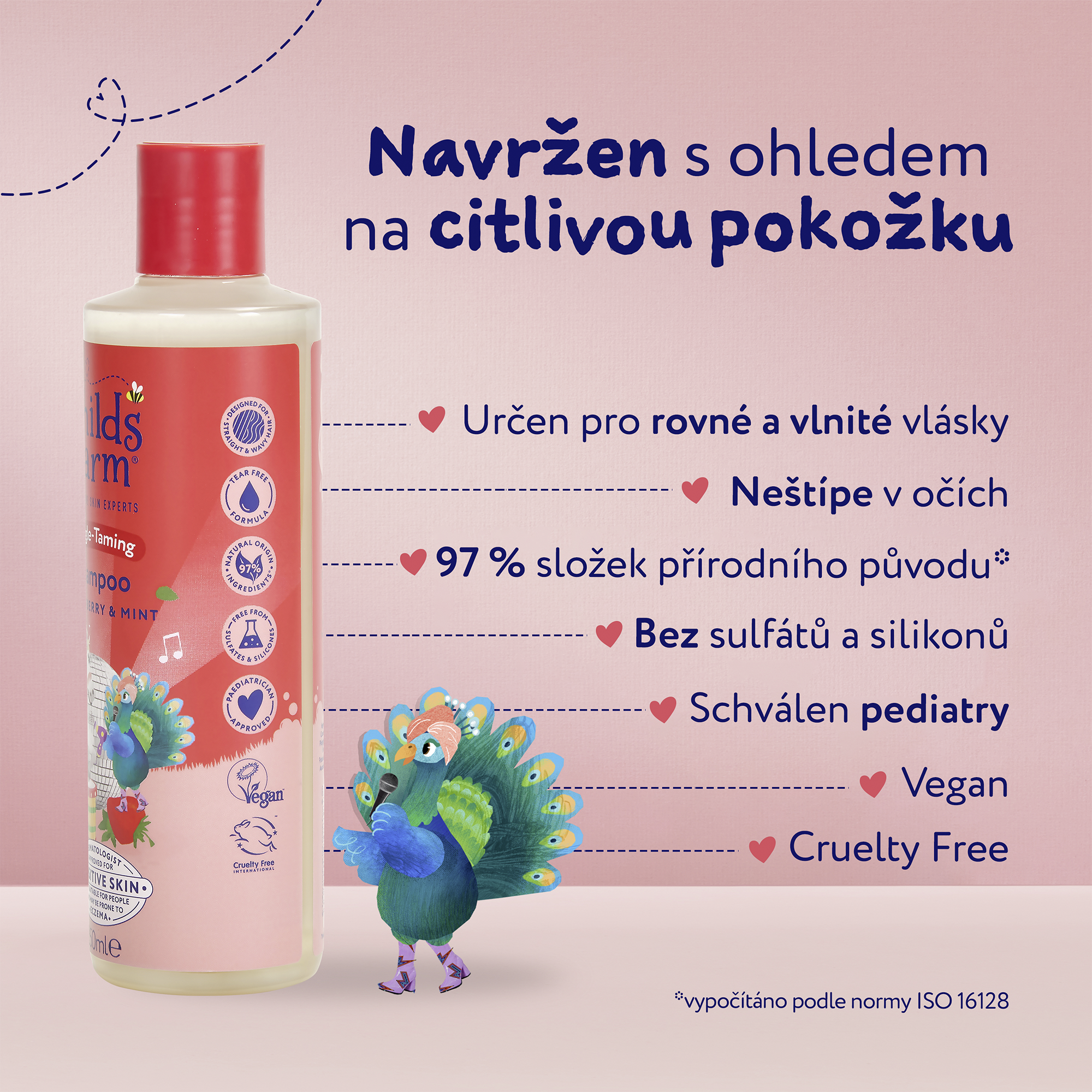 Dětský šampon s dlouhotrvající vůní jahod a máty jemně čistí a pomáhá zkrotit zacuchané vlásky. Navržen pro rovné a vlnité vlasy. Obsahuje olej z jahodových semínek pro hebké, lesklejší a snadněji upravitelné vlasy, a navíc neštípe v očích. Vhodný pro citlivou pokožku i tu se sklonem k ekzémům. Doporučujeme používat v kombinaci s Childs Farm Kondicionérem a Sprejem na rozčesávání vlasů jahoda a máta. Produkty Childs Farm jsou schválené dermatology i pediatry a nesou označení vegan a cruelty free.