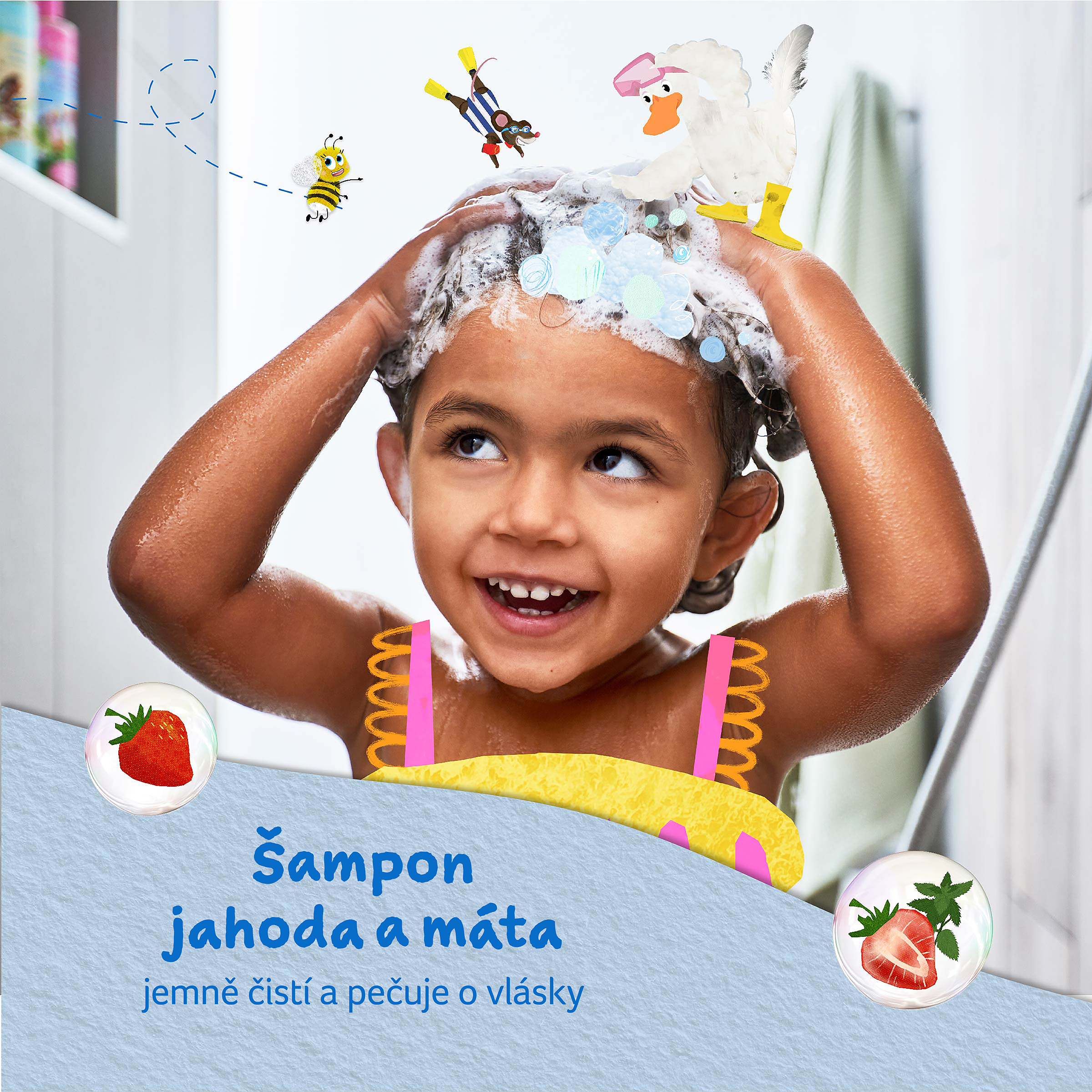 Vmasírujte množství o velikosti třešně do mokrých vlasů, soustřeďte se především na vlasovou linii a pokožku hlavy. Opláchněte teplou vodou. Při použití na hustých nebo dlouhých vlasů proces opakujte. Pokud se vlasy snadno zacuchávají, použijte po umytí vlasů Kondicionér jahoda a máta. Pouze pro vnější použití. V případě podráždění, omyjte velkým množstvím vody a přestaňte používat. Pokud se produkt dostane do očí, důkladně je vypláchněte vodou. Vhodné i pro citlivou pokožku již od narození.