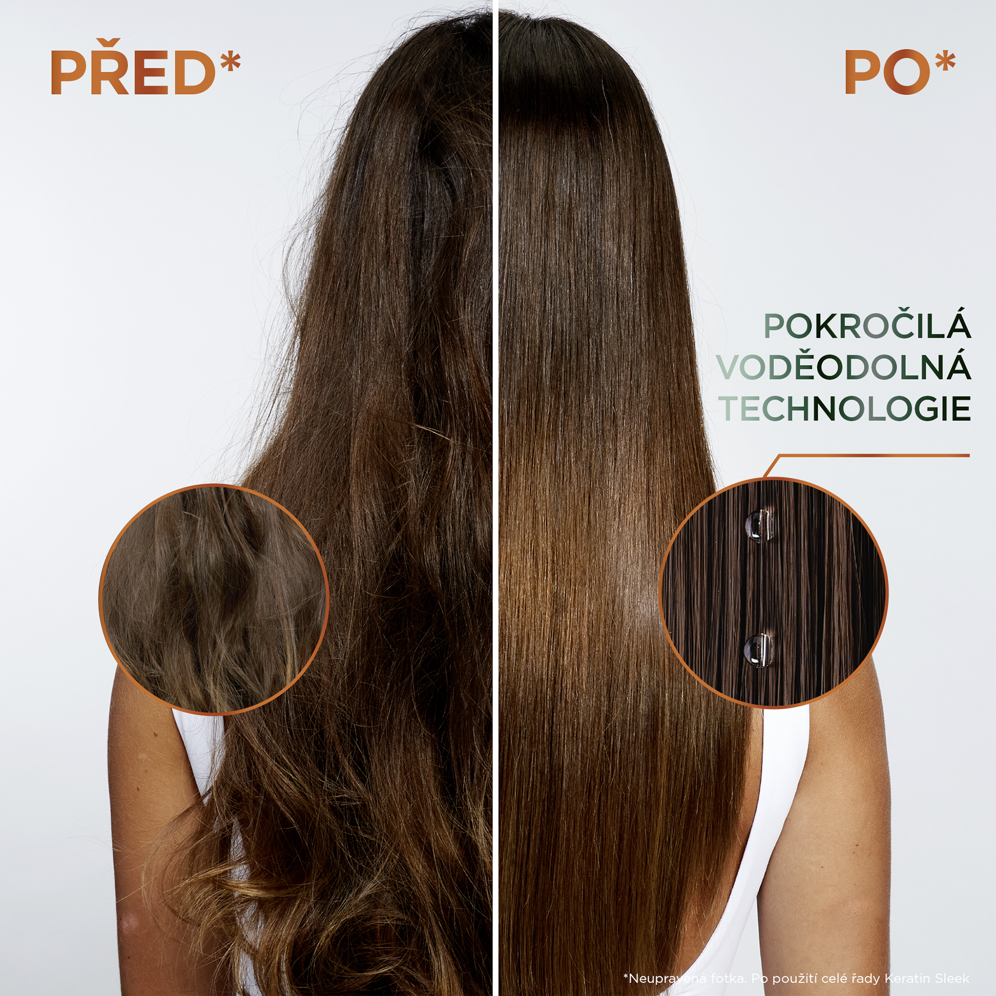 Dlouhotrvající lesk a perfektně uhlazené vlasy. Vlasy bez krepatění.