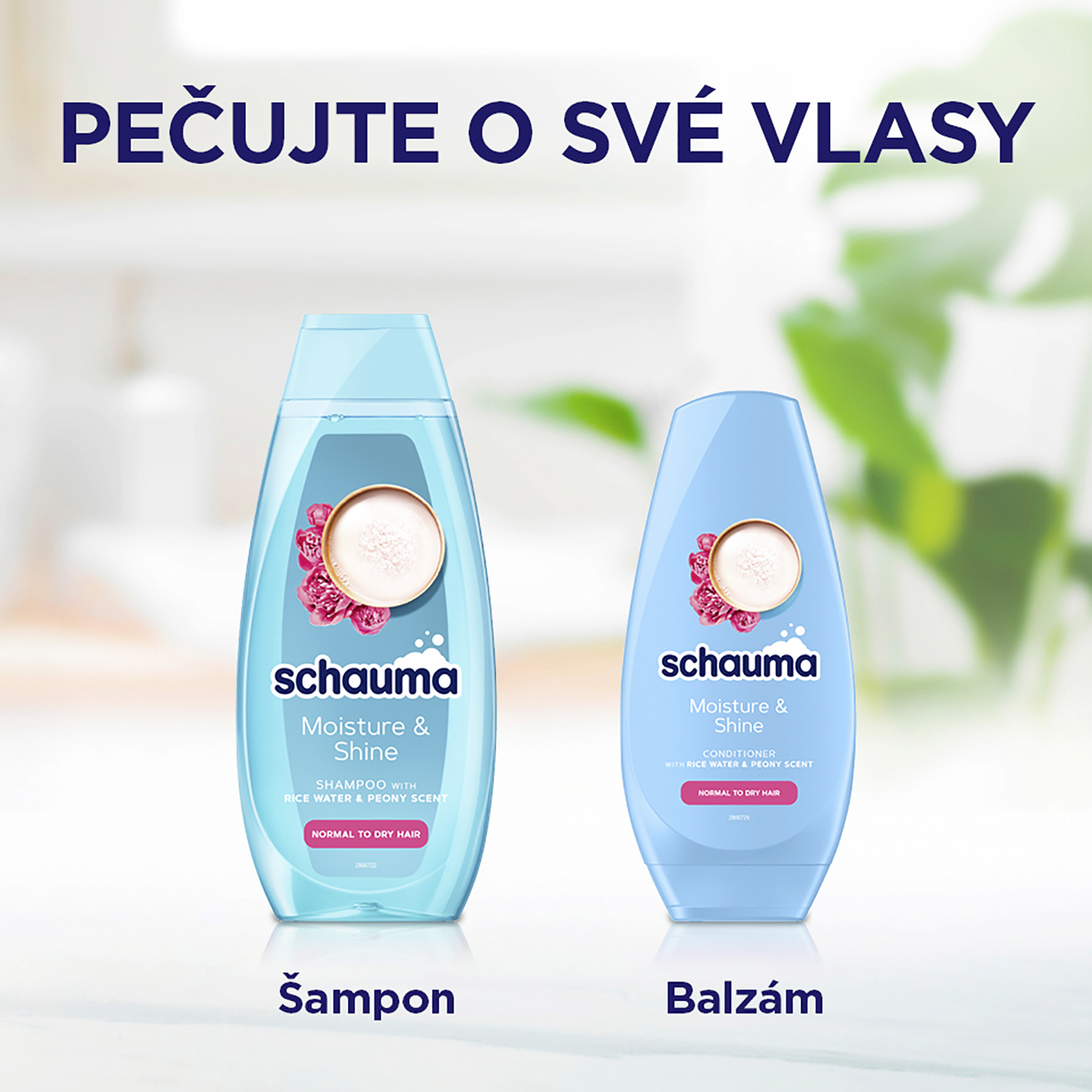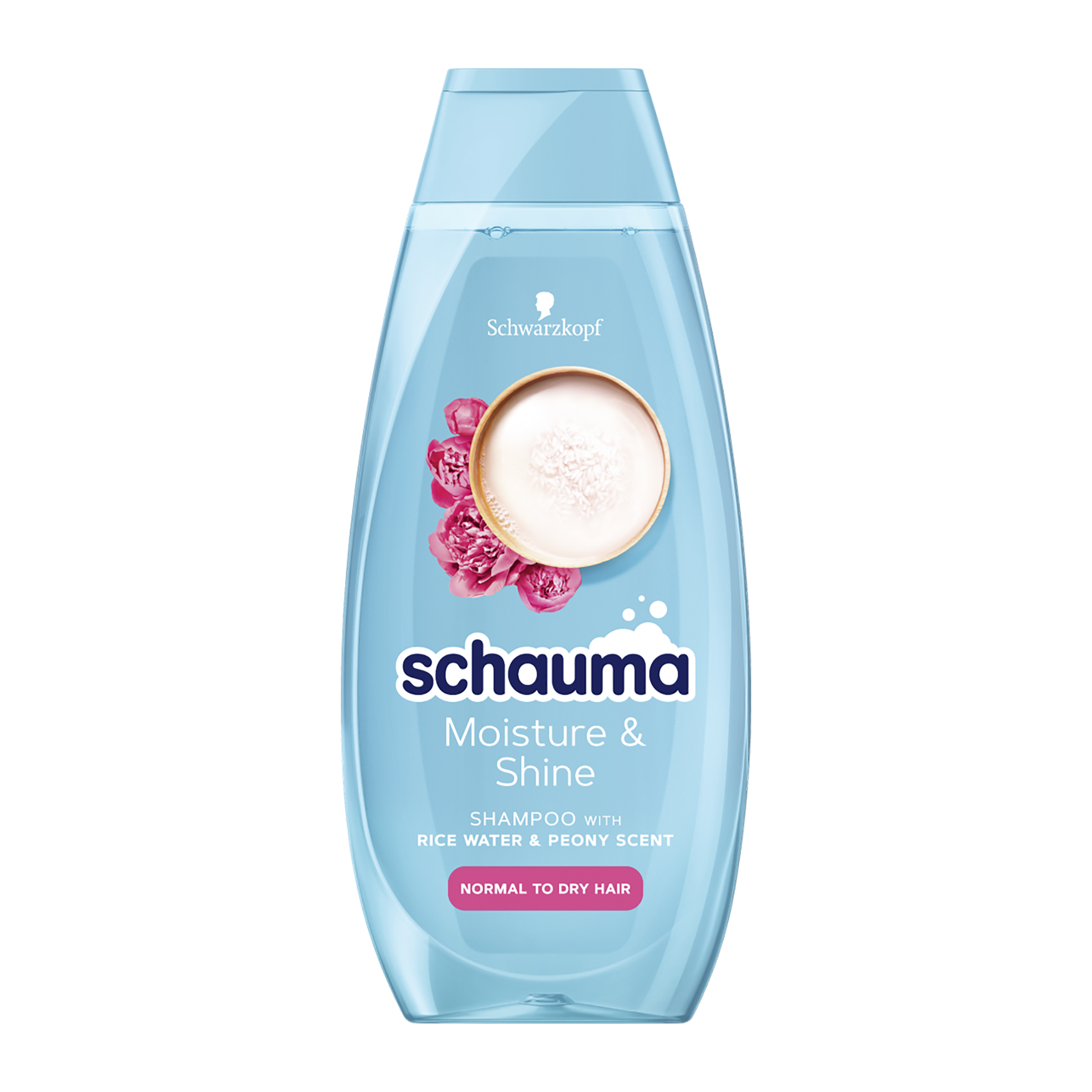 Schauma šampon Moisture & Shine s rýžovou vodou & vůní pivoňky pro normální až suché vlasy. Ahoj! Jsem tvůj šampon a tohle pro tebe dělám: Jemně čistím pokožku hlavy a hloubkově hydratuji vlasy zevnitř pro jejich zářivý a zdravý vzhled. Užij si mé veganské složení* s obsahem rýžové vody a s vůní pivoňky. Jsem znovu použitelný: Tělo mé láhve je vyrobeno z 98 % z recyklovaného plastu, zatímco mé víčko je vyrobeno z 25 % z recyklovaného plastu. Nezapomeň mě recyklovat!