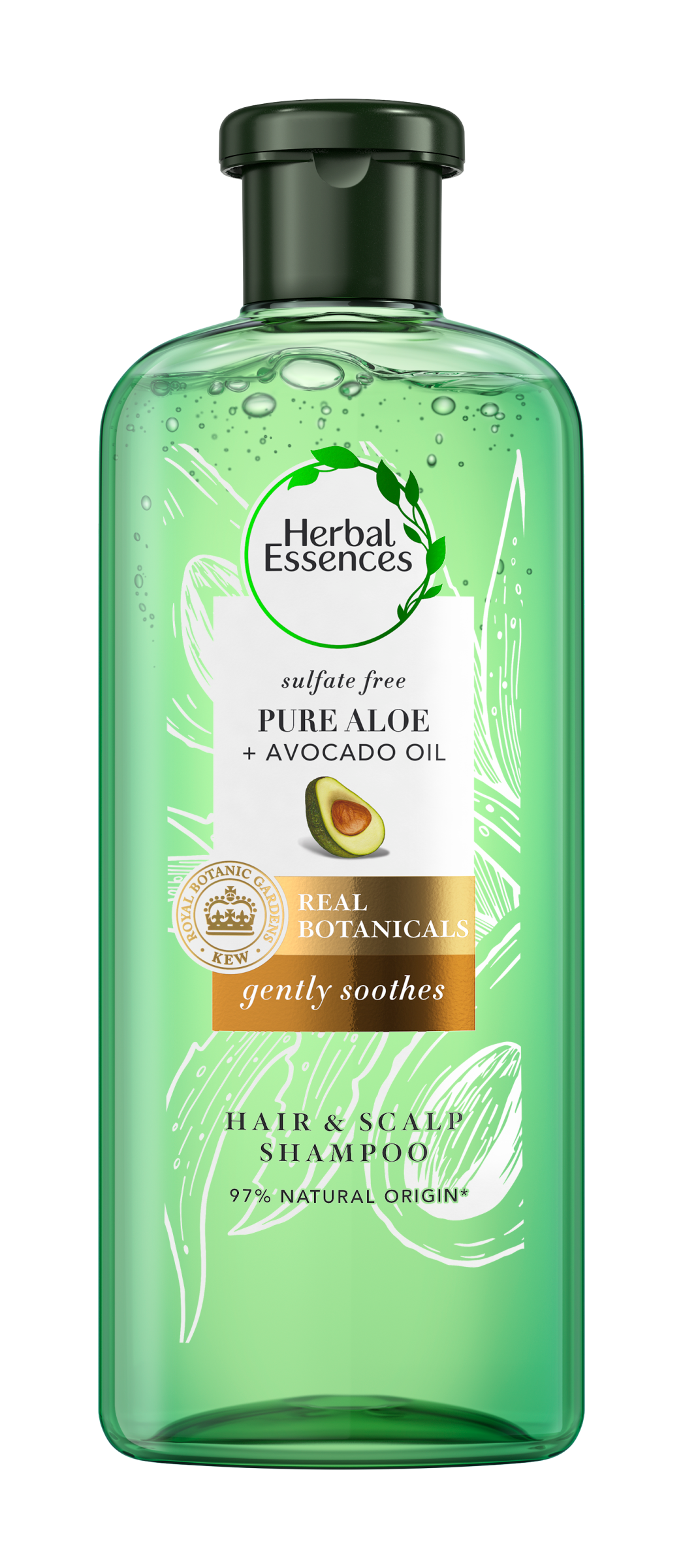 Zklidňující složení šamponu Herbal Essences s ryzí aloe a avokádovým olejem zanechává pokožku vaší hlavy zklidněnou a vlasy vyživené od kořínků až ke konečkům. A protože si zasloužíte to nejlepší, naše skutečně přírodní materiály vybírají odborníci Královských botanických zahrad Kew. Použití obchodní značky Kew na základě licence od RGB Kew Enterprises Ltd.