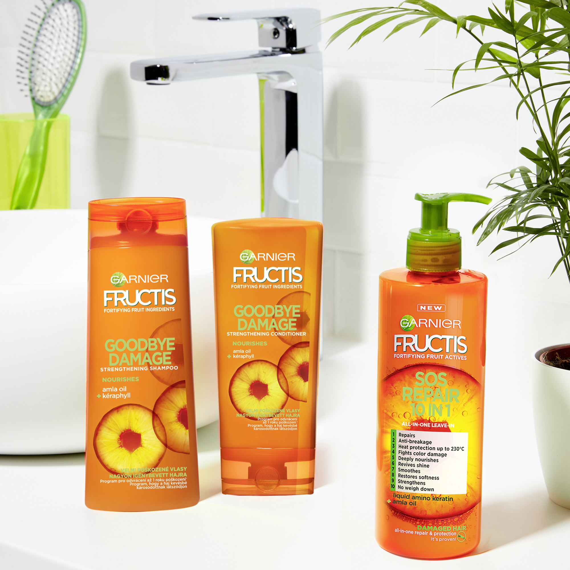 Intenzivní výživa a posilnění vlasového vlákna. Posilující šampon pro poškozené vlasy (1) s technologií keratinového komplexu. Technologie s 3 % keratinového komplexu a s marulovým olejem. Aktivně proniká až do hloubky 10 vrstev. Intenzivně vyživuje a posiluje vlasové vlákno. Doplňuje keratin pro až 10x méně poškozené vlasy (2) a zanechává je až 10x odolnější (3) a až 7x jemnější na dotek (4). Mimo jiné přináší až 2x více zacelené kutikuly (3).