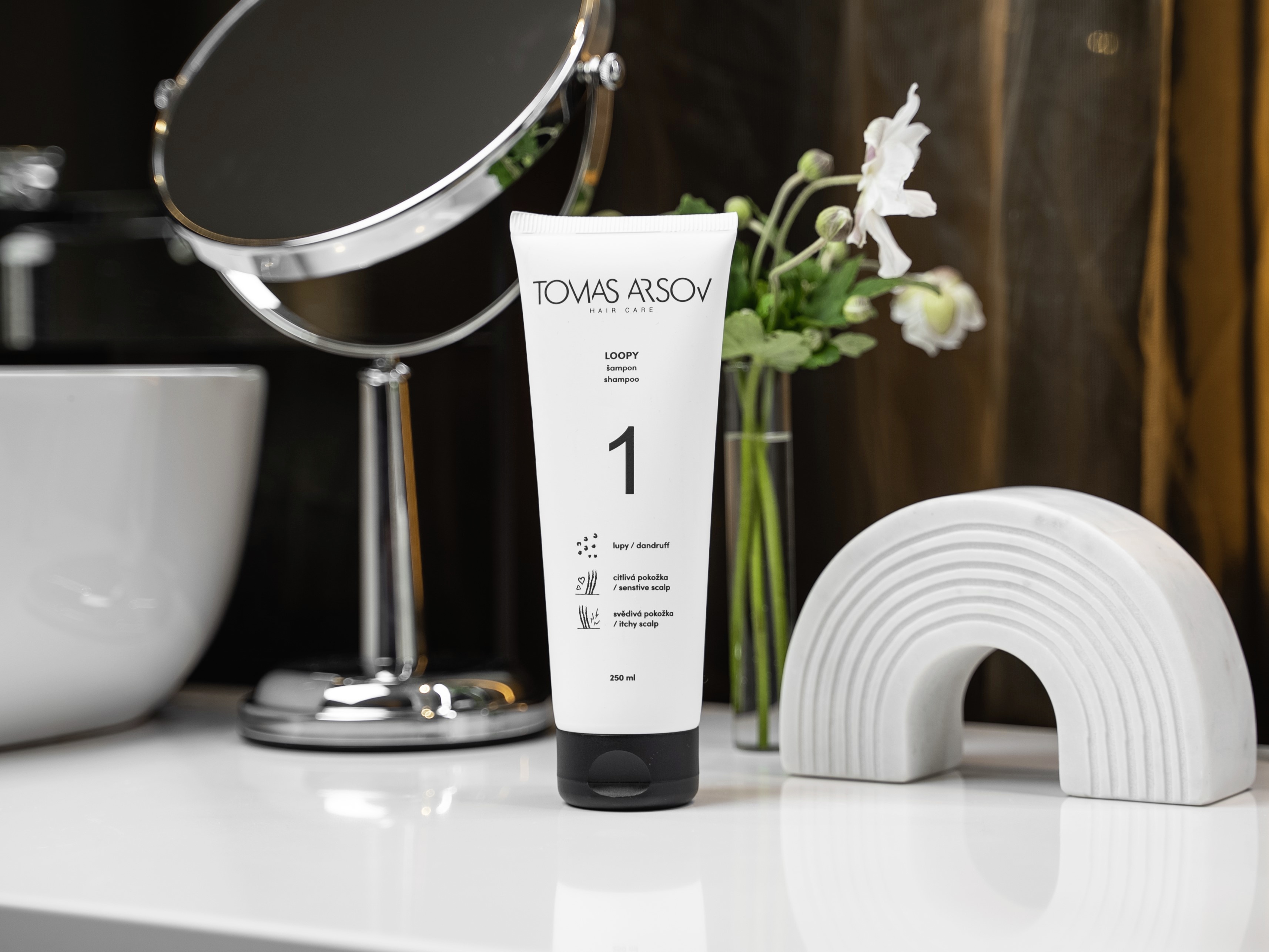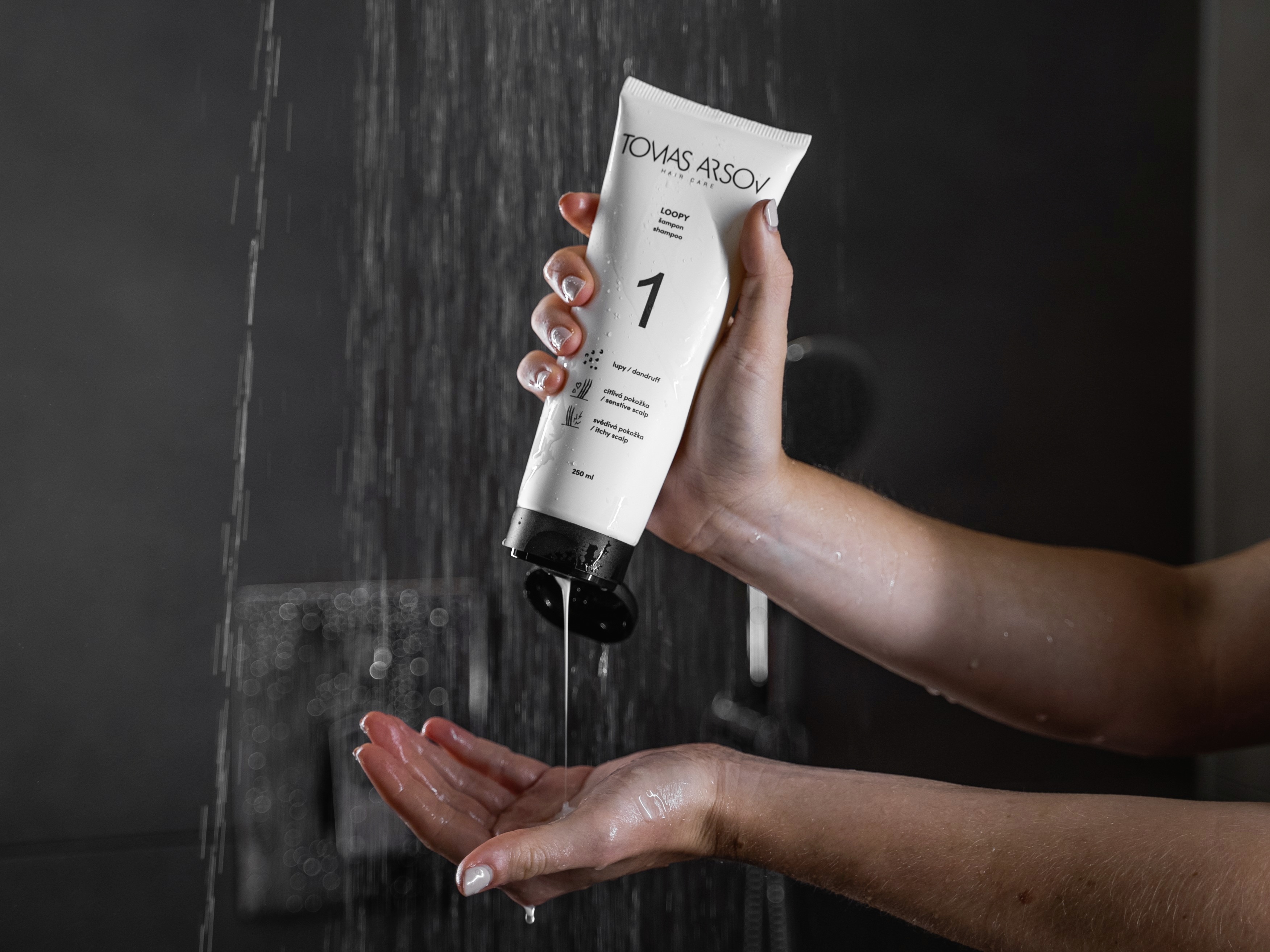 Šampon naneste na důkladně namočené vlasy, napěňte a nechte pár vteřin působit. Umyjte vlasy i pokožku hlavy a důkladně opláchněte vodou. Celý proces zopakujte ještě jednou. Následně vlasy jemně vyždímejte rukama a pak ještě ručníkem. V dalším kroku použijte kondicionér z řady TOMAS ARSOV podle typu vašich vlasů.