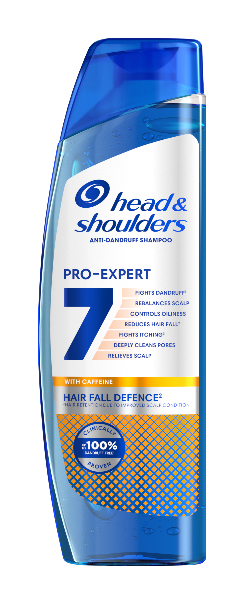 Šampon proti lupům Head & Shoulders Pro-Expert 7 Hair Fall Defence je obohacený o kofein má doposud nejvyšší obsah účinných látek proti lupům od Head & Shoulders. Jeho složení bojuje proti 7 problémům pokožky hlavy a poskytuje jí kompletní ochranu. Klinické testy prokázaly, že zlepšuje hydrataci vlasů po dobu 8 týdnů. Pomáhá čistit pokožku hlavy a obnovovat její rovnováhu. Pro dosažení maximálních výsledků používejte při každém mytí.