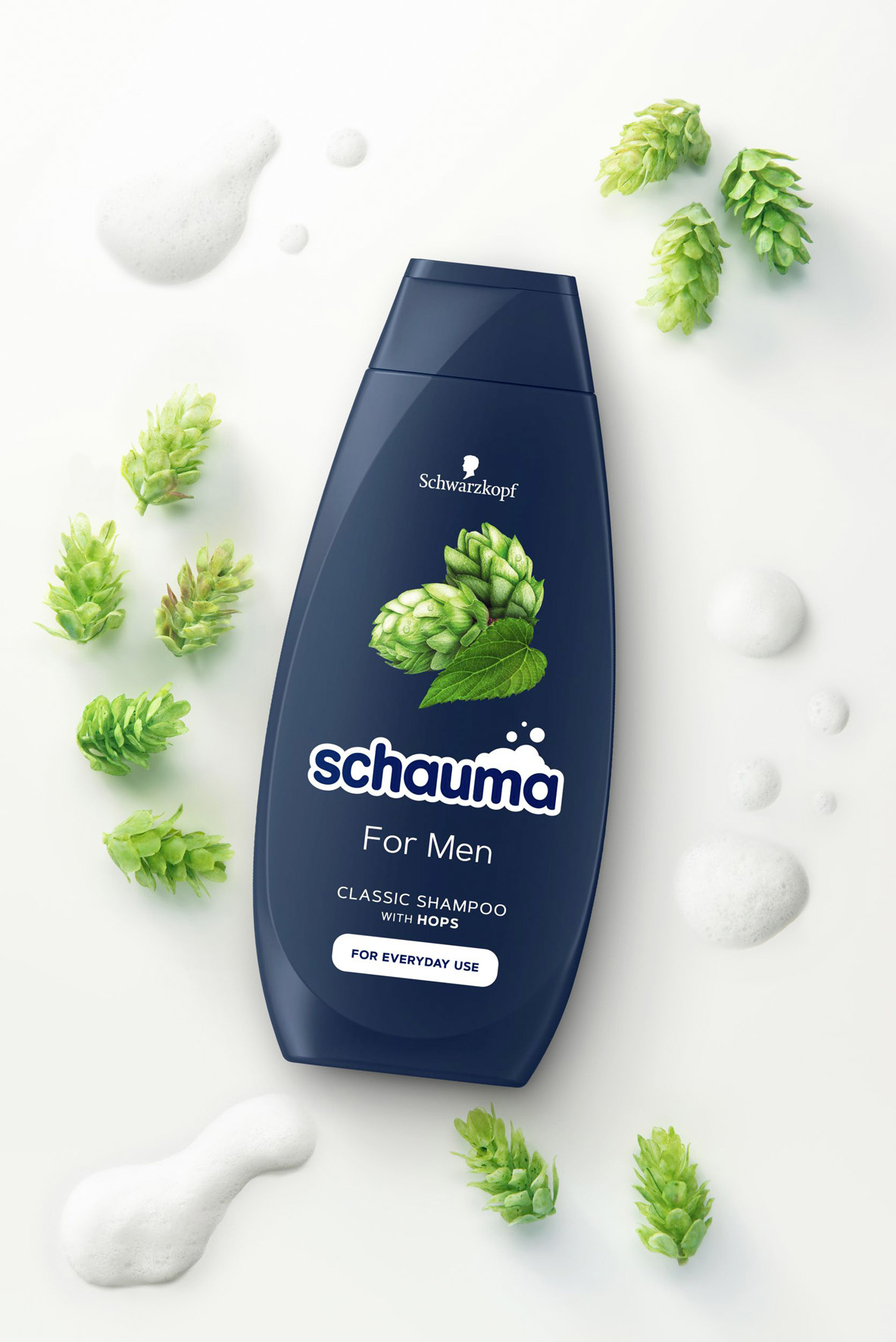 Schauma classic šampon For Men s obsahem chmelu, pro každodenní použití. Ahoj! Jsem tvůj šampon a tohle pro tebe dělám: Posiluji tvé vlasy od kořínků až ke konečkům a zároveň dodávám vlasové struktuře péče pro přirozeně vypadající objem. Užij si mé veganské složení* s extraktem z chmelu. Jsem znovu použitelný: Tělo mé láhve je vyrobeno z 50 % z recyklovaného plastu, zatímco mé víčko je vyrobeno z 25 % z recyklovaného plastu. Nezapomeň mě recyklovat! *Bez obsahu živočišných složek