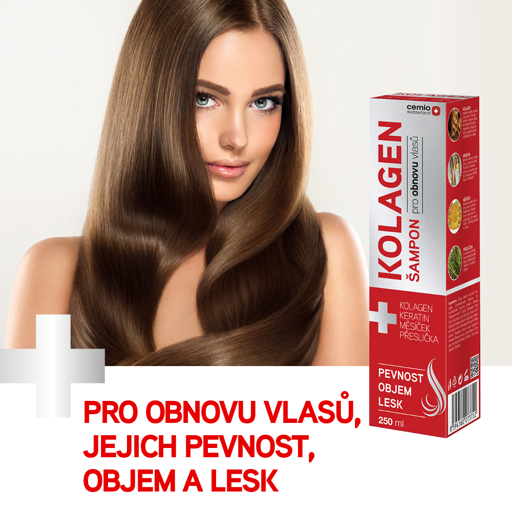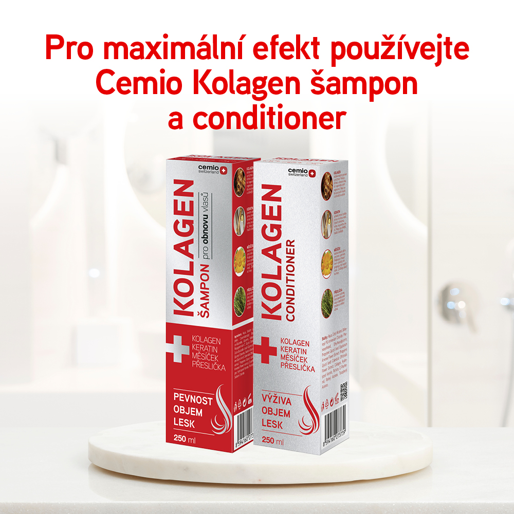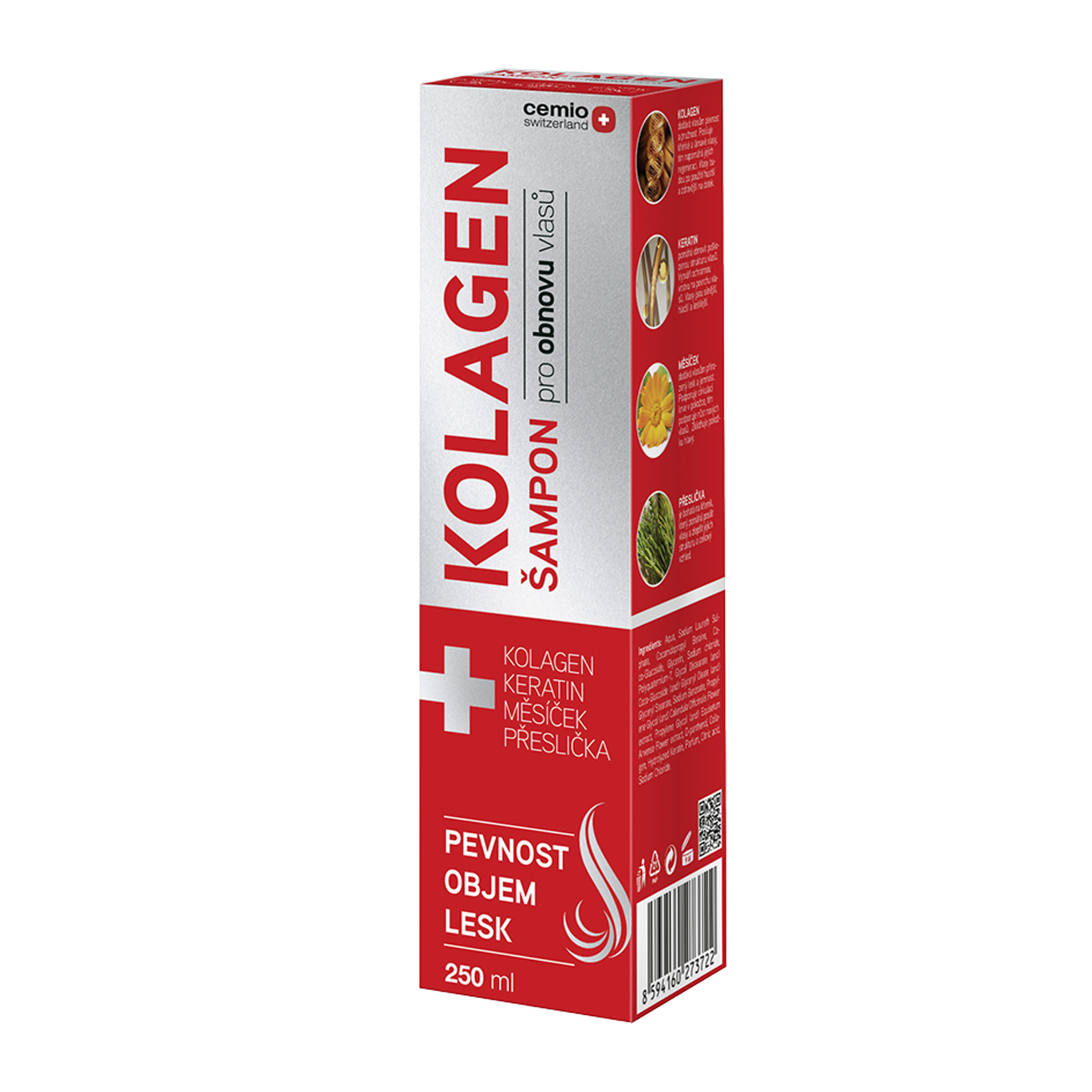 Cemio Kolagen šampon je určený pro oslabené, lámavé nebo poškozené vlasy. Obsahuje kolagen, keratin, měsíček a přesličku – kombinaci přírodních a funkčních látek, které vlasy intenzivně regenerují, posilují a zanechávají vlasy hebké a lesklé. Jeho jemné složení bez silikonů, parabenů a barviv je vhodné i pro citlivou pokožku hlavy.