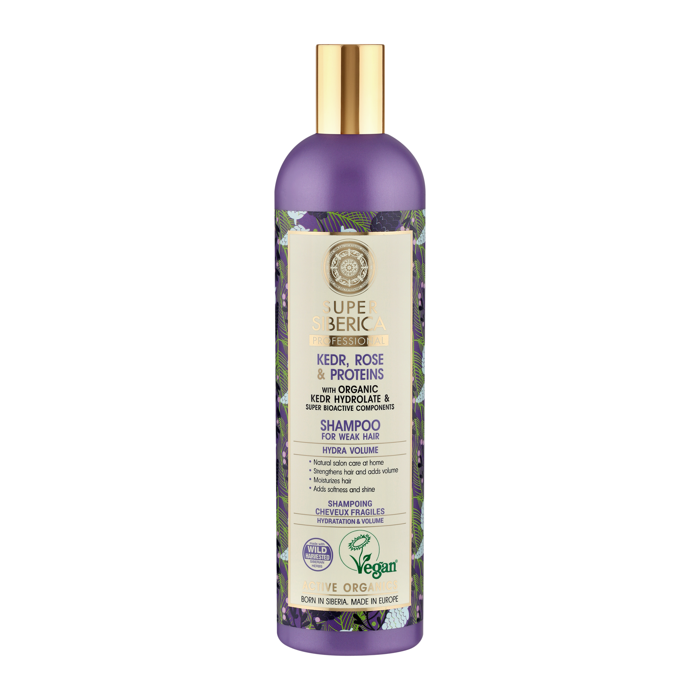 Profesionální šampon na bázi organického hydrolátu ze sibiřského cedru jemně čistí a proměňuje oslabené vlasy, nabíjí je energií a silou, dodává jim od kořenů elastický objem a luxusní lesk. Sibiřský cedr je legendární strom Sibiře, který má výjimečné regenerační vlastnosti. Organický hydrolát ze sibiřského cedru obsahuje vitamíny A, B, D a E, cenné mastné kyseliny a rostlinné bílkoviny. Zvlhčuje a vyživuje oslabené a křehké vlasy, naplňuje je neuvěřitelnou silou a objemem, dodává pružnost a lesk, stimuluje růst vlasů. Daurská růže roste v ostrém kontinentálním podnebí Zabajkalska a hromadí v sobě obrovské zásoby látek, které jsou vhodné pro vlasy. Organický olej z daurské růže dodává vlasům pružnost a vyhlazuje je po celé délce, usnadňuje česání. Organický olej z divokého jalovce je bohatý na Omega 3 a Omega 6 mastné kyseliny, vyživuje vlasy, dodává jim jemnost a přirozený jas. Fytoncidy, které obsahuje, udržují svěžest vlasů a přirozenou rovnováhu pokožky hlavy. Provitamin B5 zpevňuje a posiluje vlasy, naplňuje je neuvěřitelnou silou a objemem. Kyselina hyaluronová hydratuje vlasy do hloubky, dodává jim hladkost a zrcadlový lesk.
