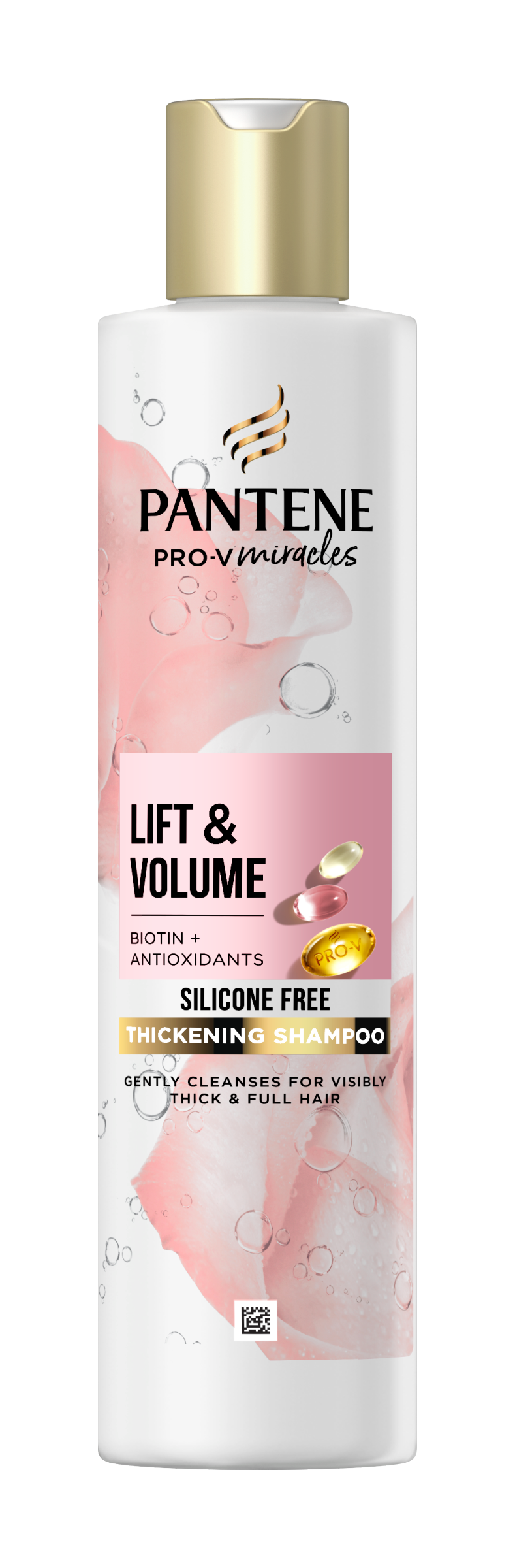 Složení tohoto zázračného šamponu značky Pantene na zhoustnutí vlasů je obohaceno o biotin, antioxidanty a nejvyšší koncentraci Pro-V, které pomáhají posilovat (odolnost proti poškození způsobenému úpravou účesu) slabé, zplihlé vlasy. Vlasy jsou viditelně silnější a plnější, a to už po prvním použití. Tento šampon bez silikonu obsahuje 3x více PRO-V než šampon Pantene Repair & Protect. Je vhodný pro každodenní použití. Pro dosažení nejlepších výsledků používejte kompletní péči o vlasy Lift'N'Volume: šampon, kondicionér, a vlasový olej.