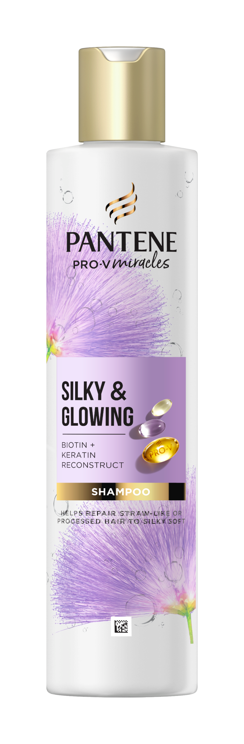 Sníte o tom, jak si prsty projíždíte hedvábně hebké vlasy? Vraťte mdlým, odbarveným vlasům pocit života a lesk se šamponem Pantene Silky & Glowing. Naše složení s biotinem, keratinovou obnovou a nejvyšší koncentrací Pro-V je vyvinuto tak, aby pomáhalo obnovovat namáhané vlasy a zanechávalo je neodolatelně hebké jako hedvábí. Působí na vlasy připomínající slámu díky speciální směsi živin. Řada Silky & Glowing je vhodná pro každodenní používání a nabízí ideální péči pro odbarvené a melírované vlasy. Prohlédněte si celou řadu vlasových produktů Silky & Glowing, včetně kondicionéru, a masky na vlasy.