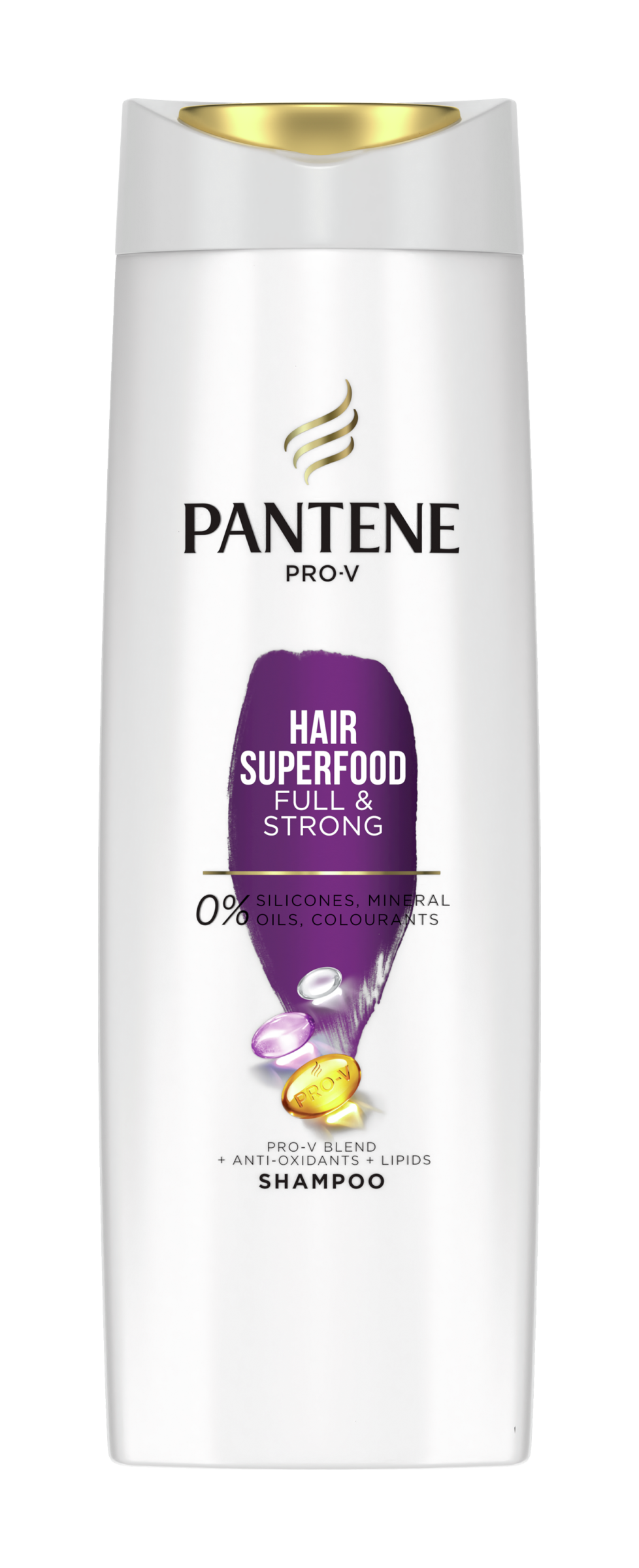 Šampon Pantene Pro-V Superfood vlasy šetrně myje, a přitom jim dodává vyživující látky ze složení Pro-V. Složení Pro-V: Pomáhá okamžitě odstraňovat známky poškození. Antioxidanty: Chrání vlasy před volnými radikály a pomáhají je tak chránit před lámavostí. Lipidy: Doplňují přirozeně se vyskytující lipidy a pomáhají udržet strukturální celistvost vlasů.