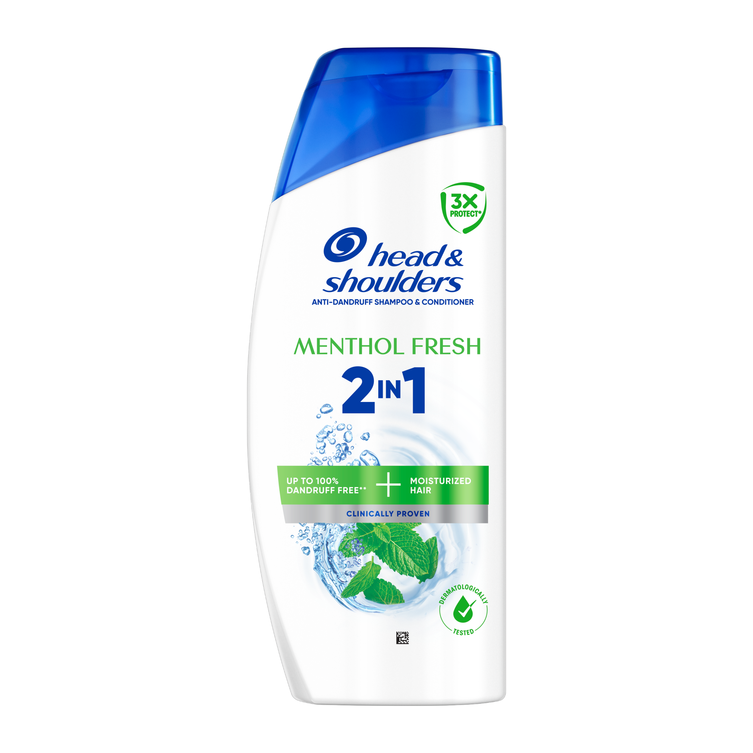 Head & Shoulders 2in1 Menthol šampon proti lupům pro všechny typy vlasů a všechny typy pokožky hlavy. Působí i proti odolným lupům. Šampon pro každodenní použití pro muže i ženy se složením Microbiome Balance, které se zaměřuje na hlavní příčinu lupů a udržuje vyvážený mikrobiom pokožky hlavy. Působí proti viditelným i neviditelným lupům tím, že uvolňuje 2x více ochranných složek, které se dostávají do pórů a brání návratu odolných lupů. Tento šampon 2v1 obsahuje o 25 % více ošetřujících složek než běžný šampon Head & Shoulders, je klinicky ověřený, dermatologicky testovaný a má vyvážené pH.