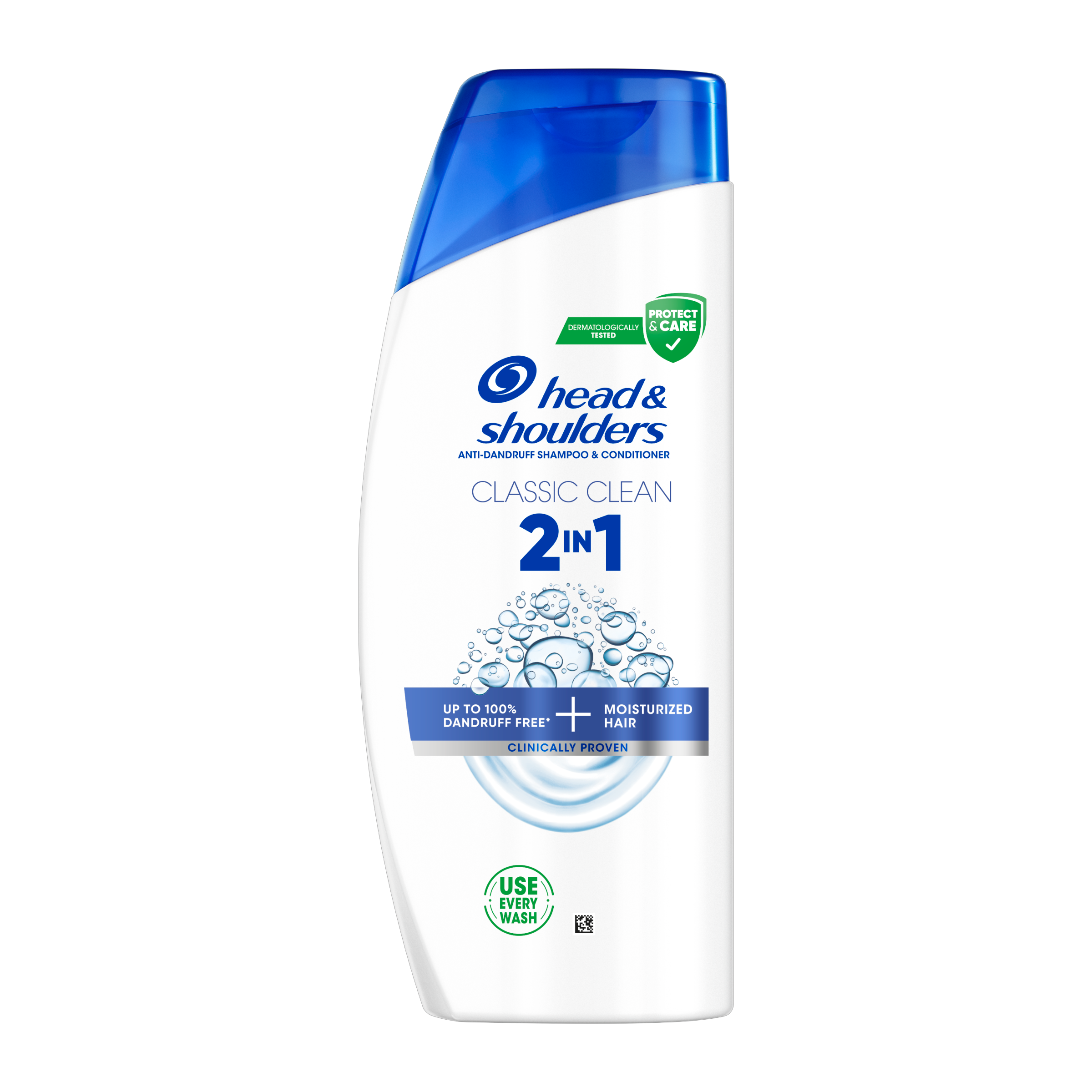 Head & Shoulders 2in1 Classic Clean šampon proti lupům pro všechny typy vlasů a všechny typy pokožky hlavy. Působí i proti odolným lupům. Šampon pro každodenní použití pro muže i ženy se složením Microbiome Balance, které se zaměřuje na hlavní příčinu lupů a udržuje vyvážený mikrobiom pokožky hlavy. Působí proti viditelným i neviditelným lupům tím, že uvolňuje 2x více ochranných složek, které se dostávají do pórů a brání návratu odolných lupů. Tento šampon 2v1 obsahuje o 25 % více ošetřujících složek než běžný šampon Head & Shoulders, je klinicky ověřený, dermatologicky testovaný a má vyvážené pH.