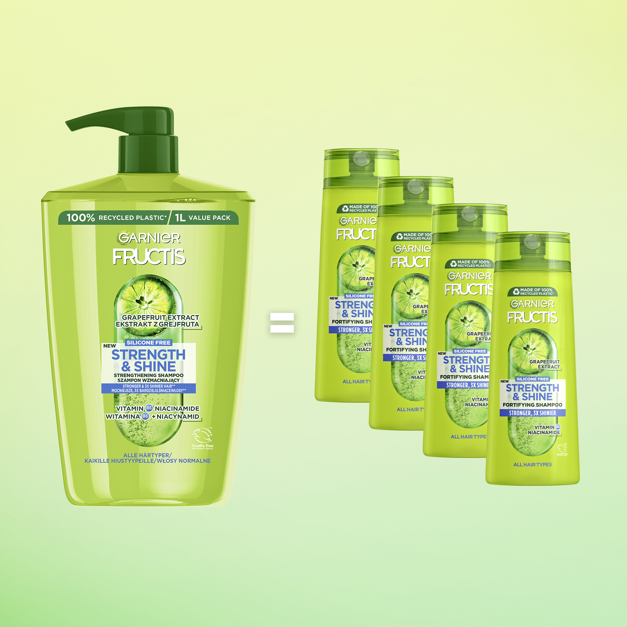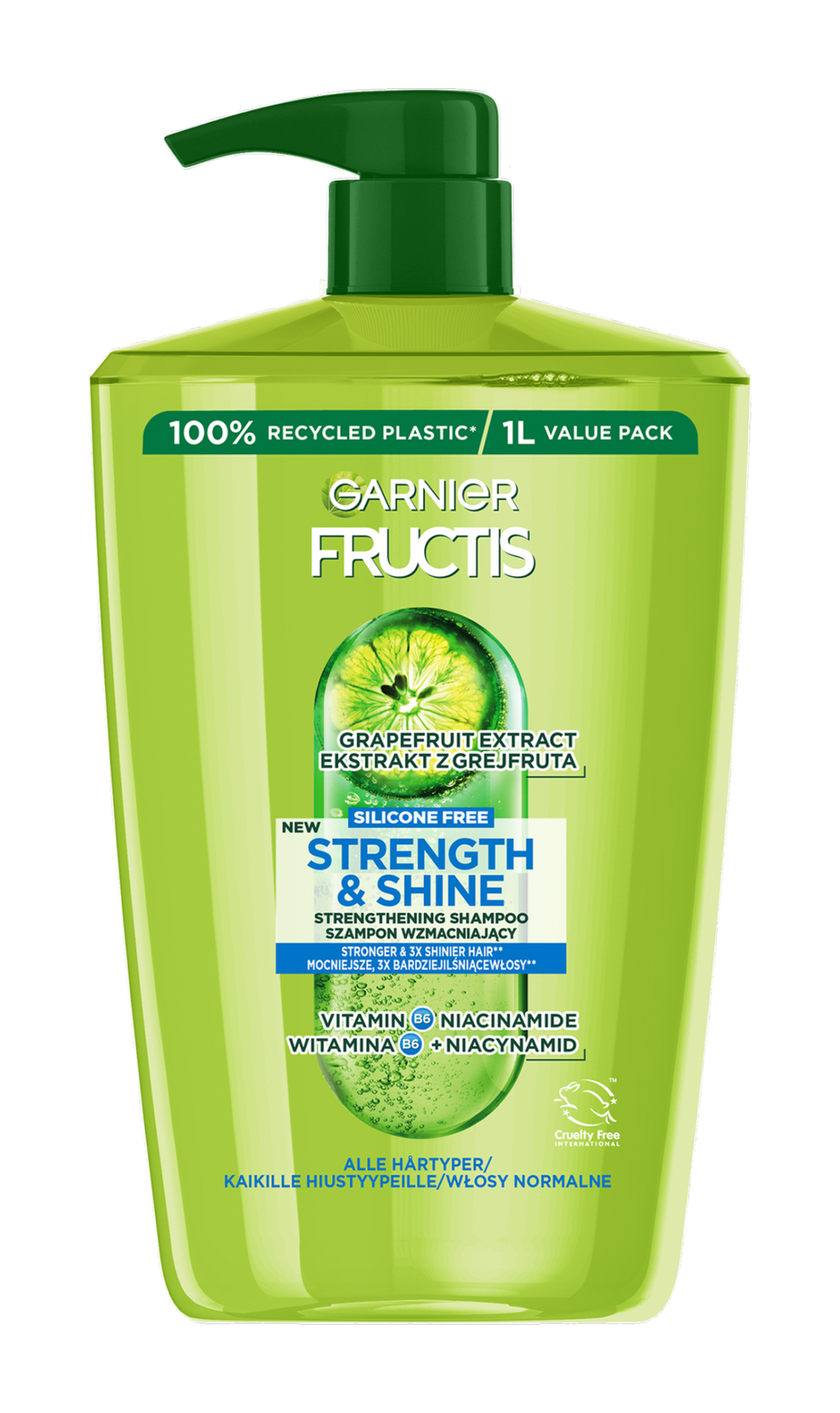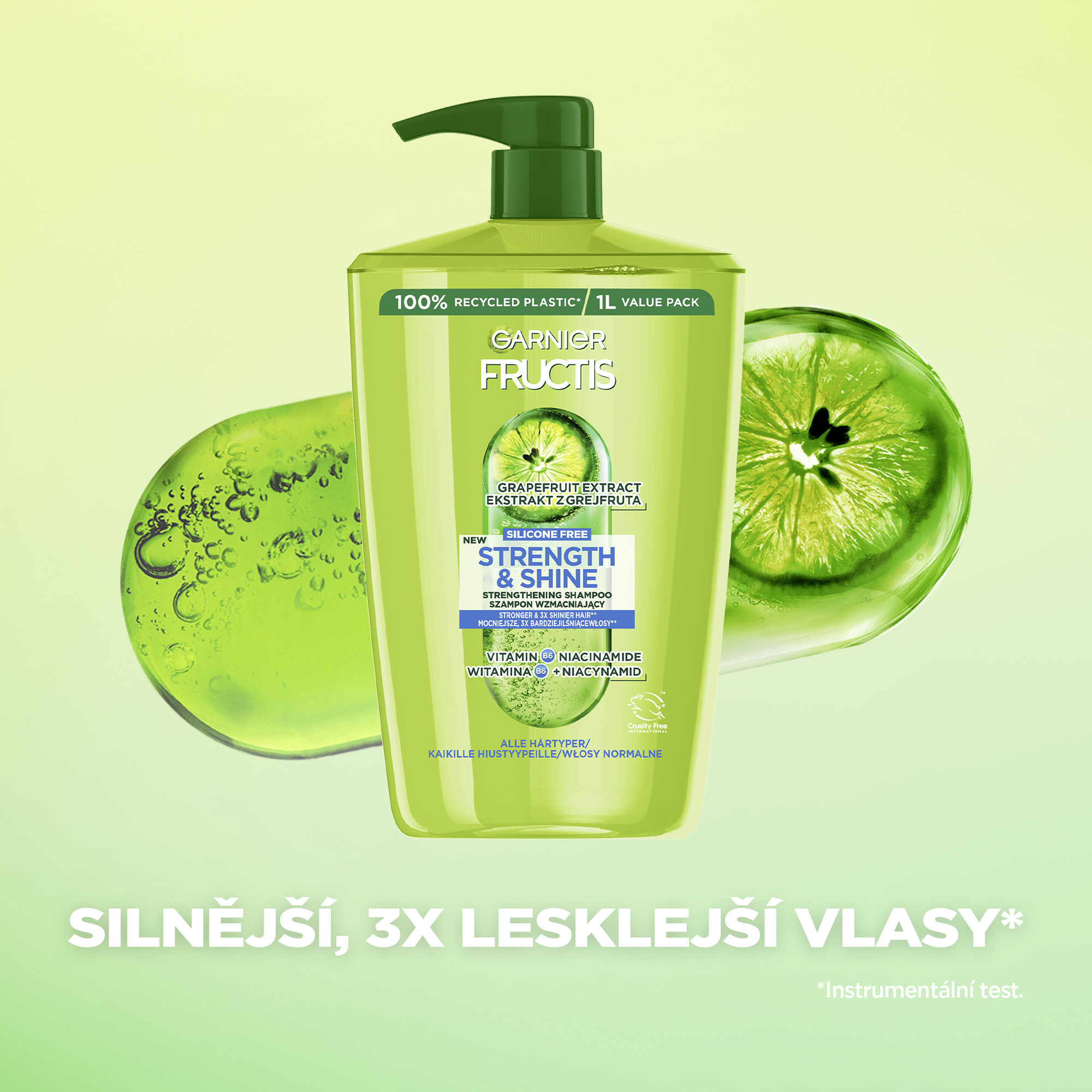 Posilující šampon pro všechny typy vlasů bohacený o vitamin B6 posiluje vlasové vlákno a dodává vlasům zdravější vzhled + niacimid je zbavuje nadbytečné mastnoty. Složení obohacené o výtažek z grapefruituzanechává vlasy silnější a až 3x lesklejší (1). (1) Instrumentální test