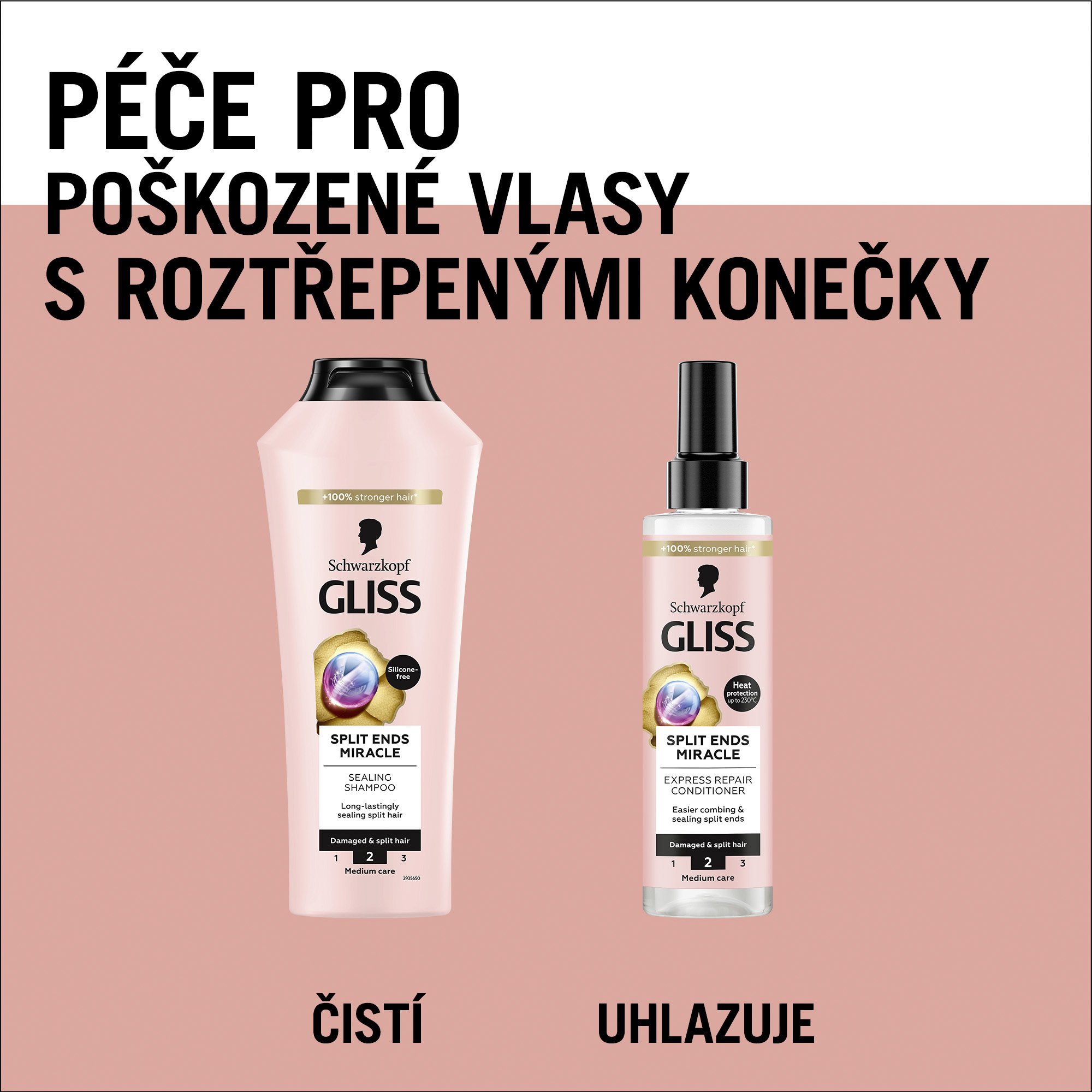 - Obsah balení: Schwarzkopf Gliss zacelující šampon Split Ends Miracle 250ml s úrovní střední péče pro roztřepené a poškozené vlasy