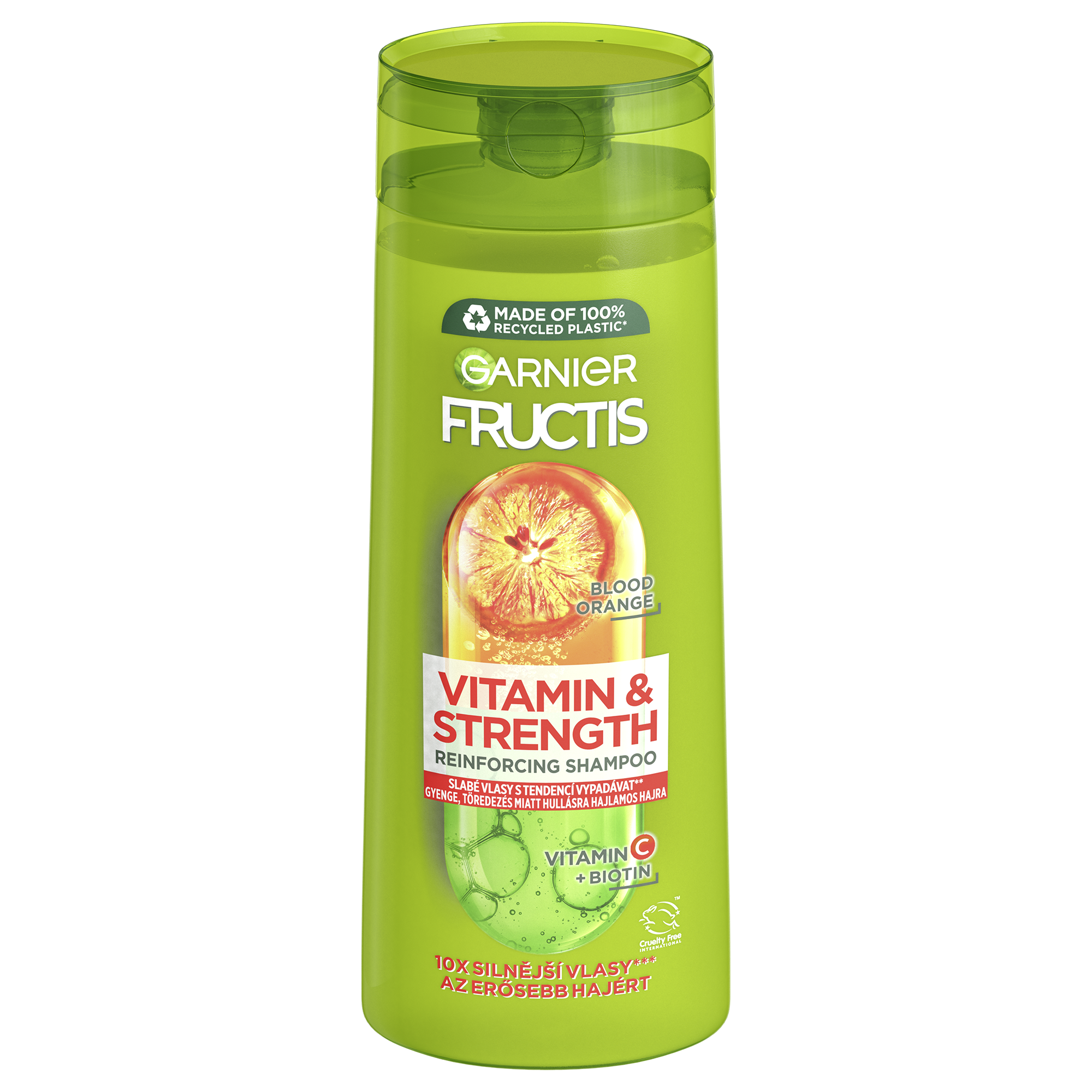 Šampon obohacený i biotin, vitamin C*** a červený pomeranč obaluje vlasové vlákno a tím ho posiluje a snižuje vypadávání vlasů**. Pro snadno rozčesatelné a viditelně zdravější vlasy. **kvůli lámavosti