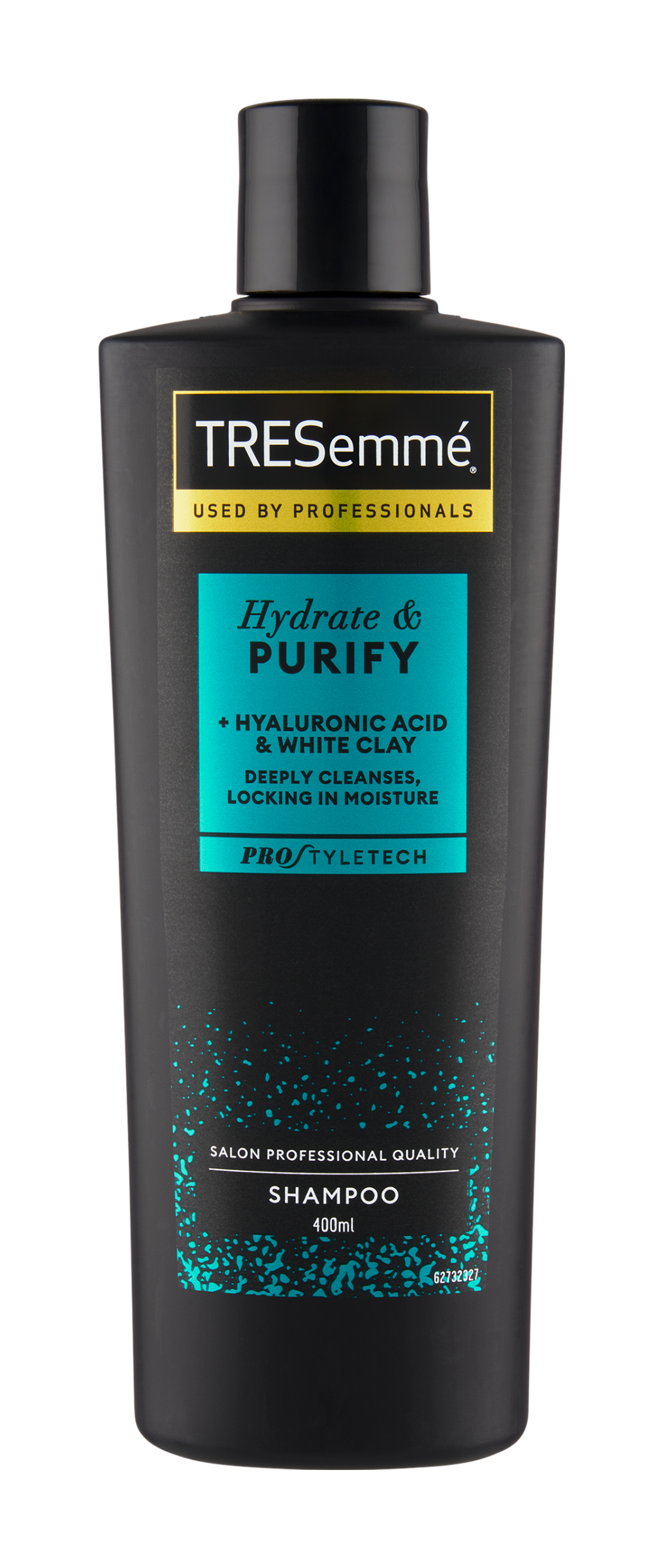 Chcete po každém mytí zažívat pocit důkladně vyčištěných, ale zároveň krásně vyživených a hydratovaných vlasů, který vám umožní začít den s novou dávkou sebevědomí? Ten pocit teď můžete snadno získat bez toho, aniž byste museli navštívit profesionální salon. Stačí vyzkoušet naši řadu od TRESemmé Hydrate & Purify, která byla speciálně vyvinuta pro mastné vlasy se sklonem k vysušeným konečkům. Obsahuje vysoce účinnou kyselinu hyaluronovou a bílý jíl. Díky obsahu těchto dvou ingrediencí šampon vaše vlasy efektivně vyčistí a zároveň v nich uzavře vlhkost a hydratuje je. Profesionální Pro Style Technologie™, která byla vyvinuta našimi předními vědeckými experty, je založena na obsahu účinných aminokyselin a ceramidu a postará se jak o silnější a poddajnější vlasy, tak o uhlazenější účes. Vaše vlasy budou: