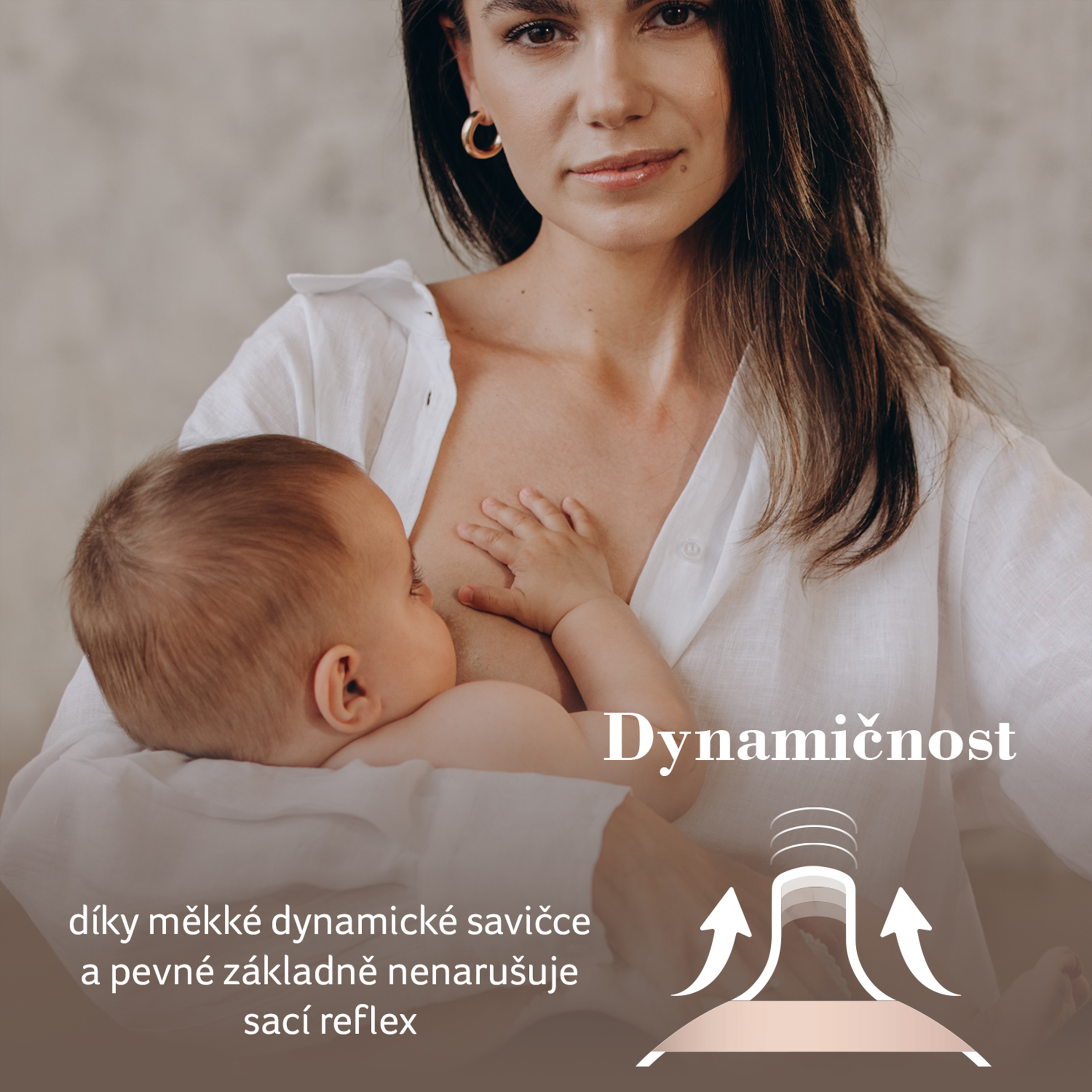 - Jemná dynamická savička - rozšiřuje se a stahuje se sacím reflexem dítěte.