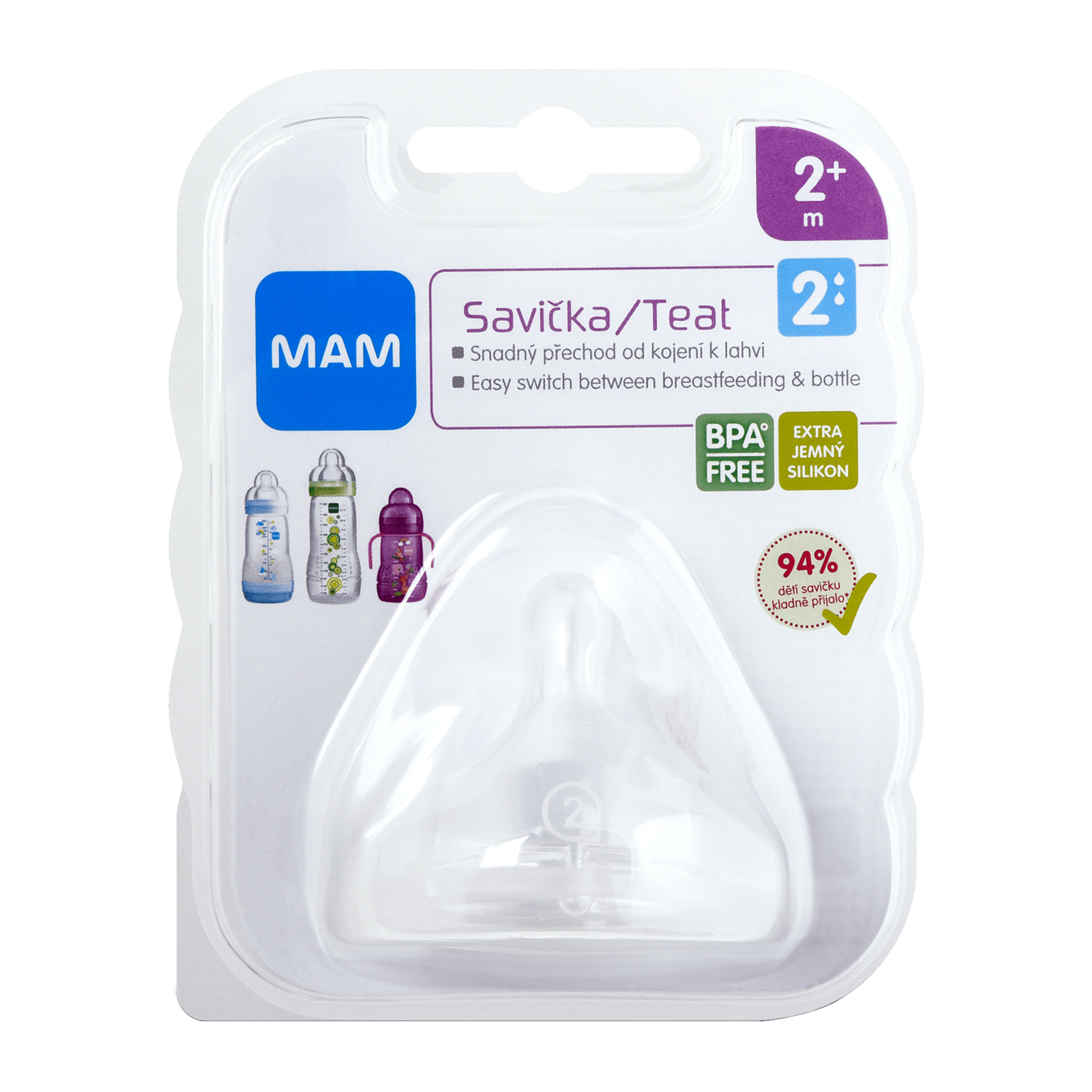 Ultra jemný silikon. Všechny produkty MAM jsou vyrobeny z materiálů neobsahujících bisfenol A.