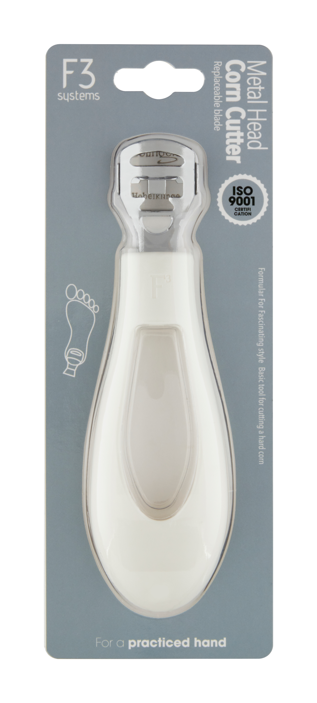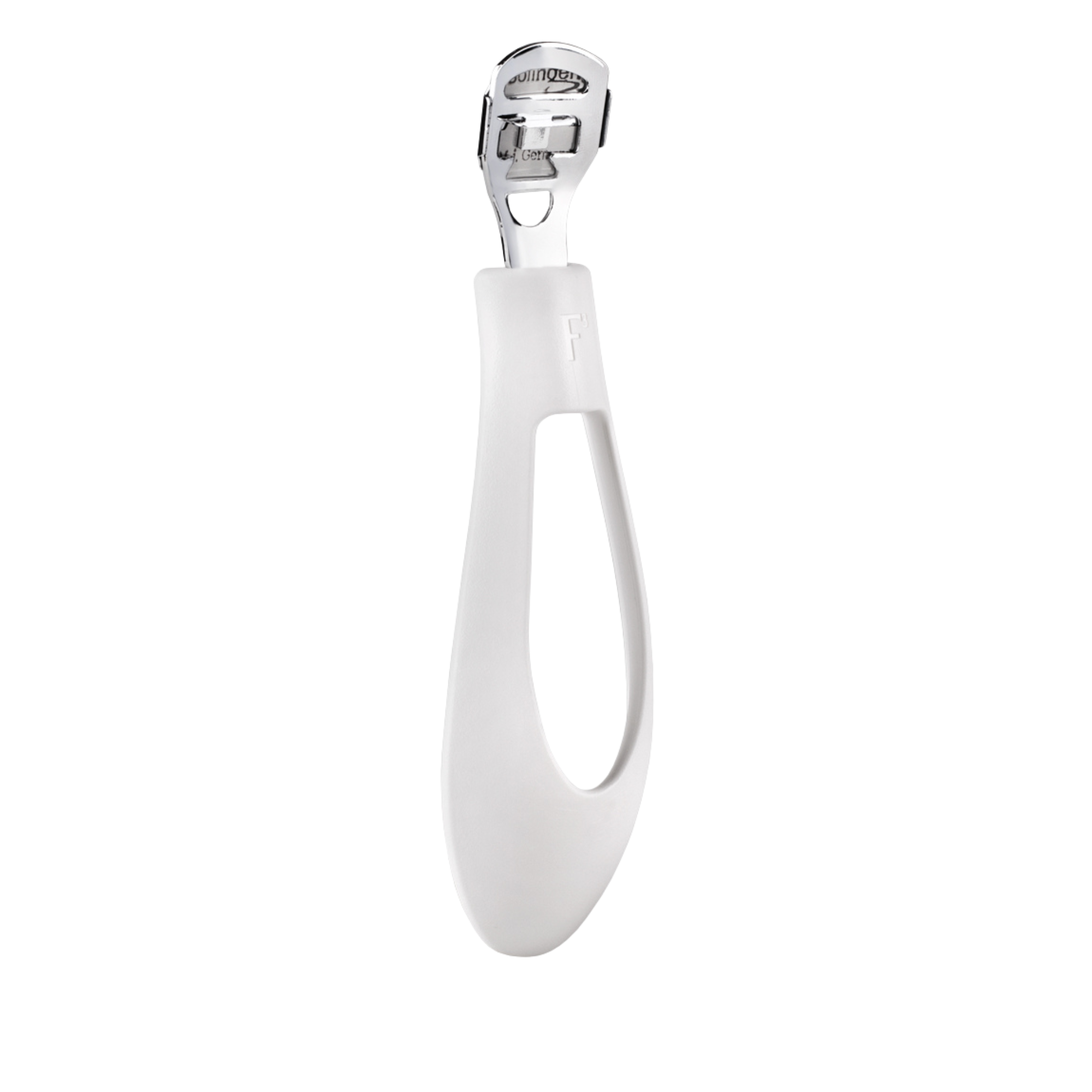 Základní nástroj pro odstranění ztvrdlé kůže. 1 Vyměnitelná žiletka 2 Rukojeť pro snadný úchop 3 Žiletka německé kvality 4 Bezpečný kryt ostří.