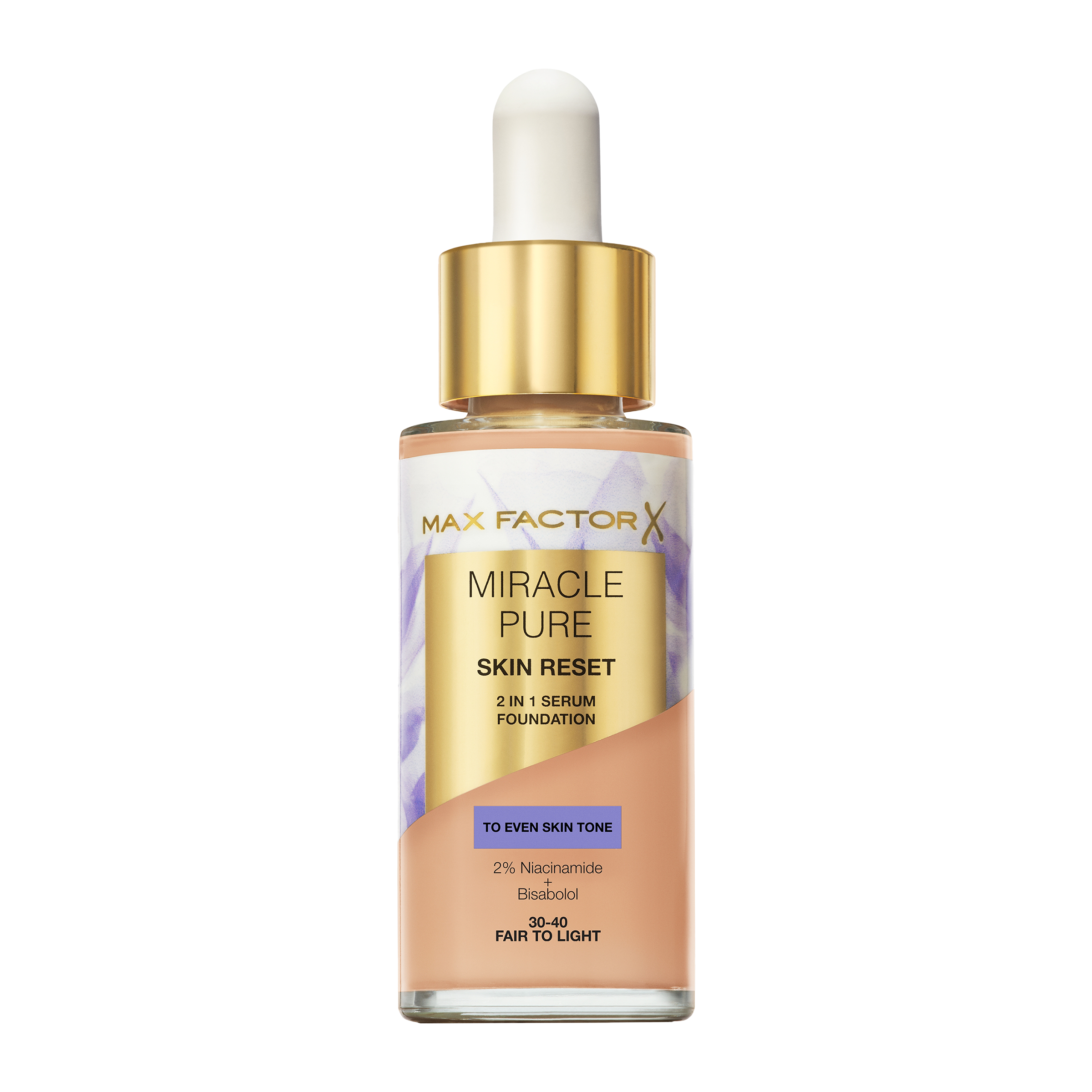 Představujeme nové tónující sérum Max Factor Skin-Restoring Serum Foundation. Jedinečné složení 2 v 1 poskytne dokonalé krytí pleti, kterou zároveň i regeneruje. Je navíc klinicky prokázáno, že vyrovnává tón pleti. Jeho lehká textura, která kombinuje sílu pečujícího séra se středním krytím make-upu, dodává pleti rovnoměrný, saténově matný finiš. Pečující složení obsahující niacinamid, bisabolol a výtažek z heřmánku redukuje tmavé skvrny a nerovnoměrný tón pleti a zajišťuje sjednocený a jasnější vzhled po celou dobu.