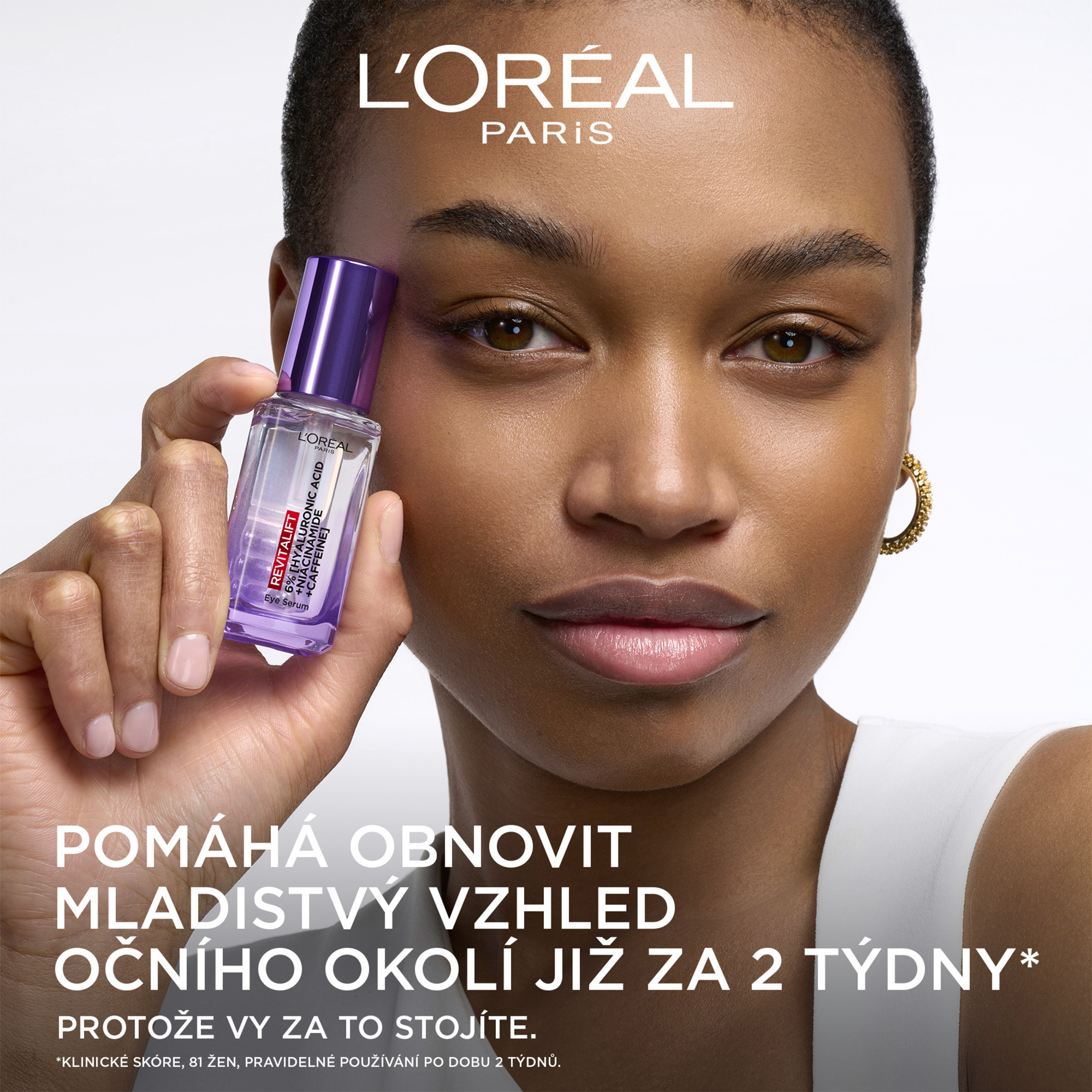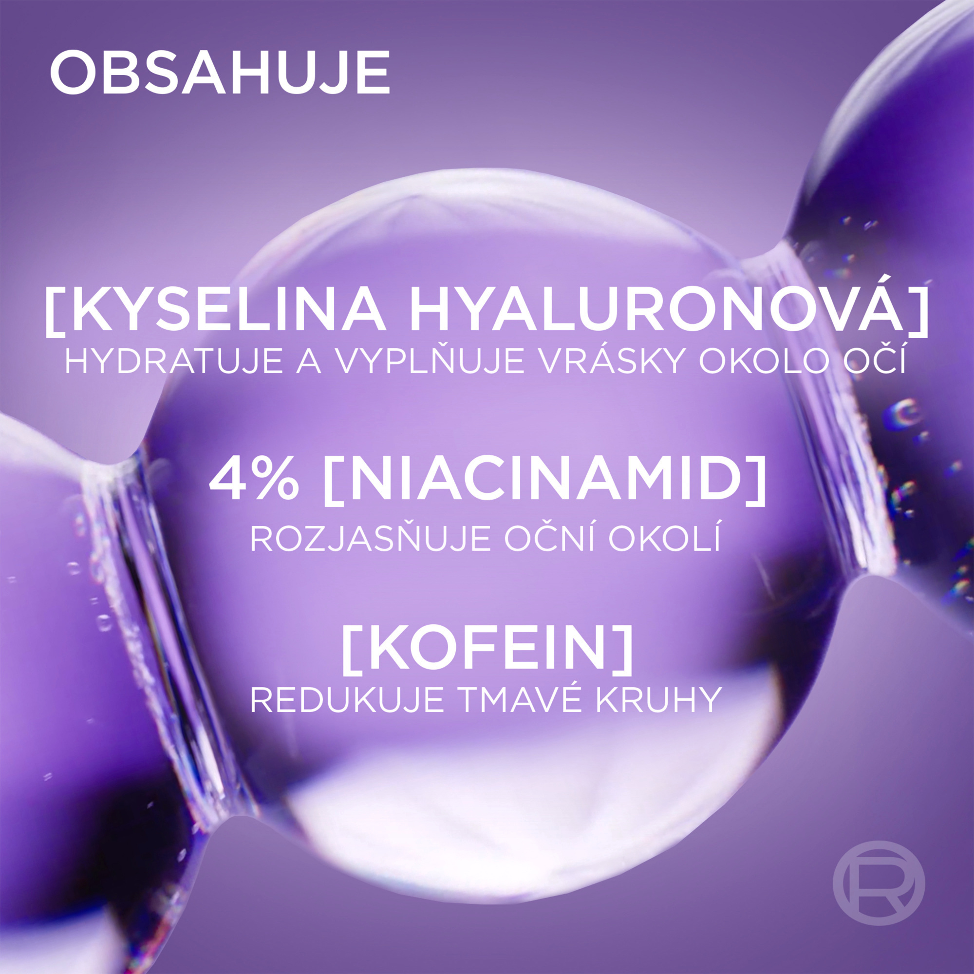 Naše první sérum zaměřené na oční okolí ČISTÁ KYSELINA HYALURONOVÁ Hloubkově hydratuje a vyplňuje i nejtenčí vrásky okolo očí. ČISTÝ KOFEIN Oživuje pleť, redukuje tmavé kruhy a váčky pod očima. NIACINAMID + VITAMÍN CG Pro účinné rozjasnění pleti.