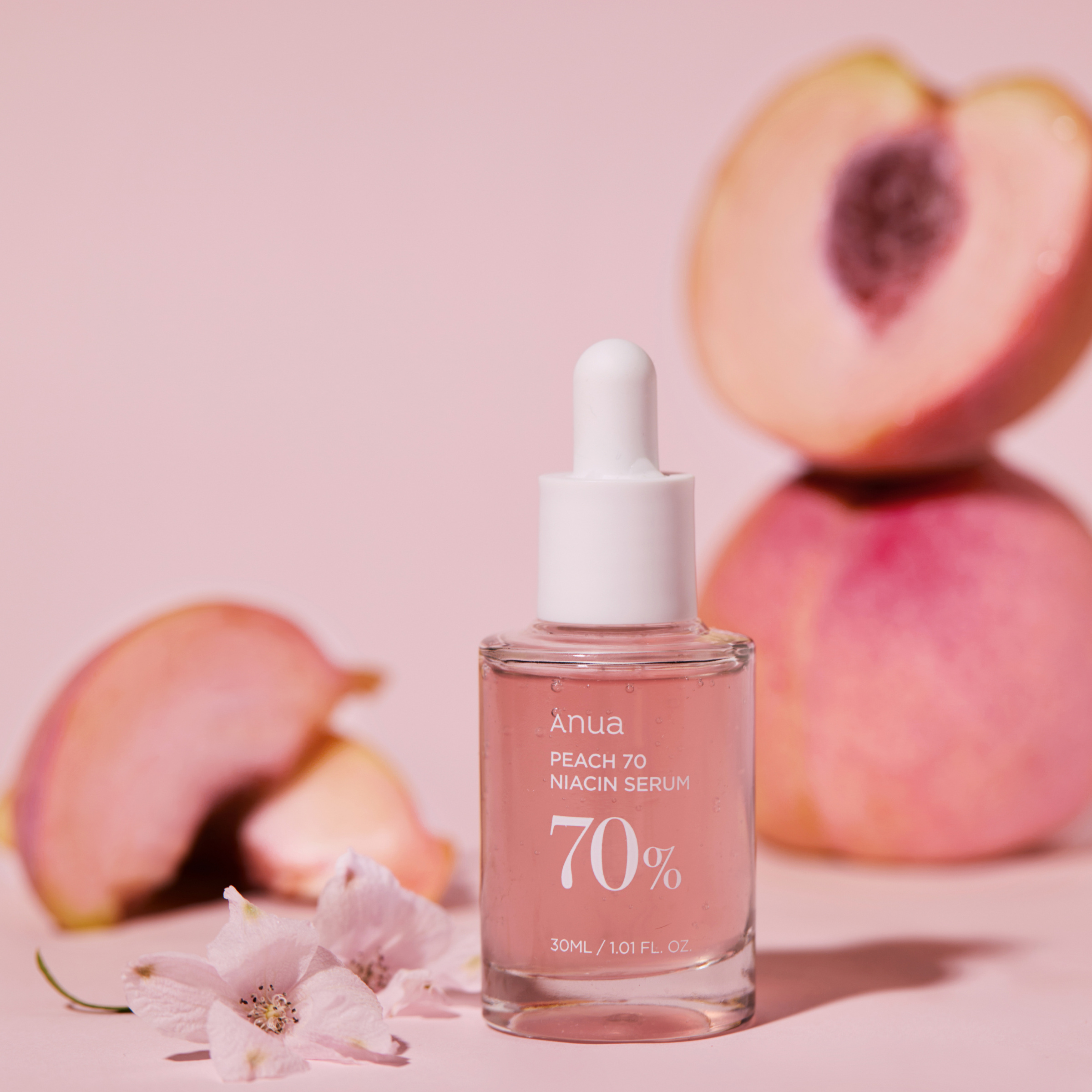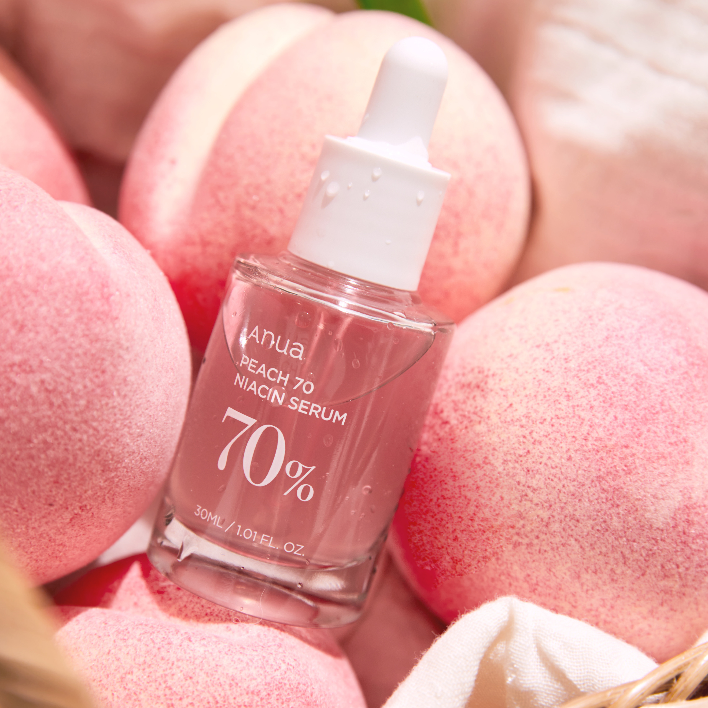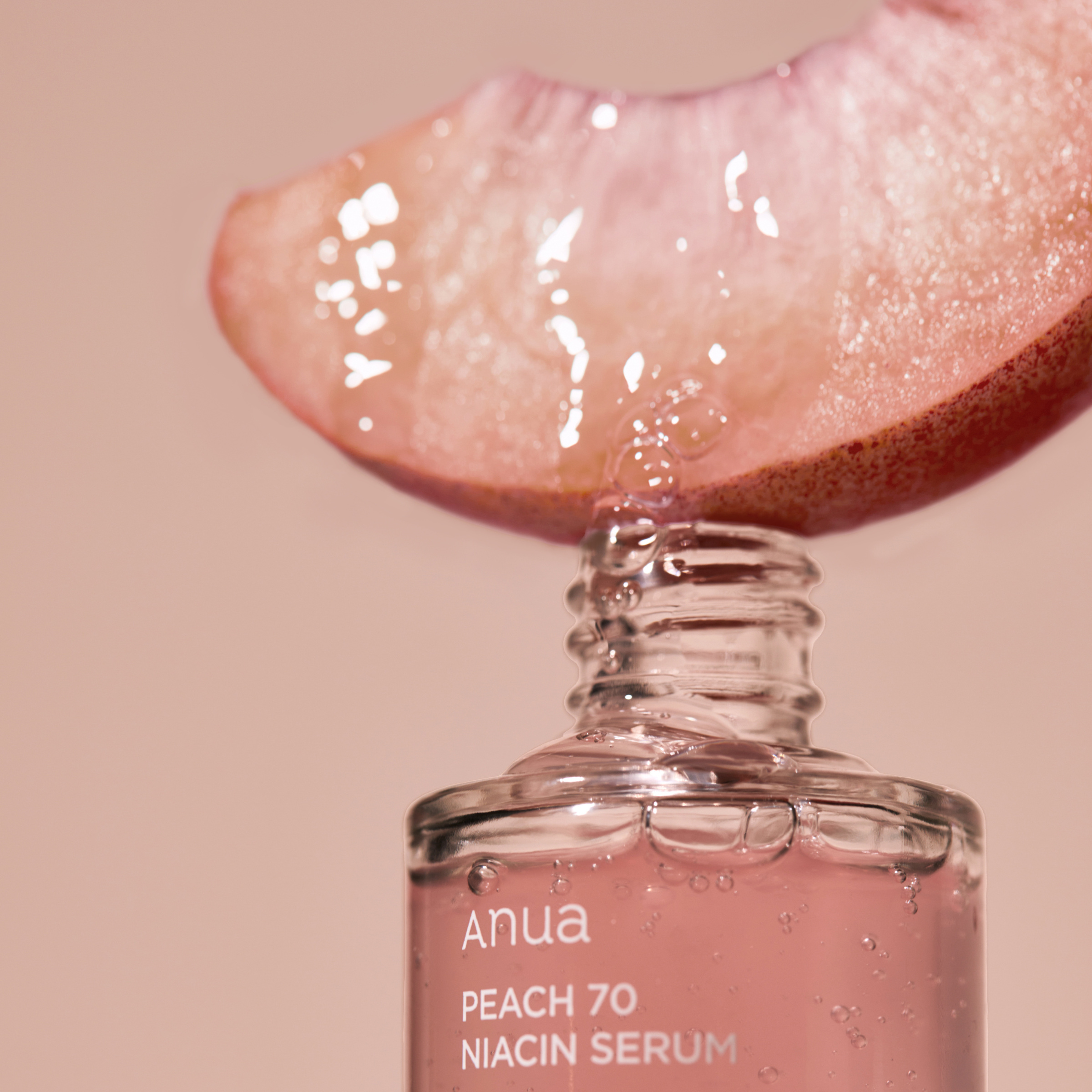 Sérum Anua Peach 70% Niacinamide s výtažky z broskve a niacinamidu rozjasňuje unavenou pleť a dodává jí zdravý vzhled. Niacinamid intenzivně hydratuje a zanechává pokožku svěží a zářivou.