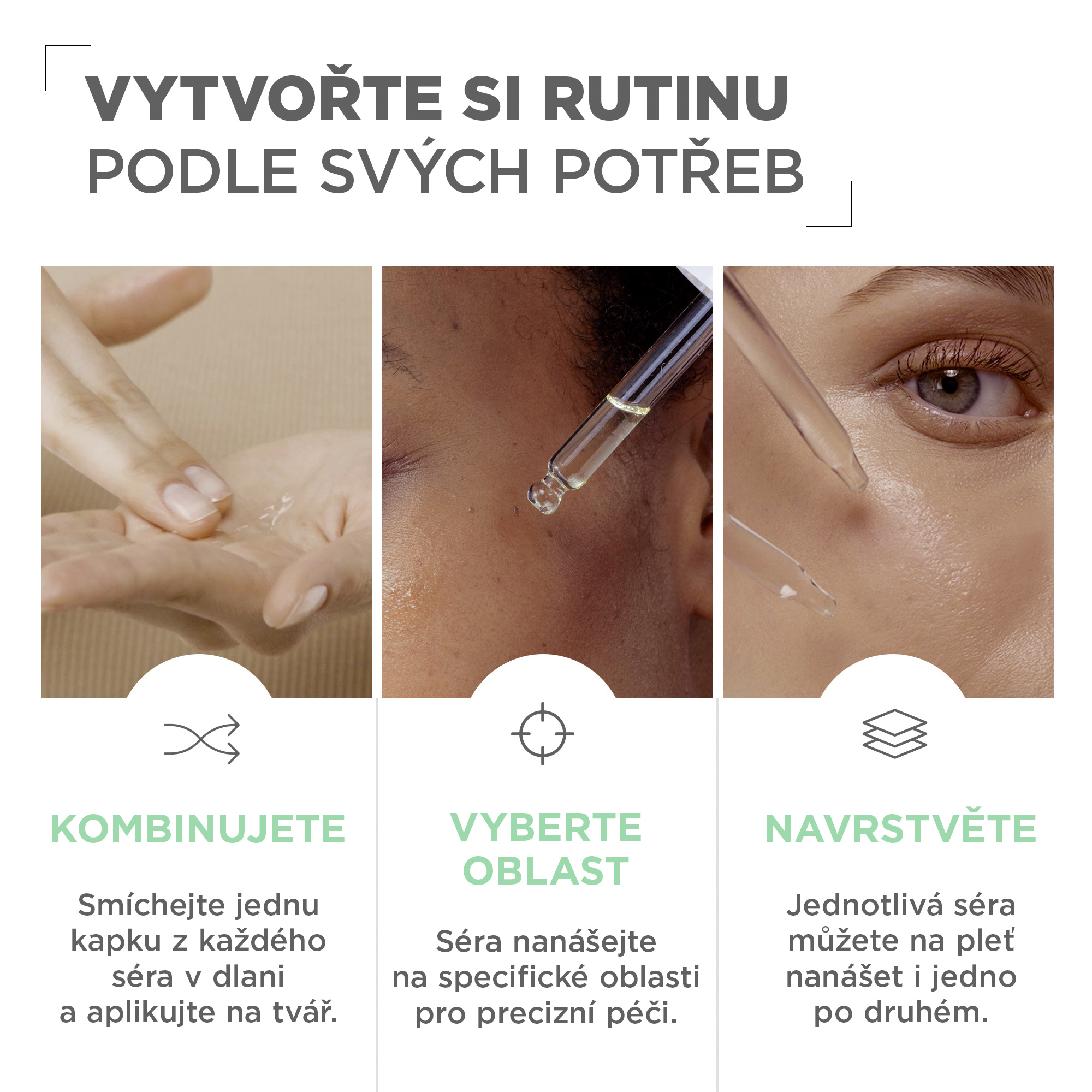 Sérum aplikujte po vyčištění pleti a před použitím hydratačního krému. Vyhněte se přímému kontaktu s očima.
