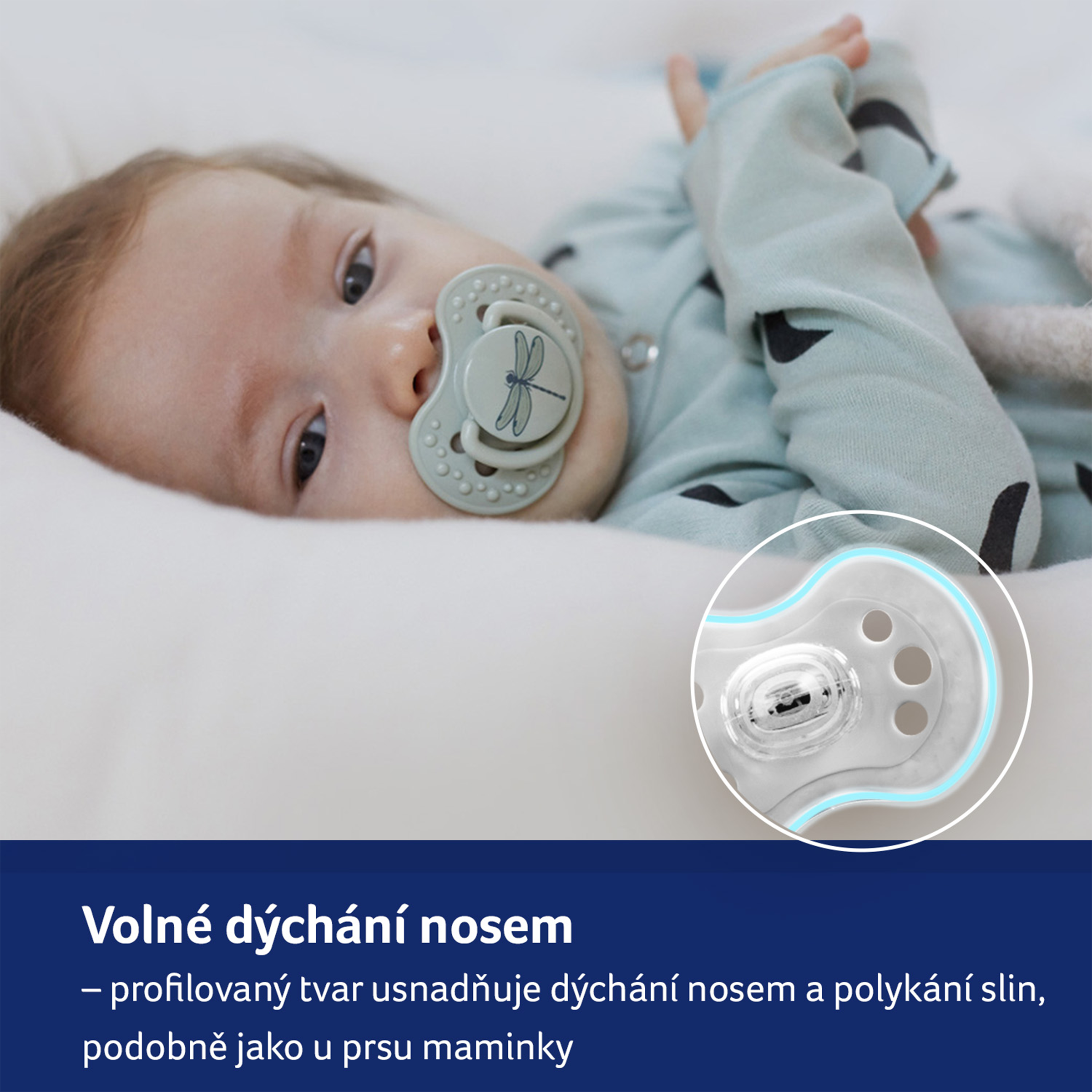 Důležité pro zdraví a bezpečnost vašeho dítěte! Před každým podáním dítěti zkontrolujte kvalitu dudlíku. Věnujte dudlíku zvýšenou pozornost poté, co dítěti vyrostou první zoubky. Vyzkoušejte kvalitu špičky důkladným natažením všemi směry. Při prvních známkách poškození dudlík ihned vyhoďte a již dále nepoužívejte. Používejte pouze takové držáky dudlíků, které odpovídají požadavkům normy EN12586. Nikdy nepřipevňujte dudlík na různé šňůrky, tkaničky či stužky oděvu. Dítě se může zadusit. Nenechávejte dudlík na přímém slunečním světle, v blízkosti tepelného zdroje nebo v dezinfekčních prostředcích déle, než je doporučováno - můžete způsobit oslabení špičky dudlíku.