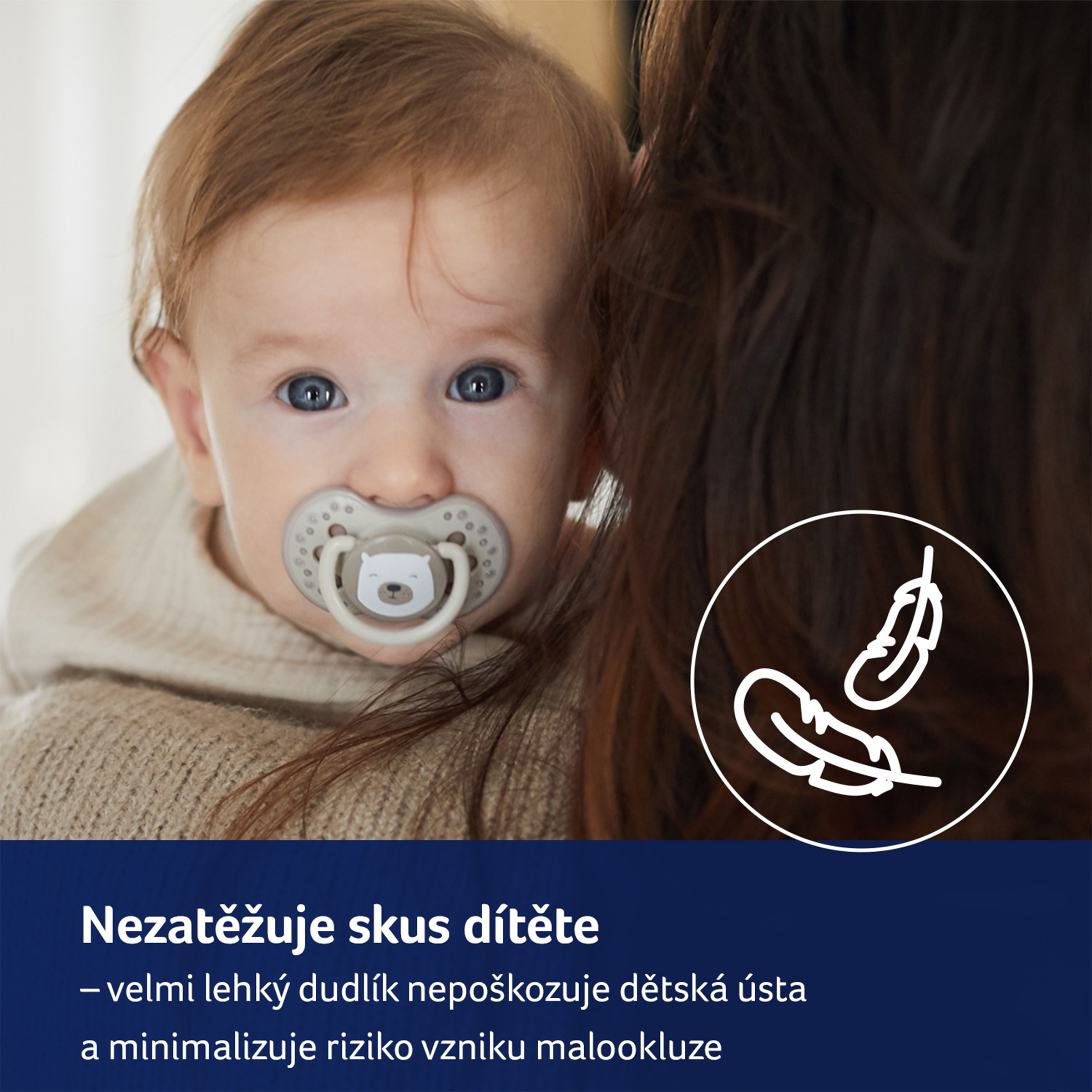 - Zabraňuje reflexu kousání do dudlíku.