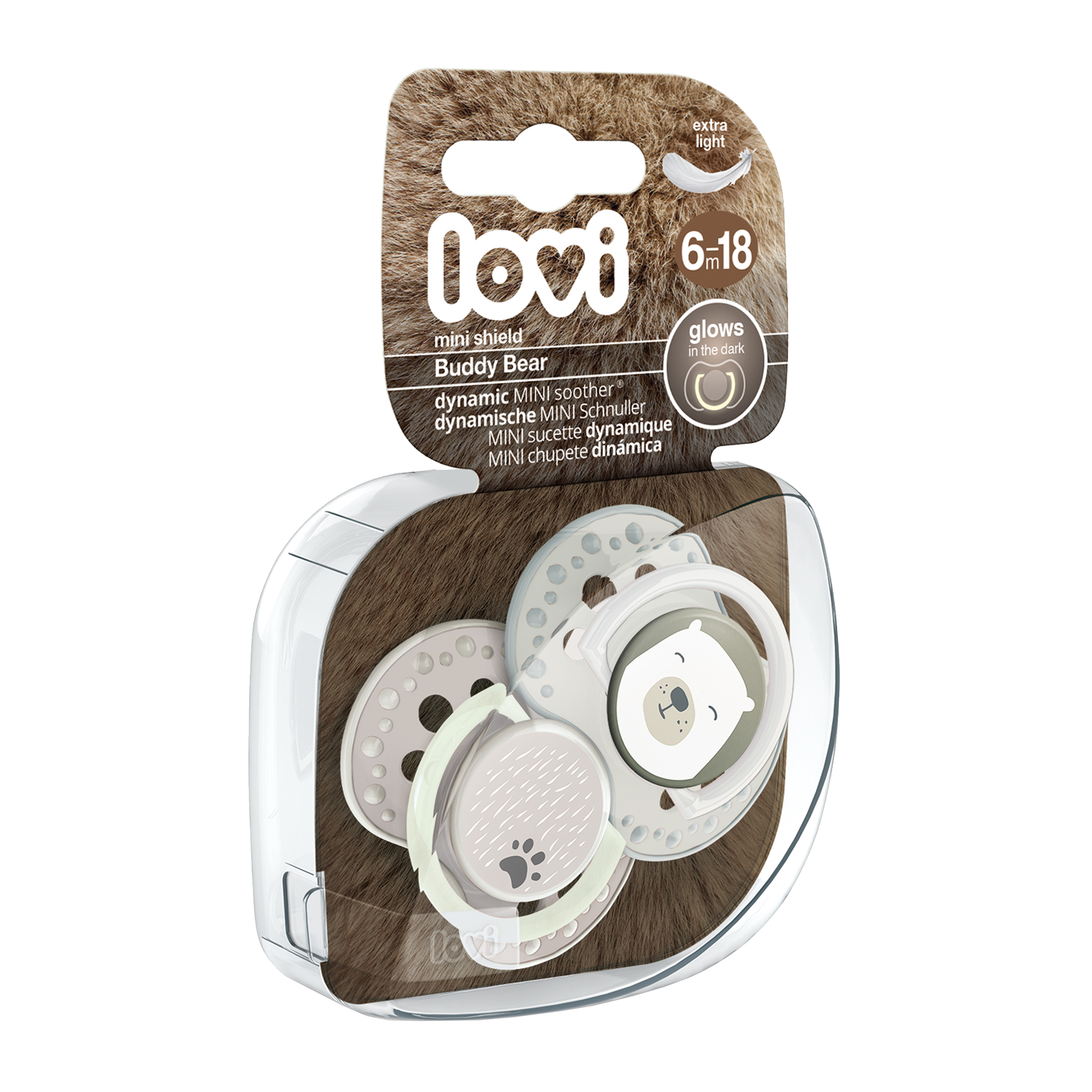Dynamický dudlík LOVI byl vytvořen ve spolupráci s neurologopedy s cílem zajistit přirozený a zdravý vývoj zubního patra, zubů a dásní dítěte. Silikonový symetrický dynamický dudlík LOVI byl klinicky testován. Všechny dudlíky LOVI jsou vyrobeny ze silikonu, který je bez chuti a bez zápachu. Silikonové dudlíky mají delší životnost a lépe se udržují v čistotě. Unikátní symetrická dynamická špička se velmi dobře odvzdušňuje a nedeformuje zubní patro dítěte.