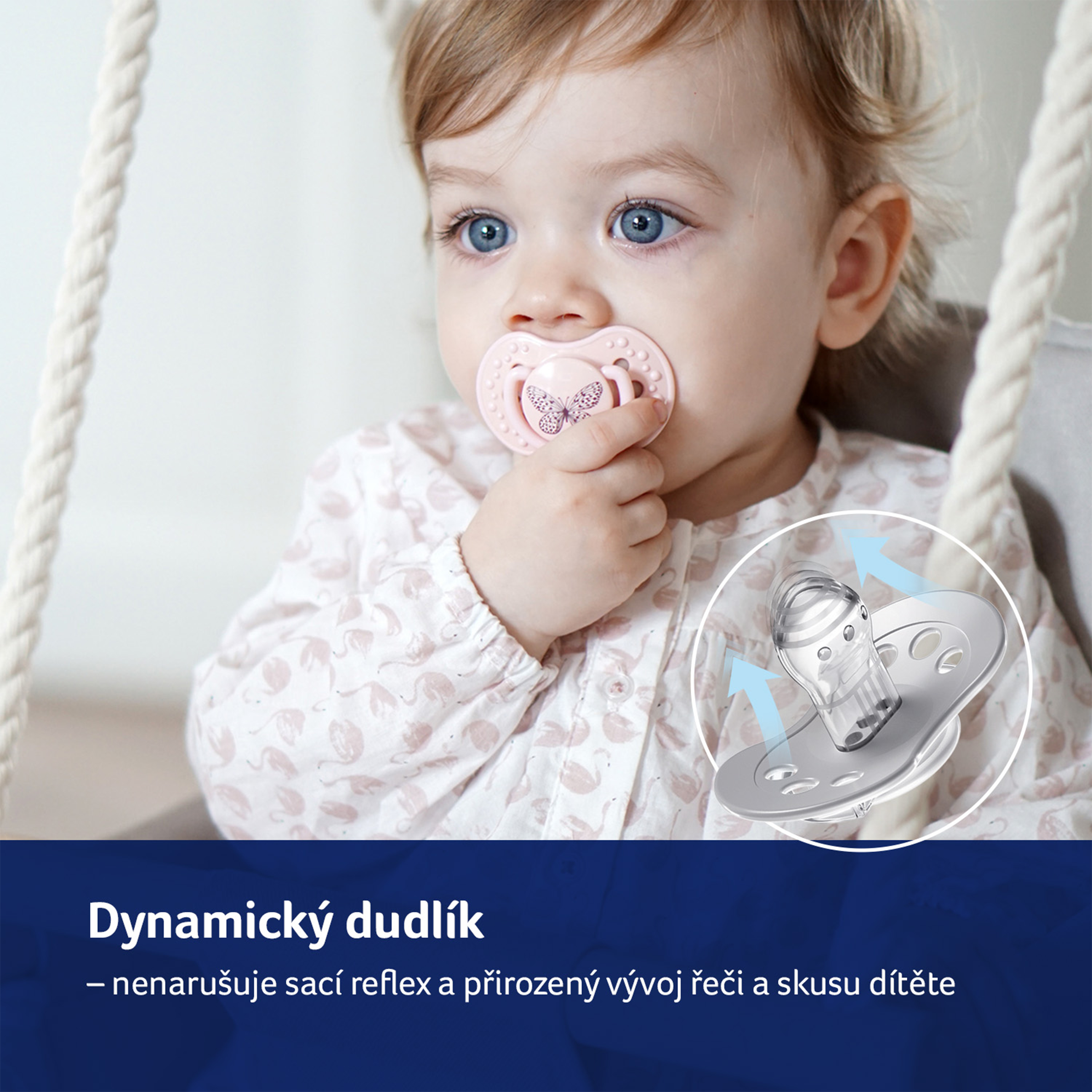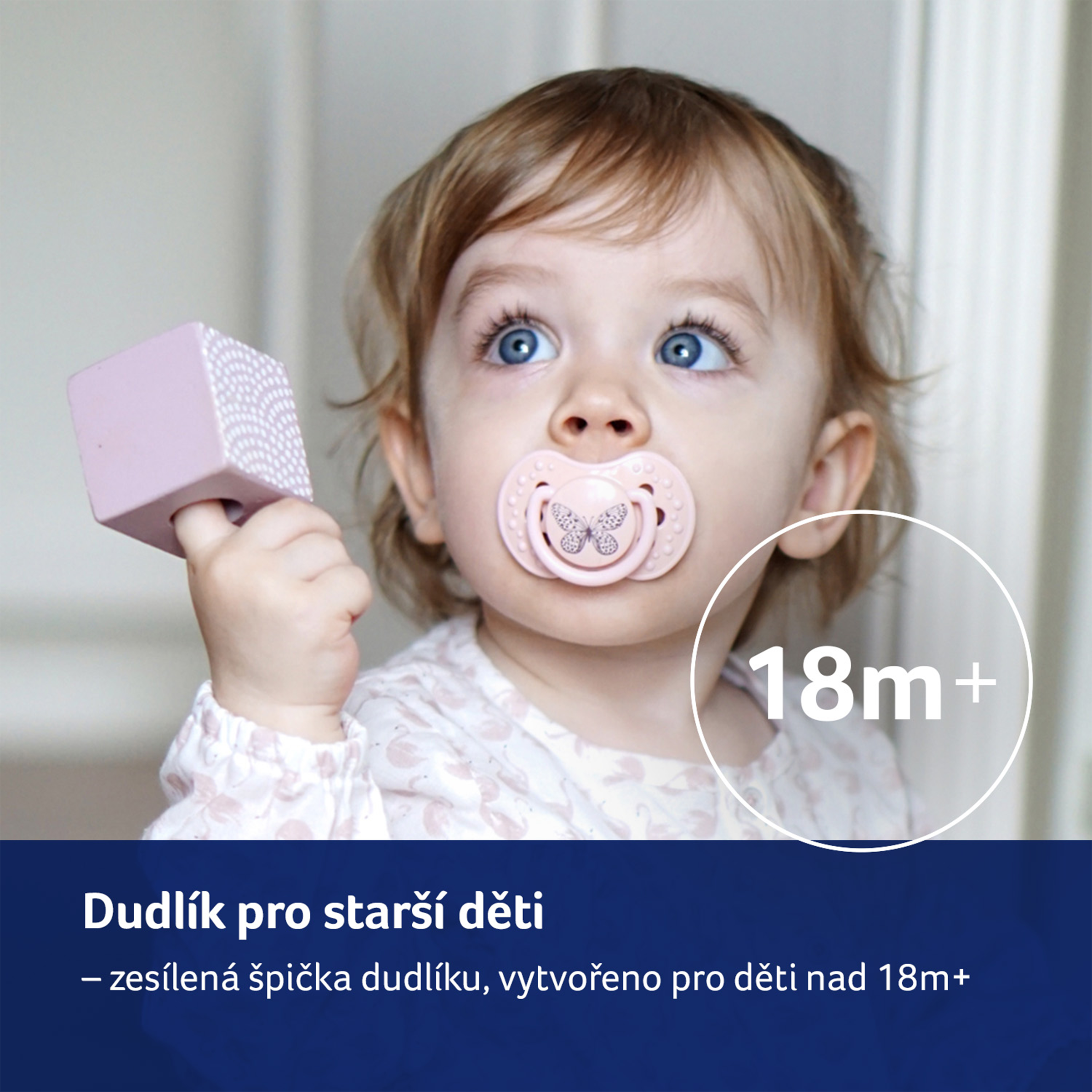 Důležité pro zdraví a bezpečnost vašeho dítěte! Před každým podáním dítěti zkontrolujte kvalitu dudlíku. Věnujte dudlíku zvýšenou pozornost poté, co dítěti vyrostou první zoubky. Vyzkoušejte kvalitu špičky důkladným natažením všemi směry. Při prvních známkách poškození dudlík ihned vyhoďte a již dále nepoužívejte. Používejte pouze takové držáky dudlíků, které odpovídají požadavkům normy EN12586. Nikdy nepřipevňujte dudlík na různé šňůrky, tkaničky či stužky oděvu. Dítě se může zadusit. Nenechávejte dudlík na přímém slunečním světle, v blízkosti tepelného zdroje nebo v dezinfekčních prostředcích déle, než je doporučováno - můžete způsobit oslabení špičky dudlíku.