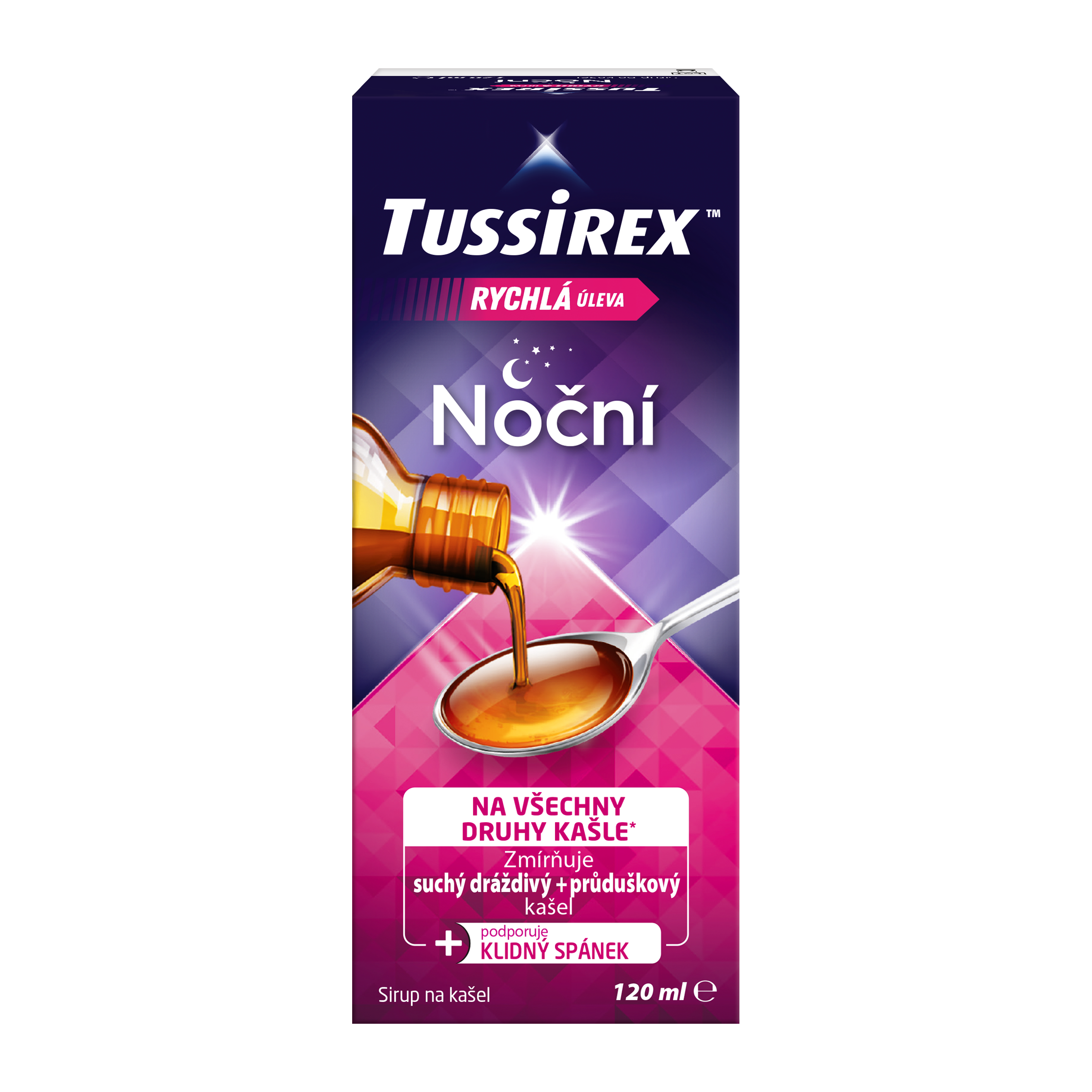 15 ml sirupu Tussirex noční obsahuje: 483,33 mg suchého výtažku z pukléřky islandské, 25,80 mg hyaluronátu sodného, 60,00 mg xanthanu.